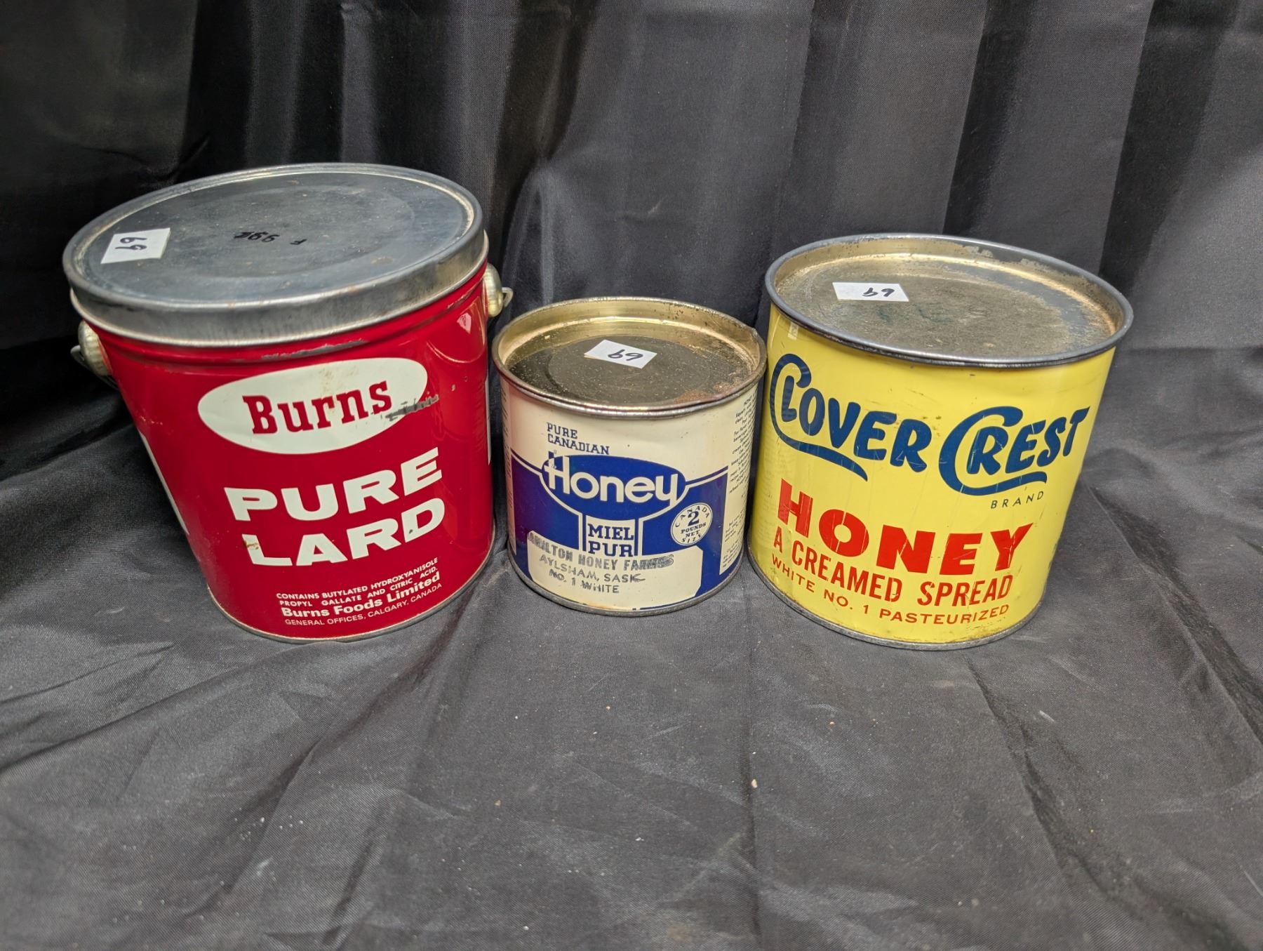 (3) Vintage Tins of (2) Honey and (1) Pure Lard (All Empty)
