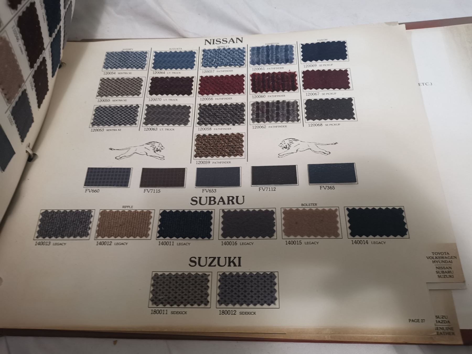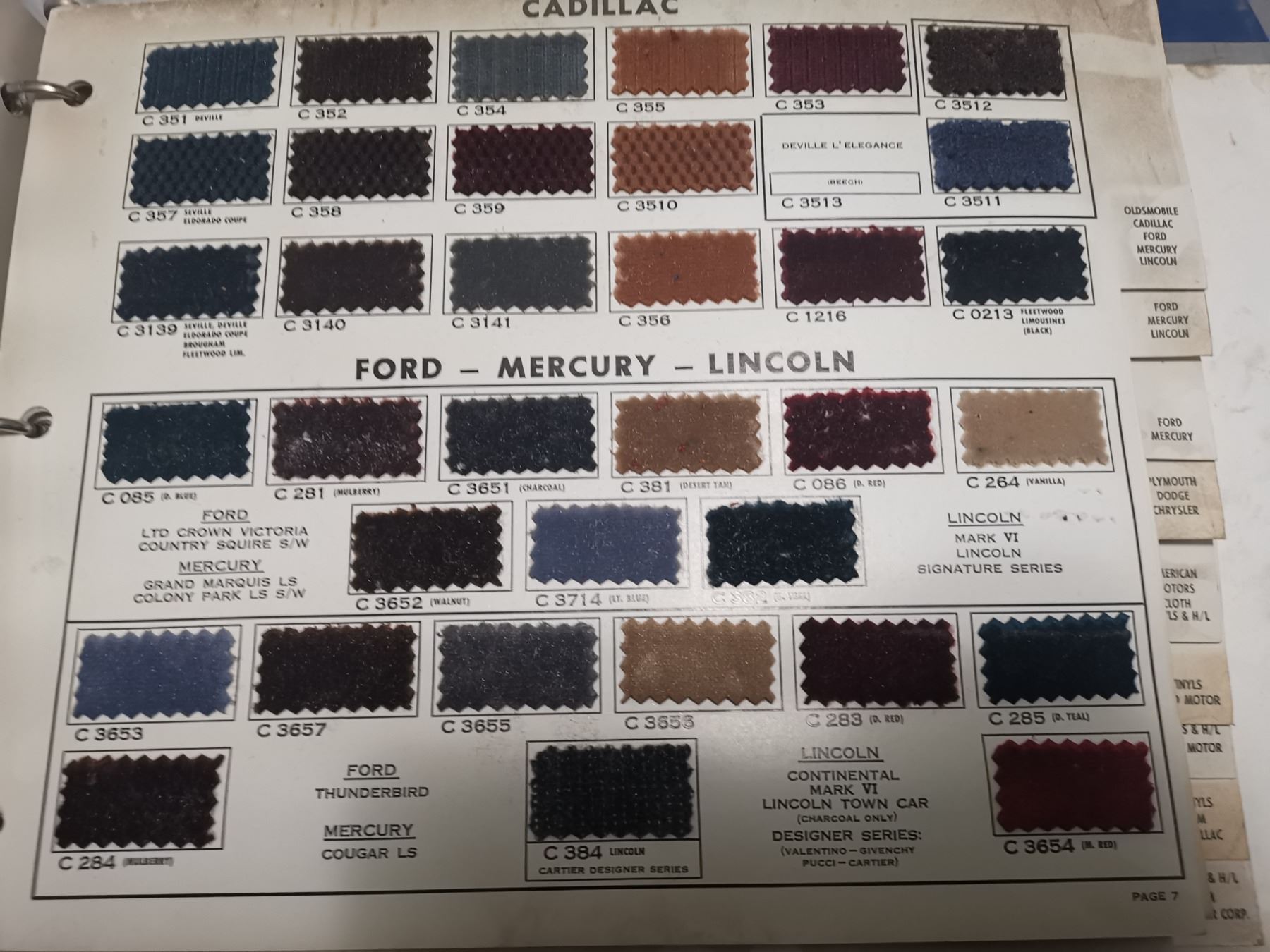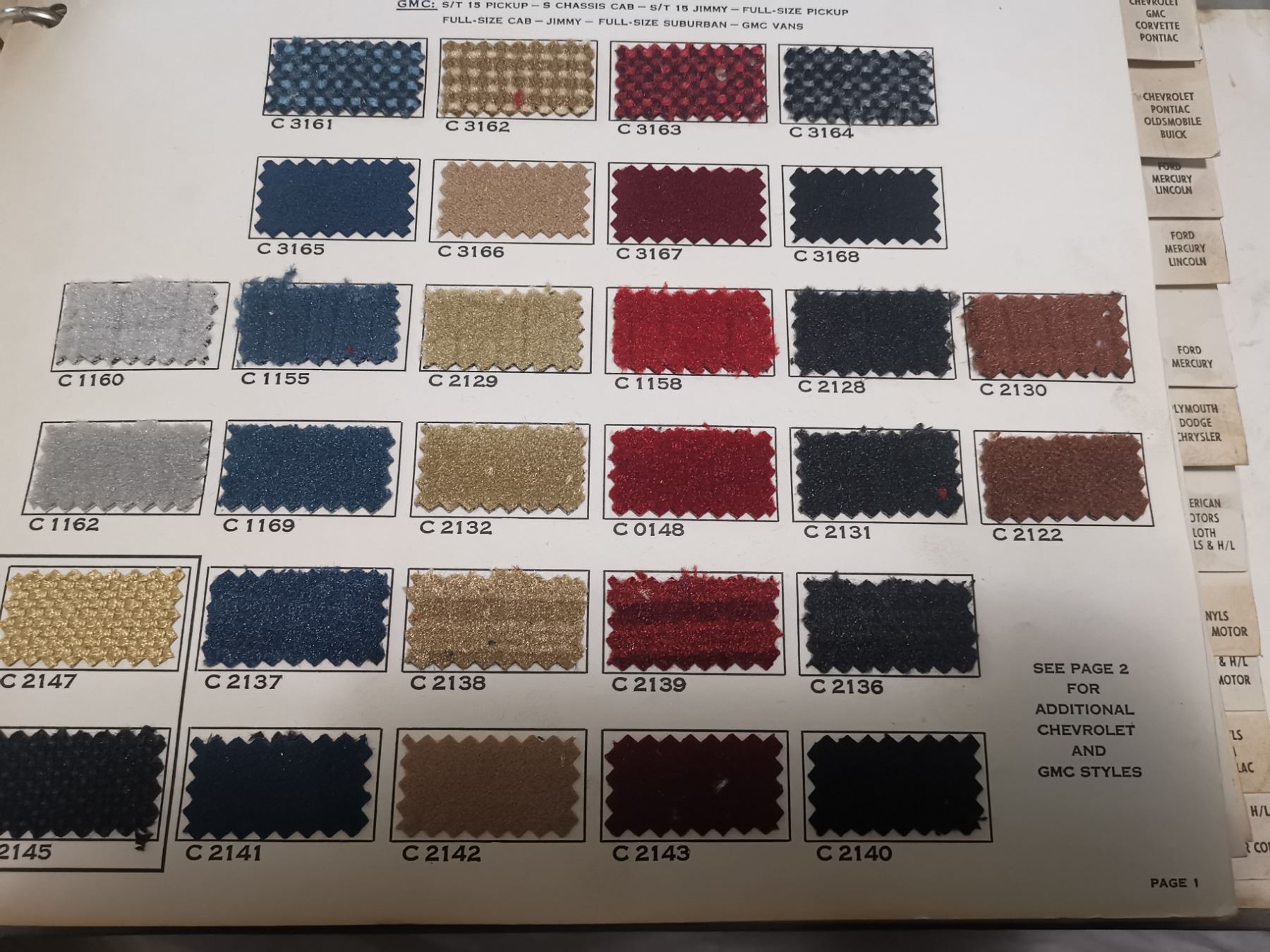 3 Vintage automotive fabric samples, all car models