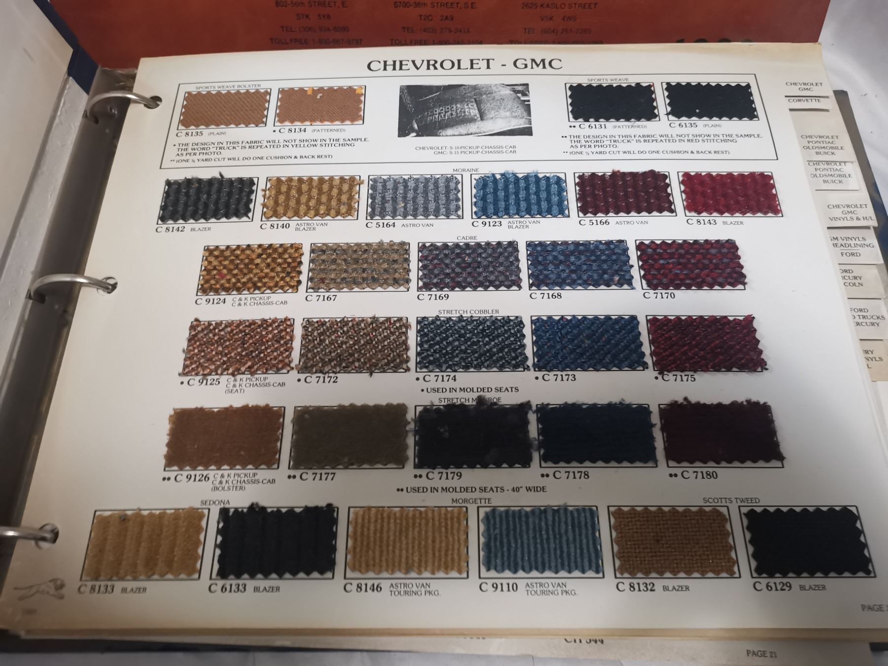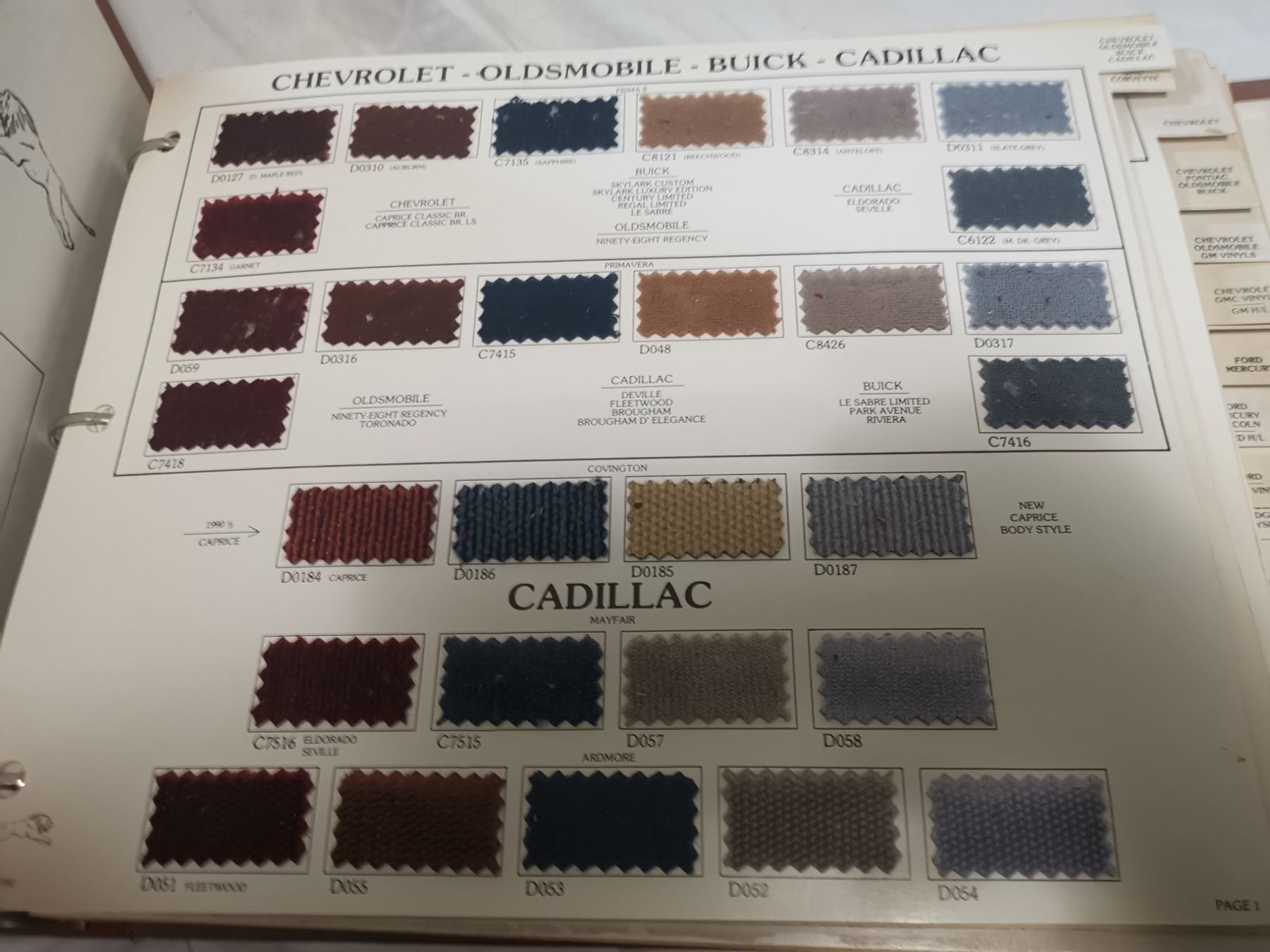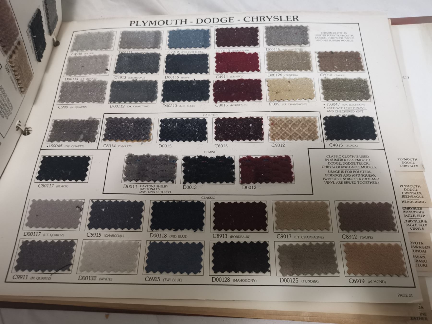 3 Vintage automotive fabric samples, all car models