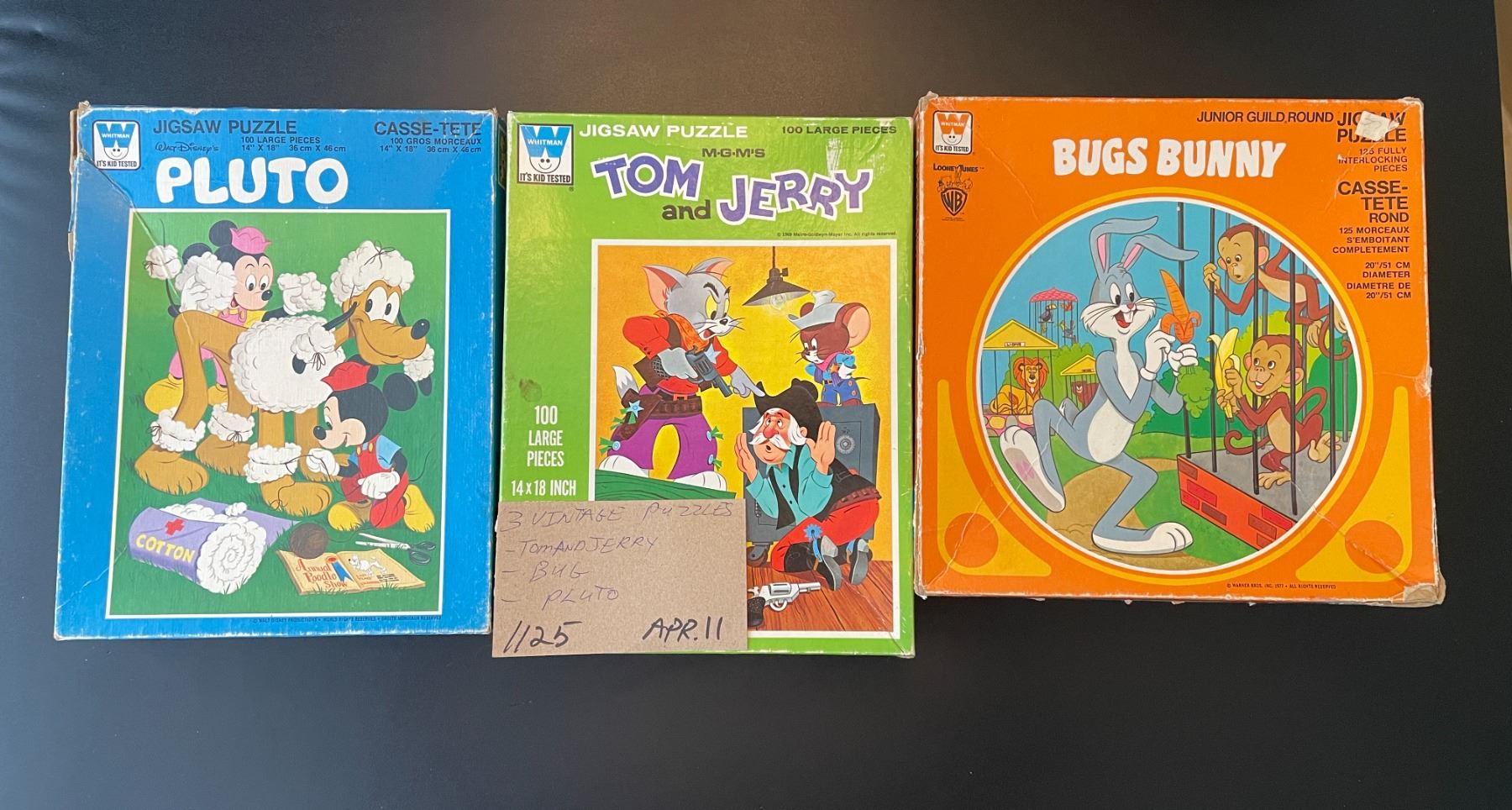 3 Vintage puzzles - Tom & Jerry; Bugs Bunny; Pluto