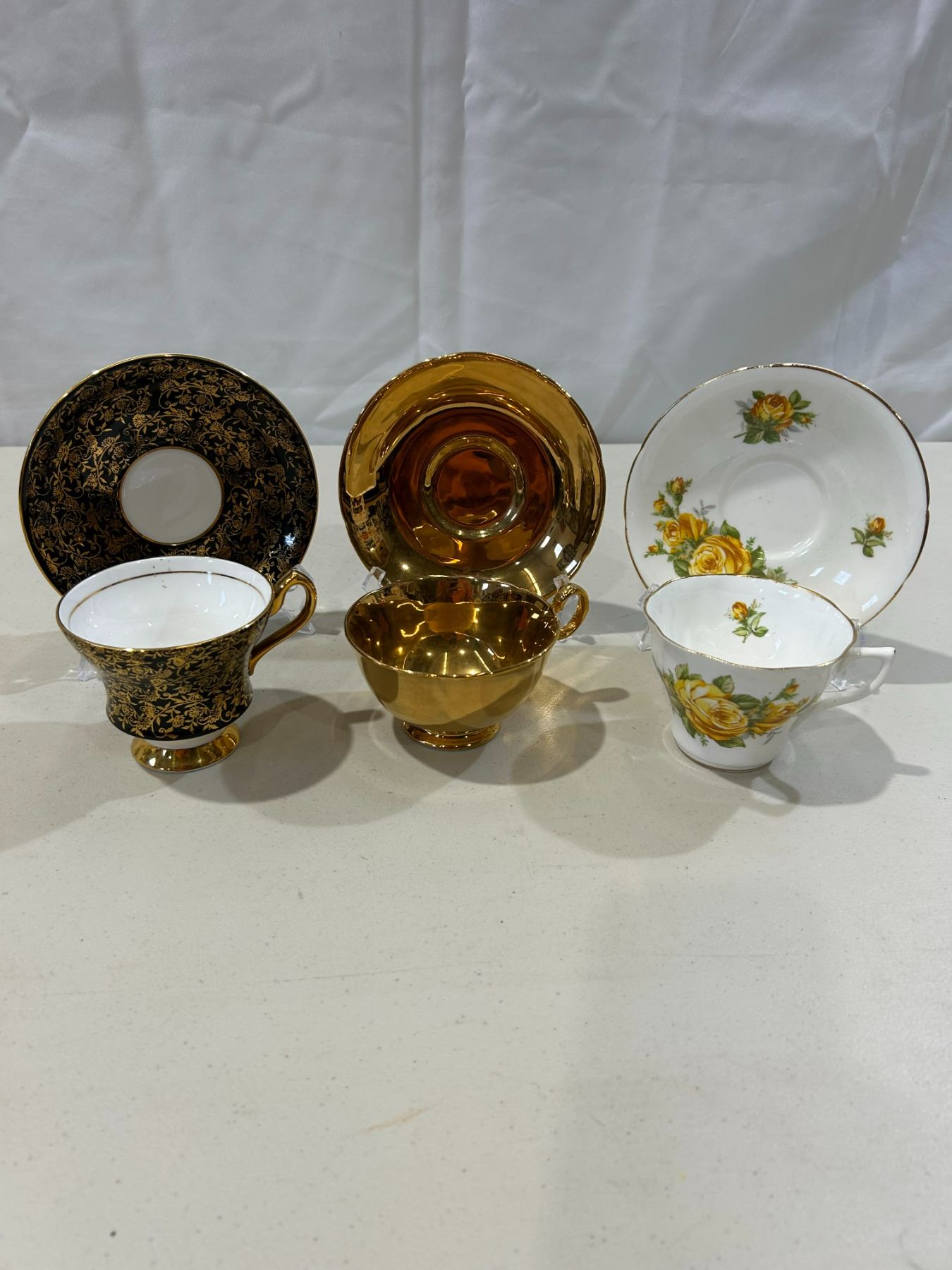 3 Vintage teacups and saucers (Royal Winton, Royal Windsor, Hamilton)