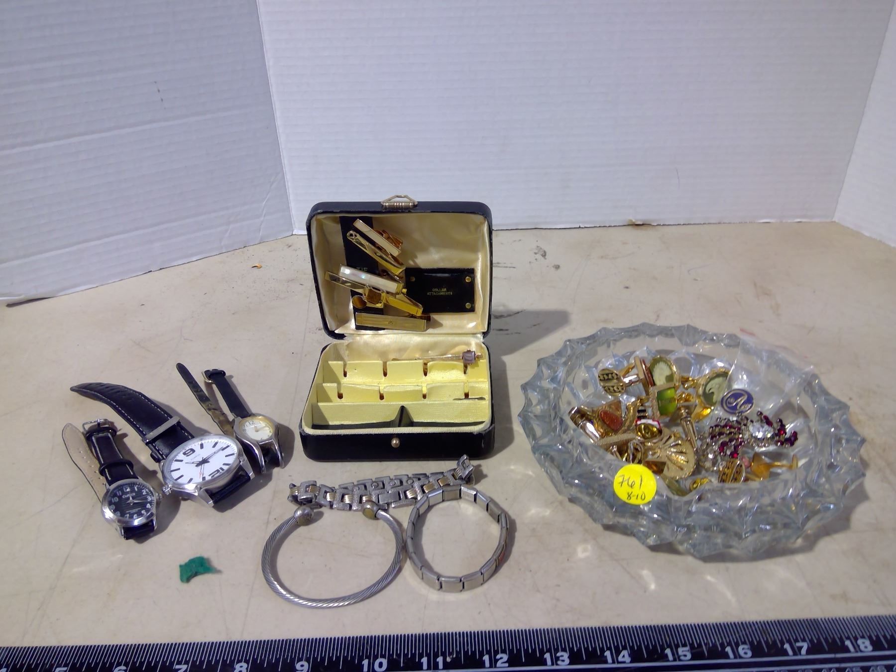 3 Watches, Glass Ashtray and Cufflink