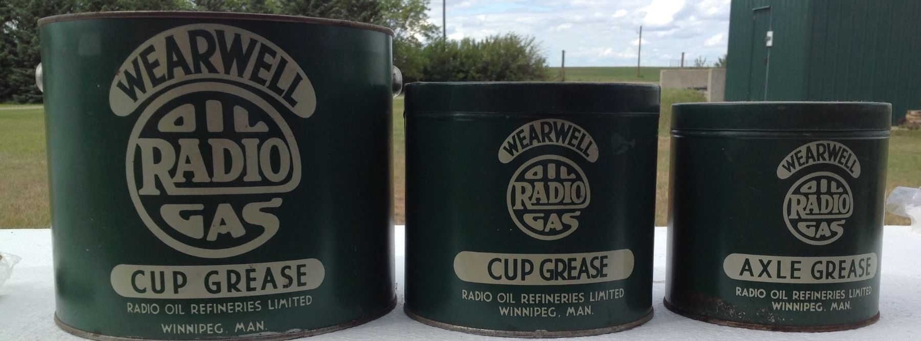 (3) Wear well Radio Oil Winnipeg Cup Grease Tins