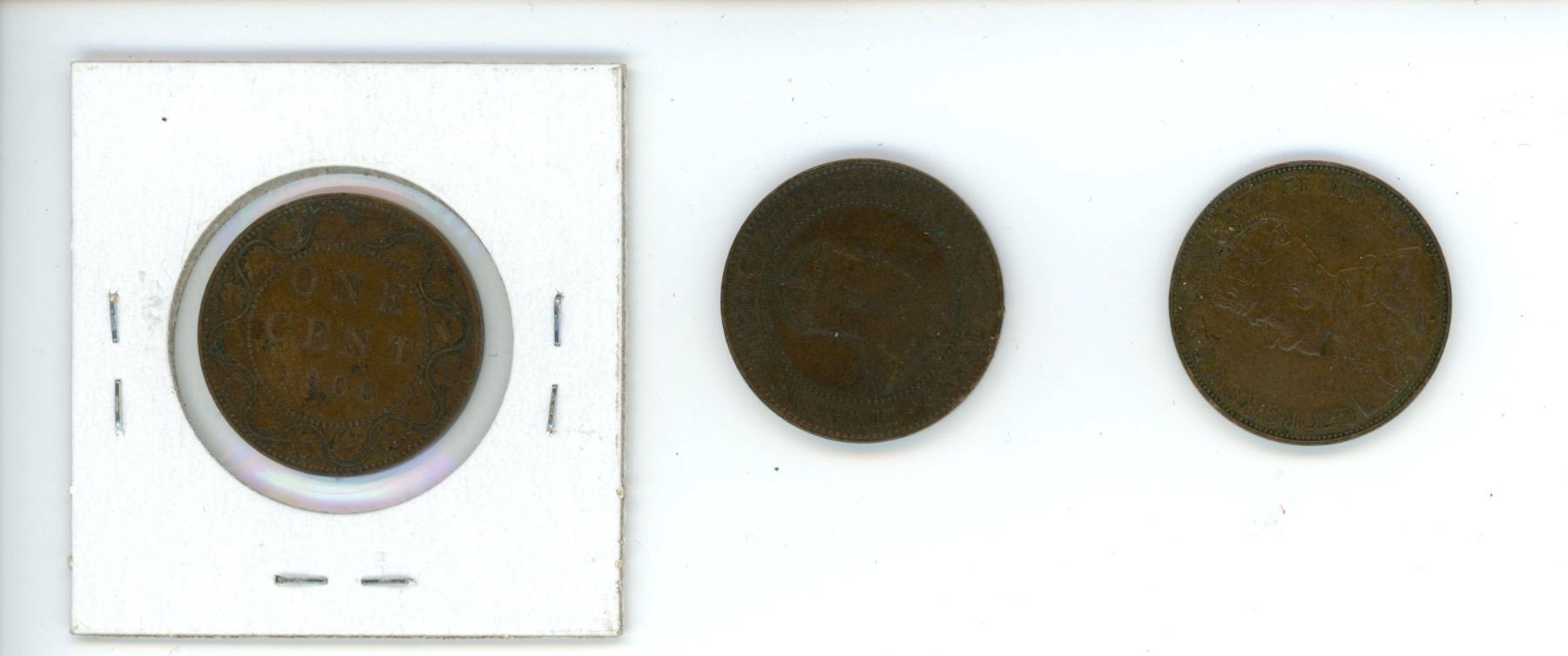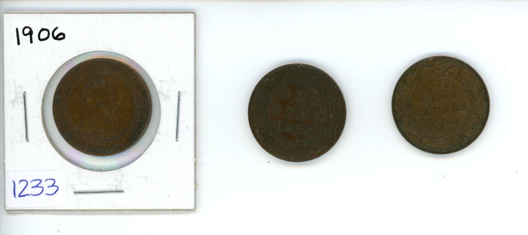 3 X Canadian 1 Cent Piece, 1902, 1906, 1920