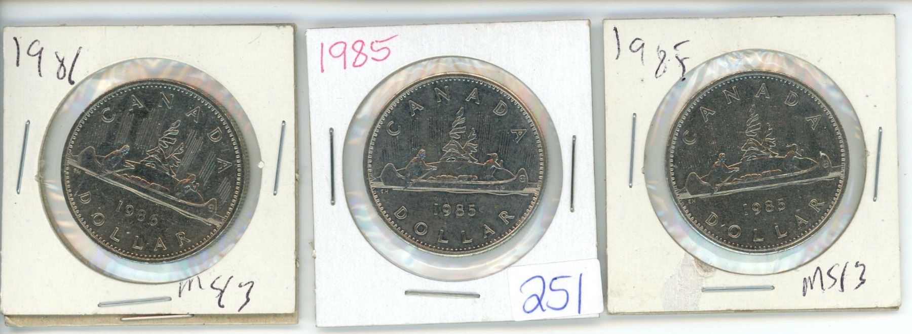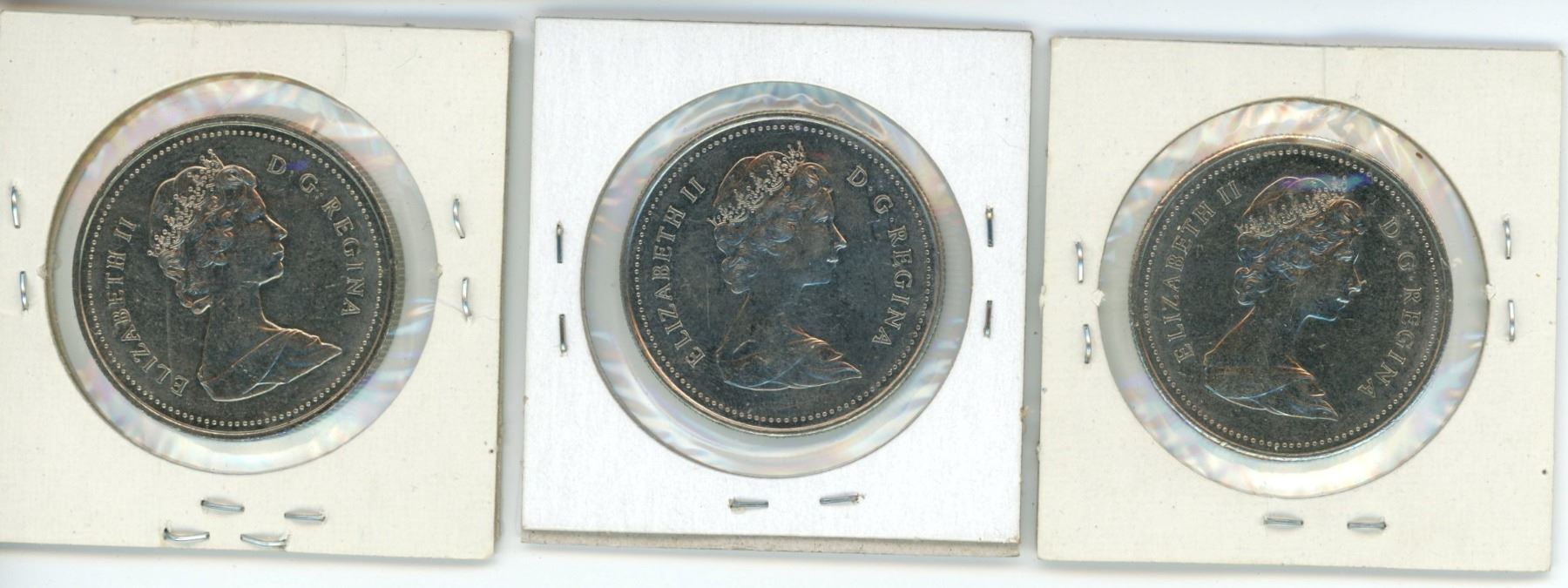 3 X Canadian Nickel Dollars 85' 85' and 81'
