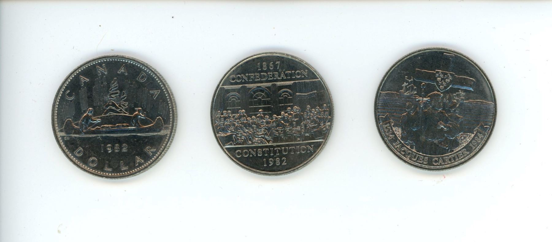 3 X Nickel Canadian Dollars 1 X 82' Confederation, 1 X 84' Jaques Cartier, 1 X Regular)