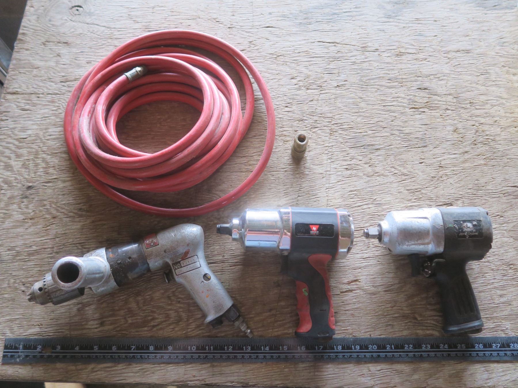 3 air tools, air hose and fitting - drill and impacts (1 is John Deere)