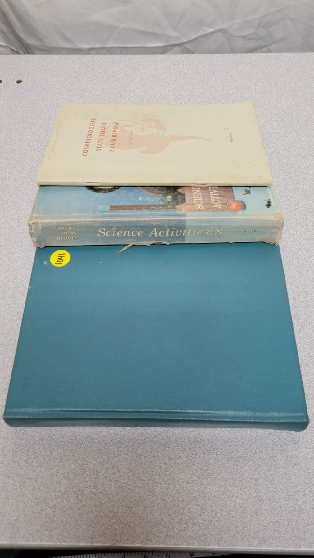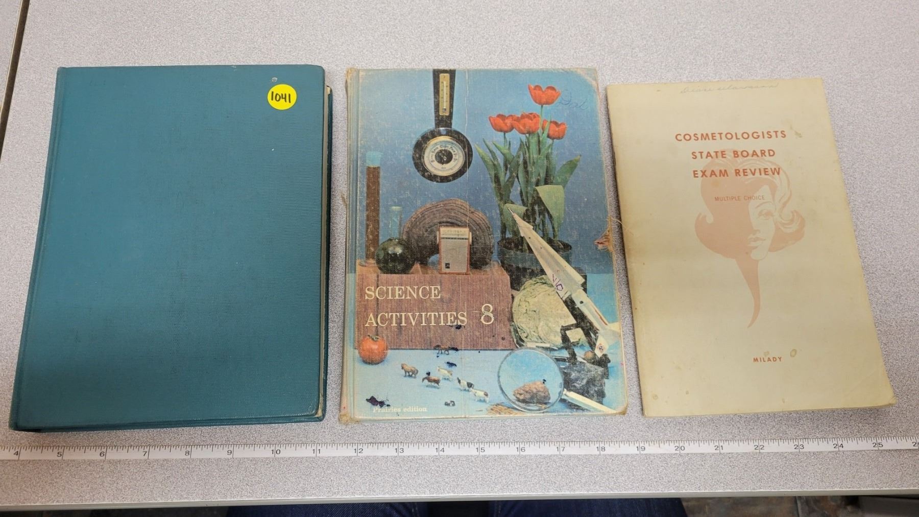 3 antique school books - Science activities, Living Things, Cosmetologists State Board Exam Review