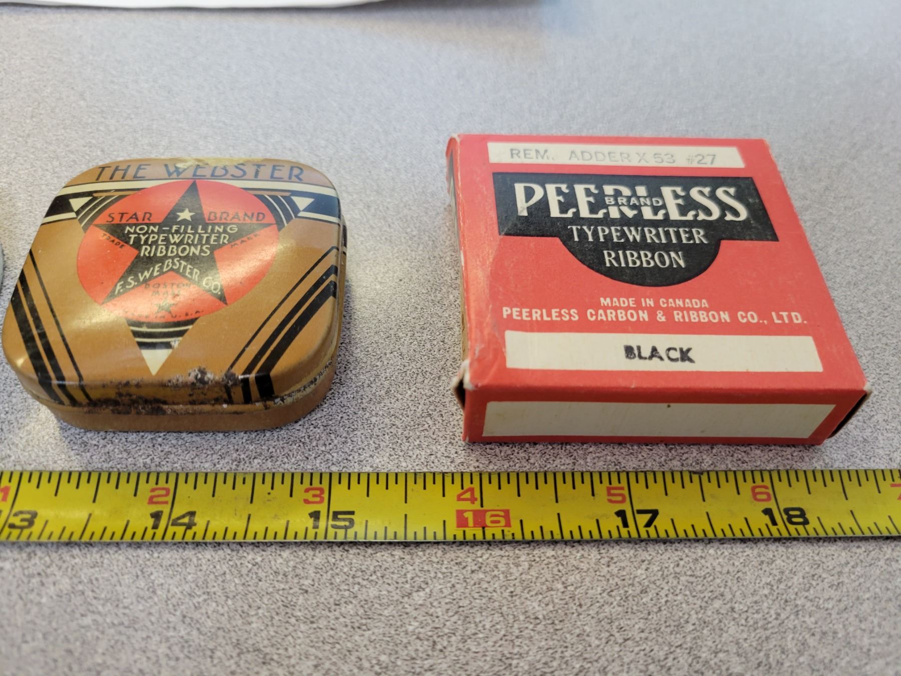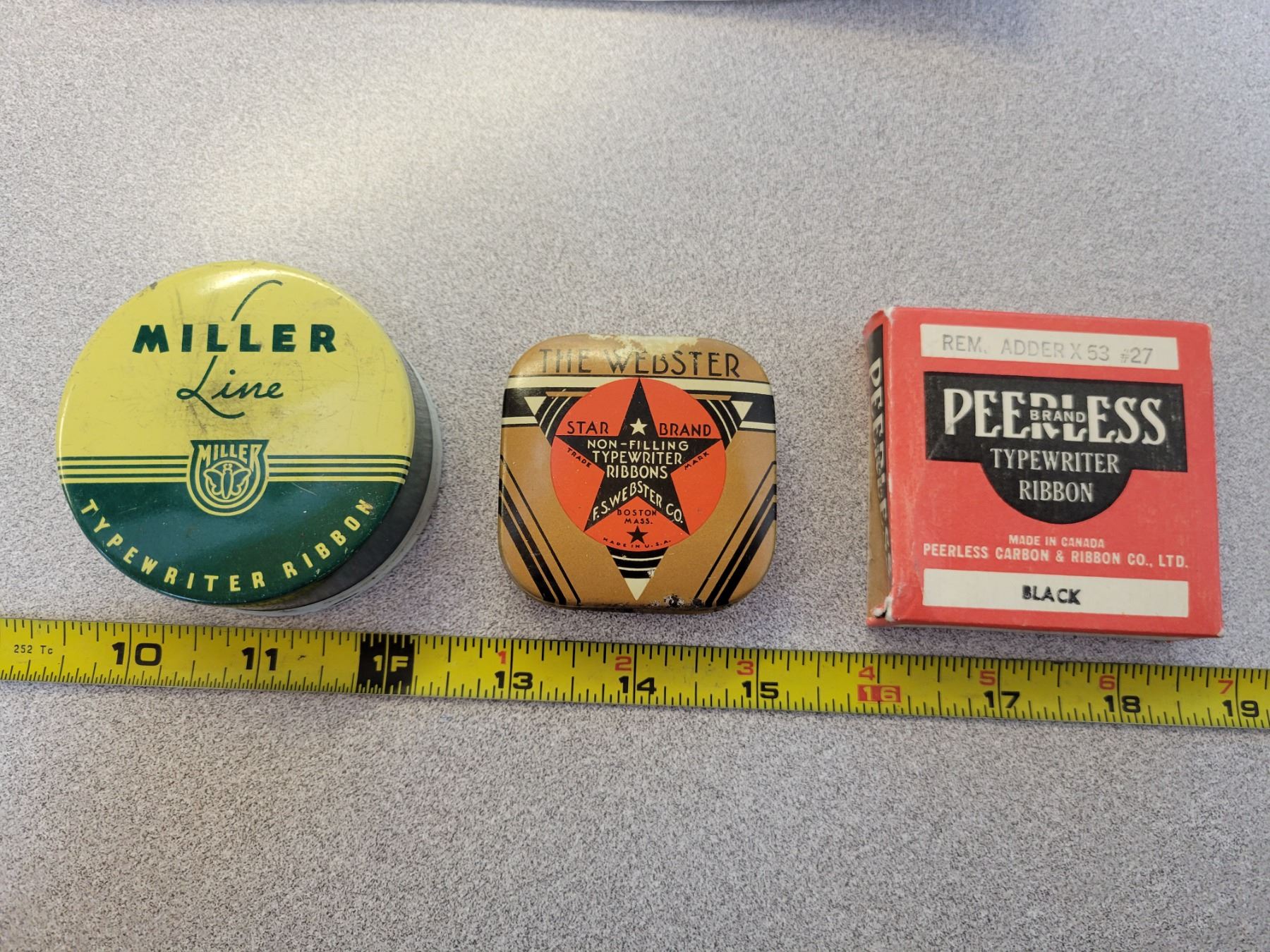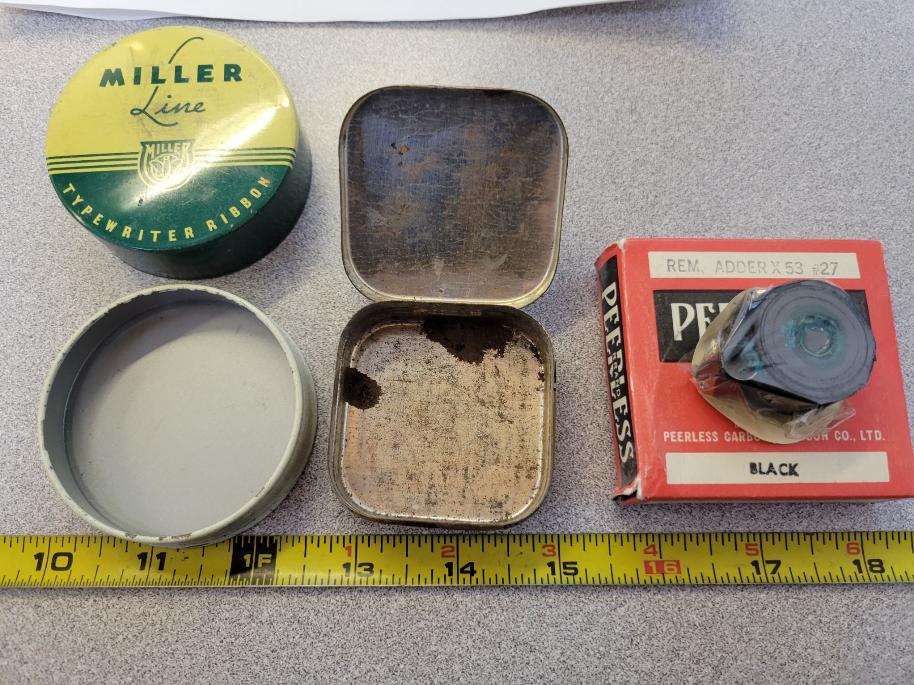 3 antique typewriter ribbon containers (2 tins 1 box) Peerless has ribbon inside