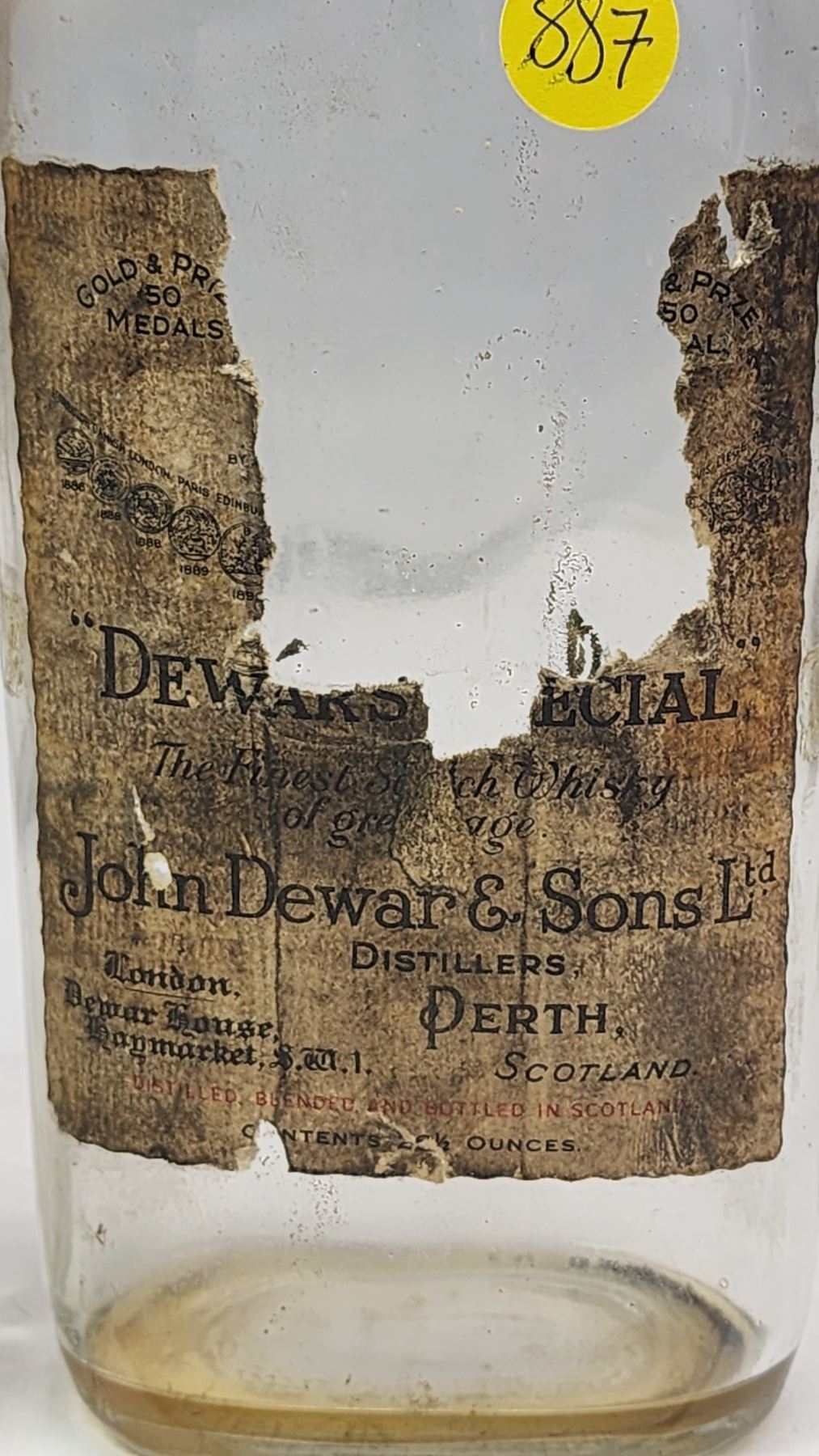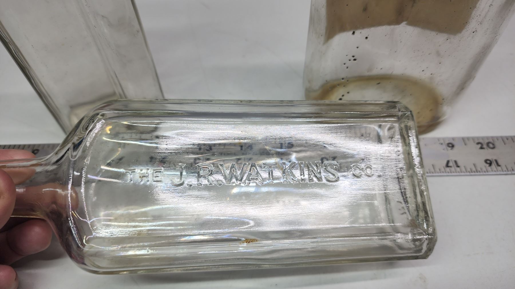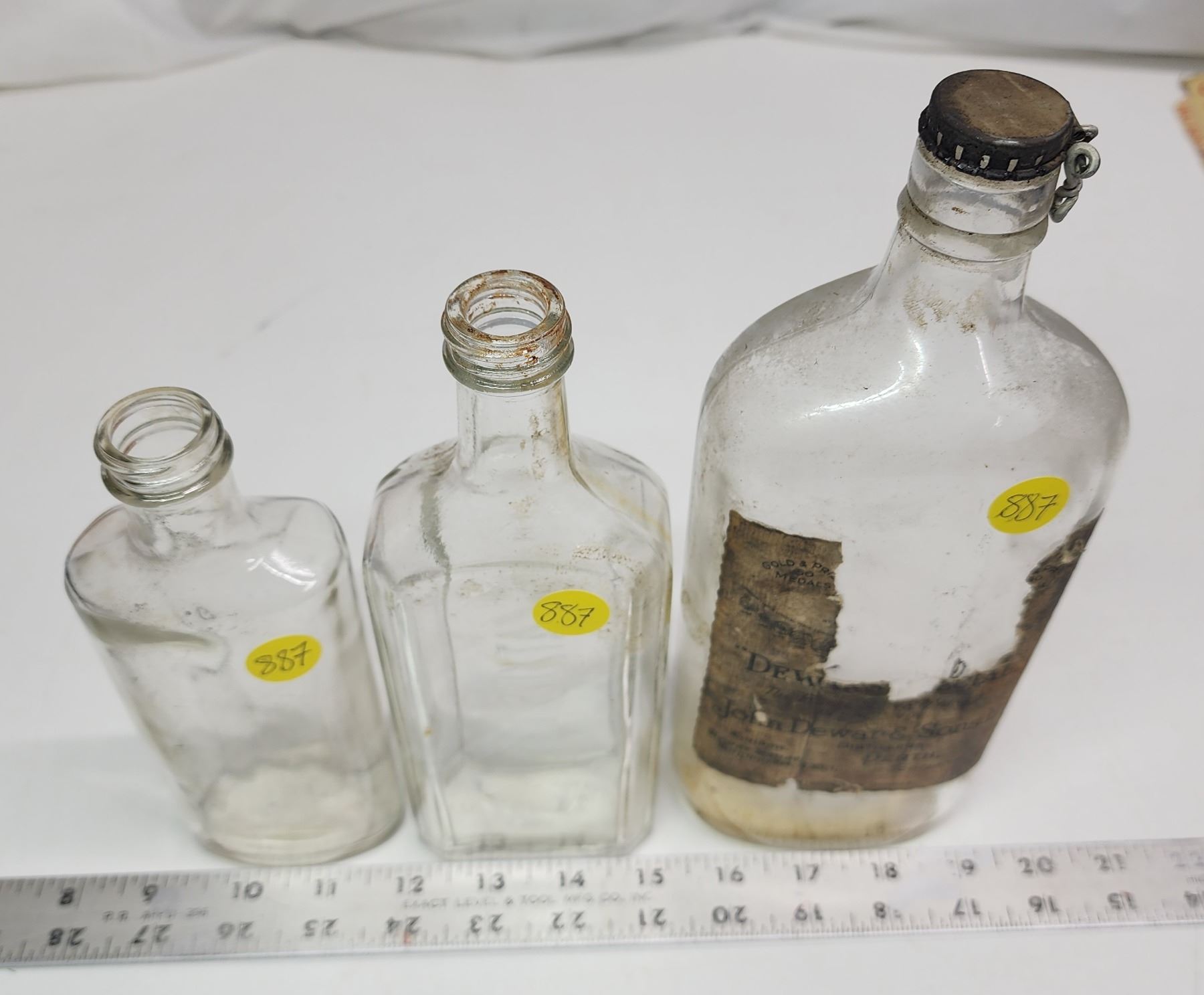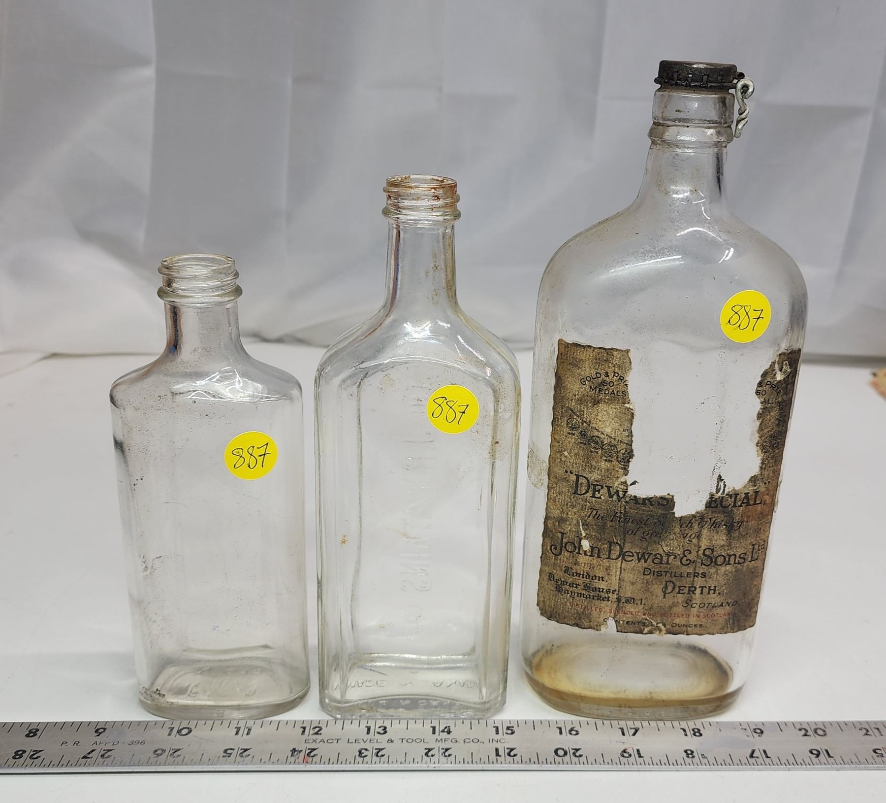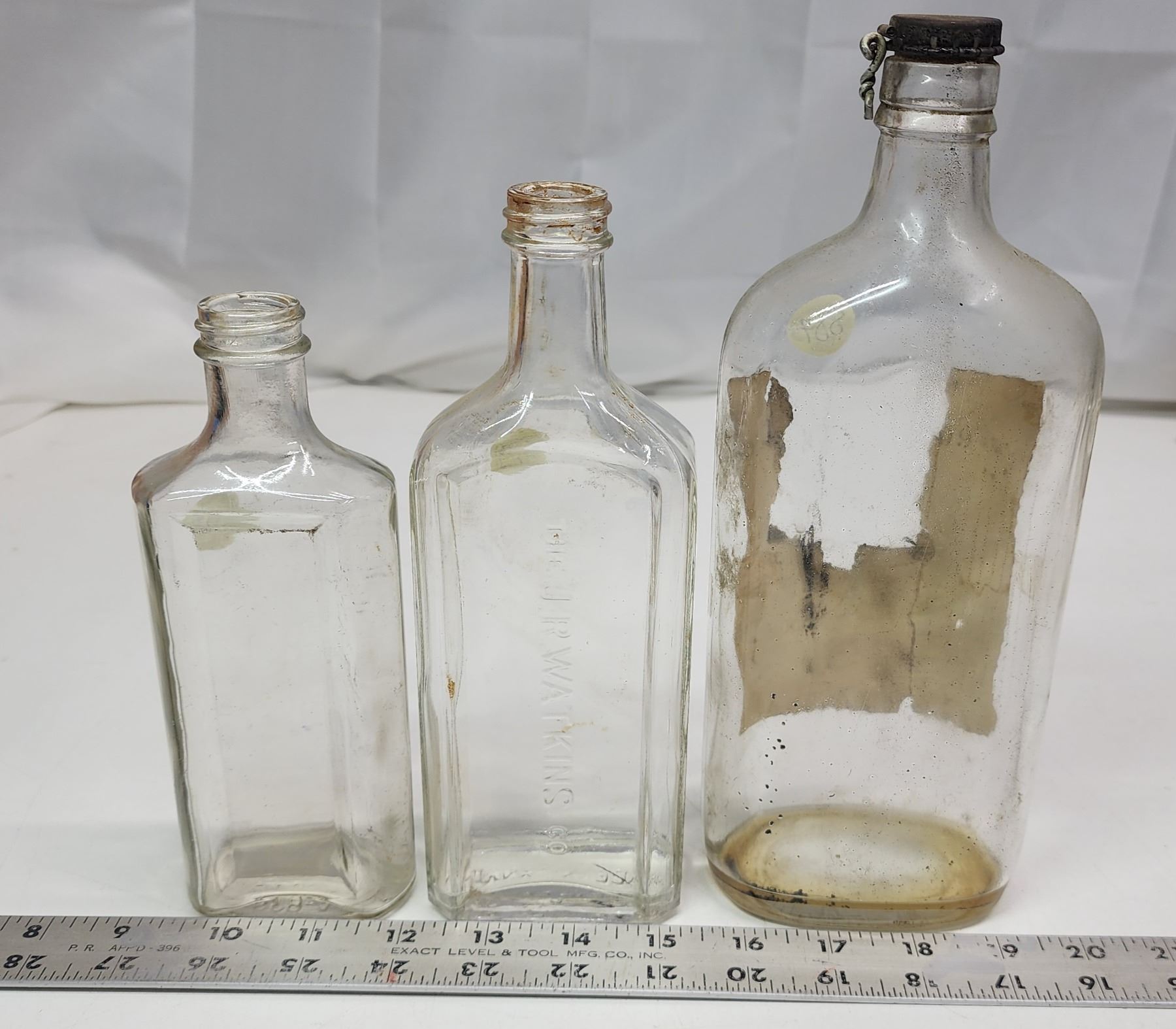 3 assorted vintage glass bottles - Medicine, Watkins and "Dewar" bottle