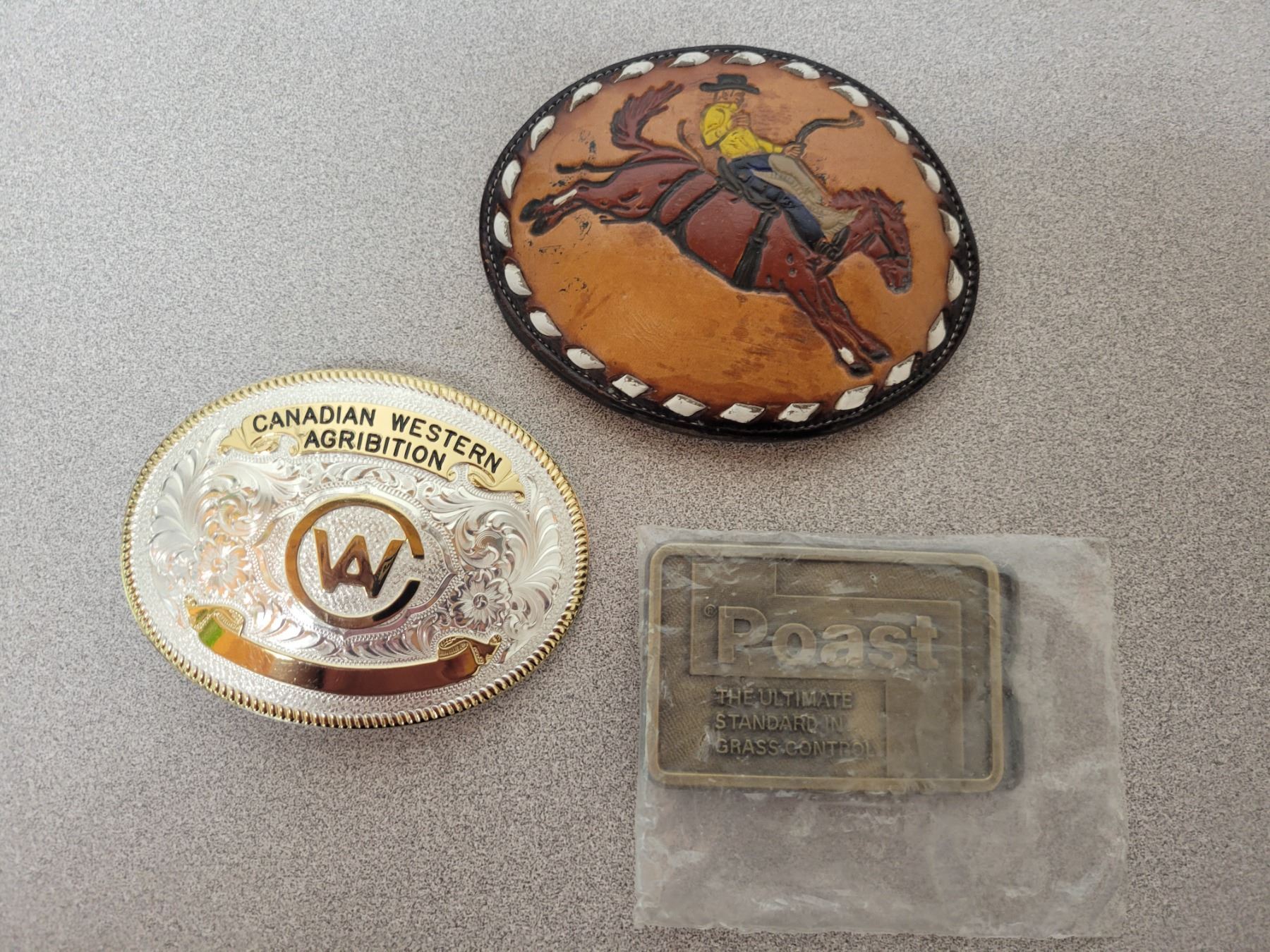3 belt buckles one Canadian Western Agriculture