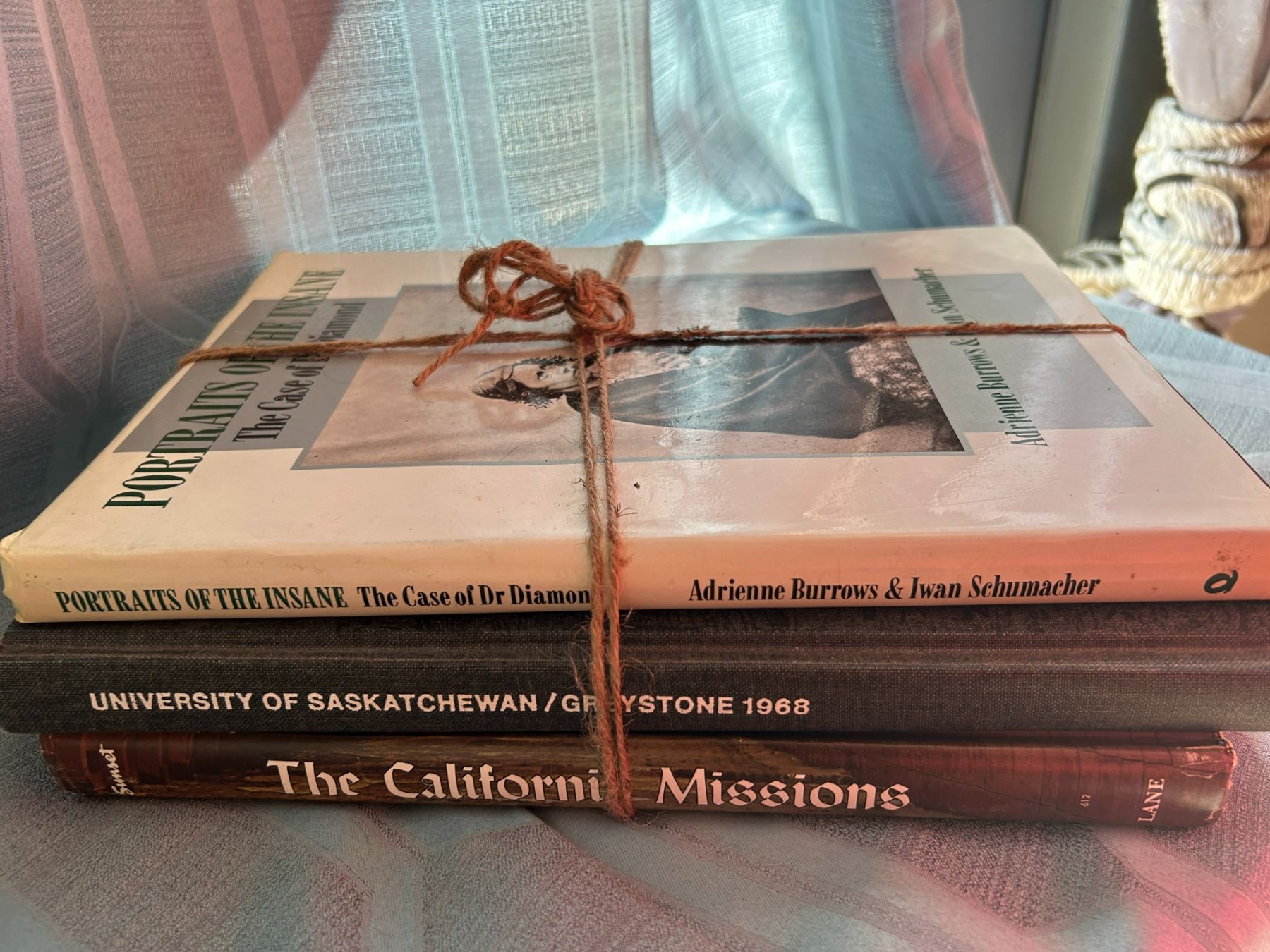 3 books - sask 1968 grey stone year book, portraits of insane , California Missions