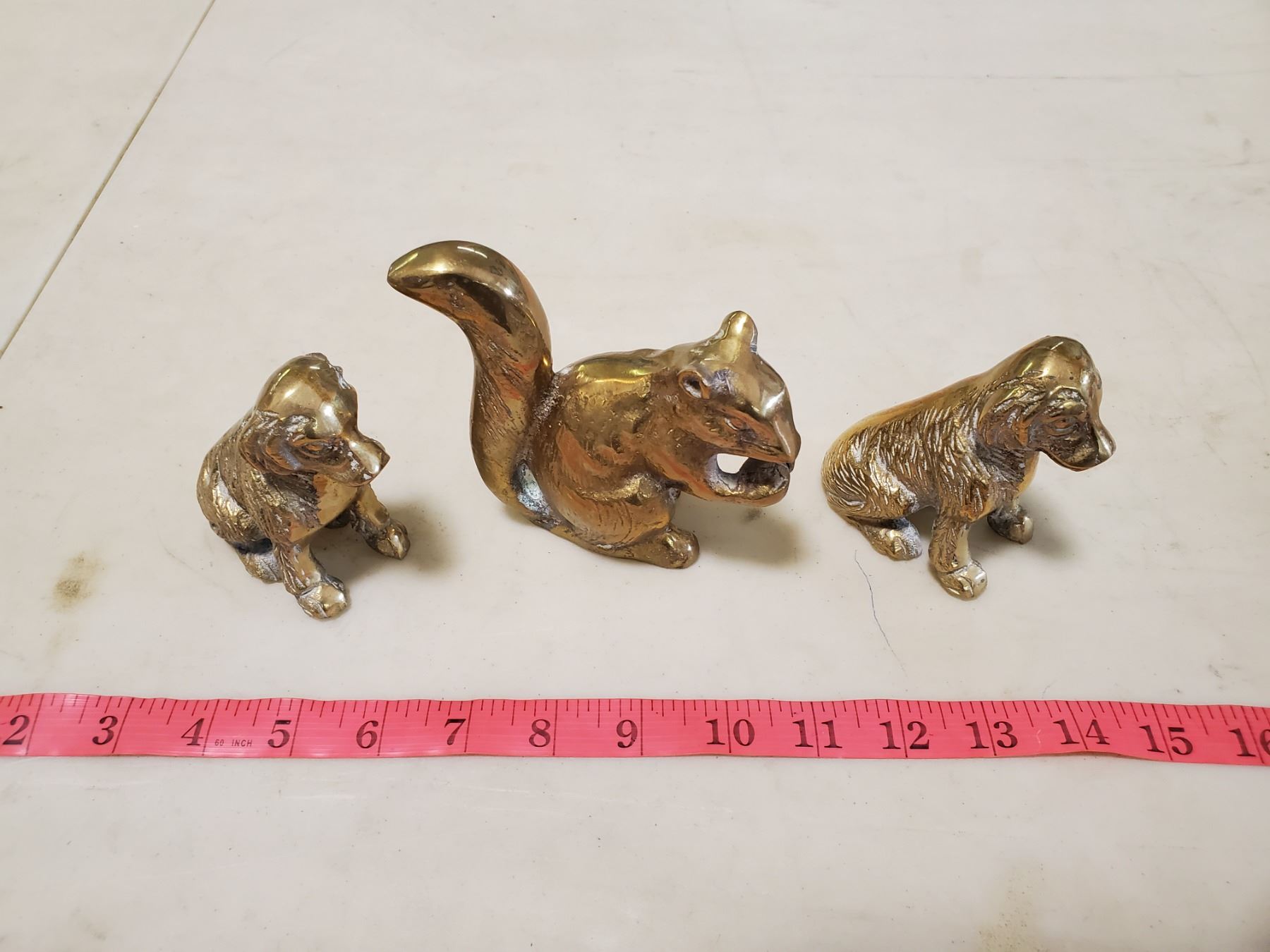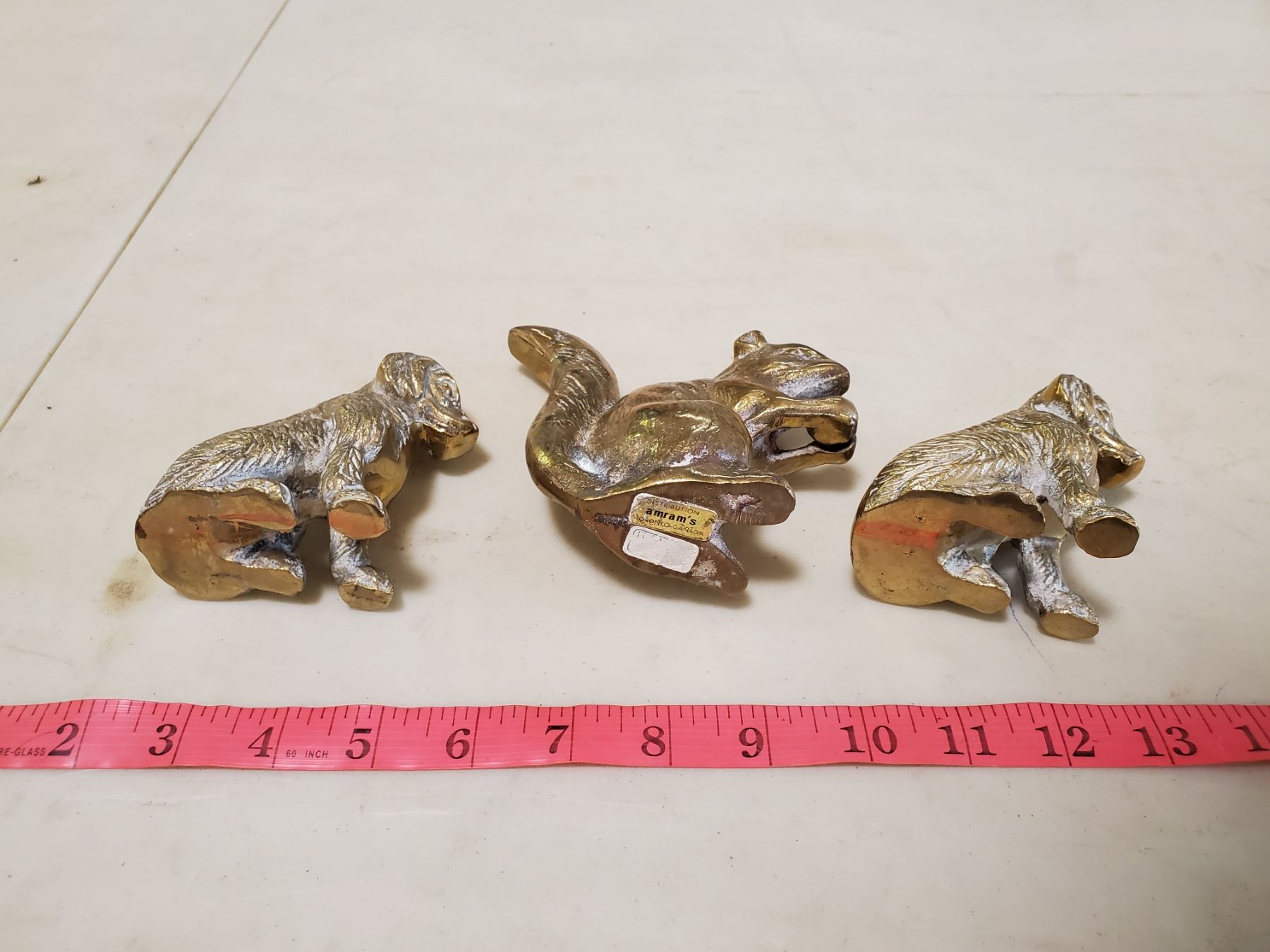 3 brass figures squirrel & dogs