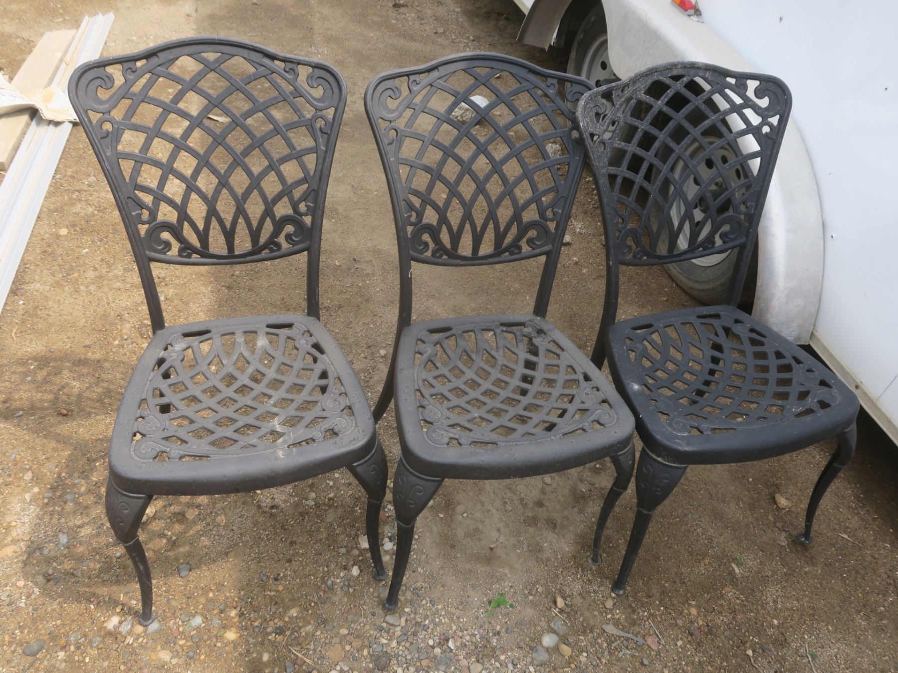 3 cast iron patio chairs