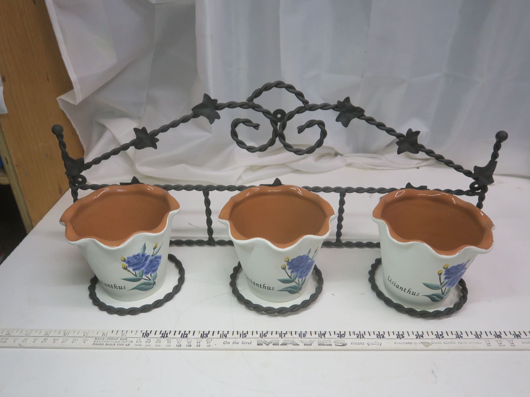 3 ceramic plant pots with iron holder