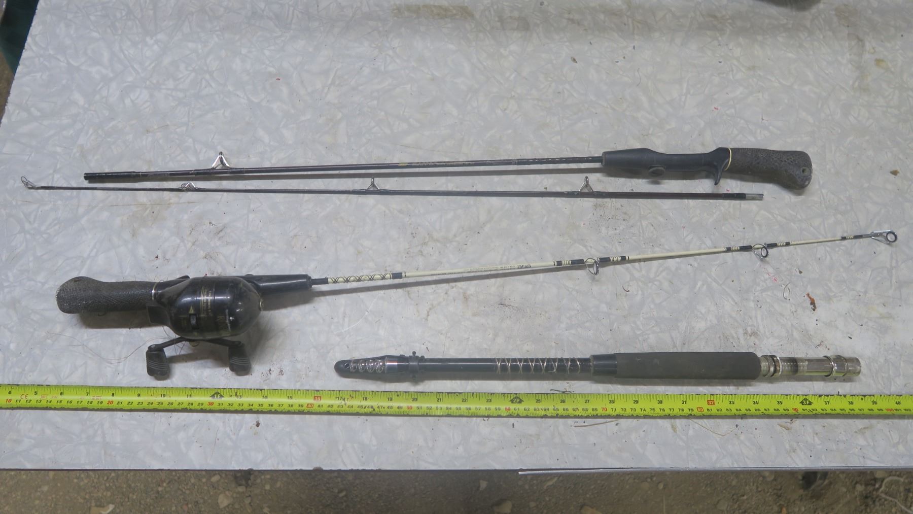 3 fishing rods - 1 with reel