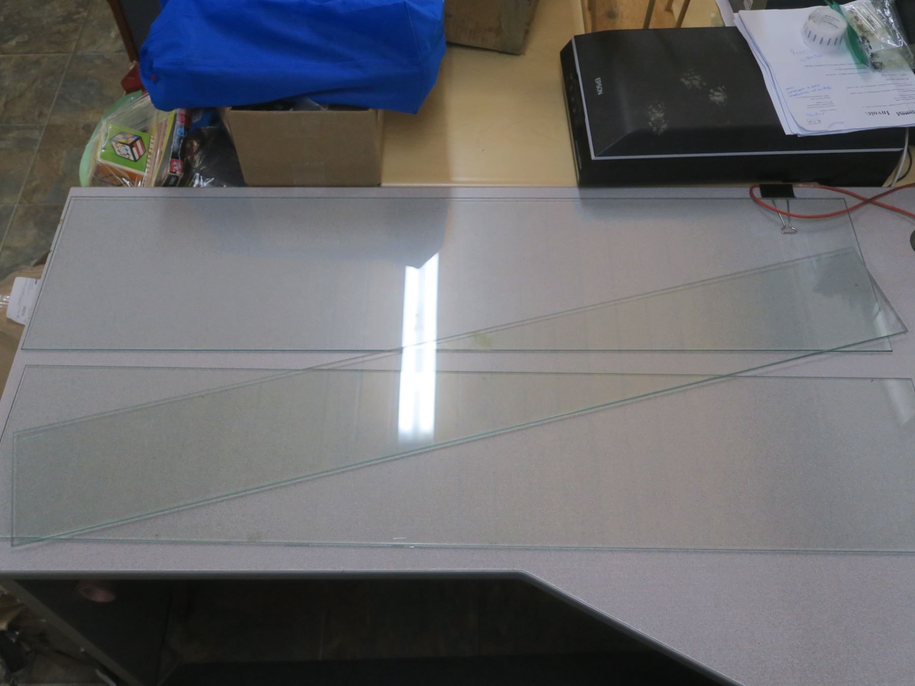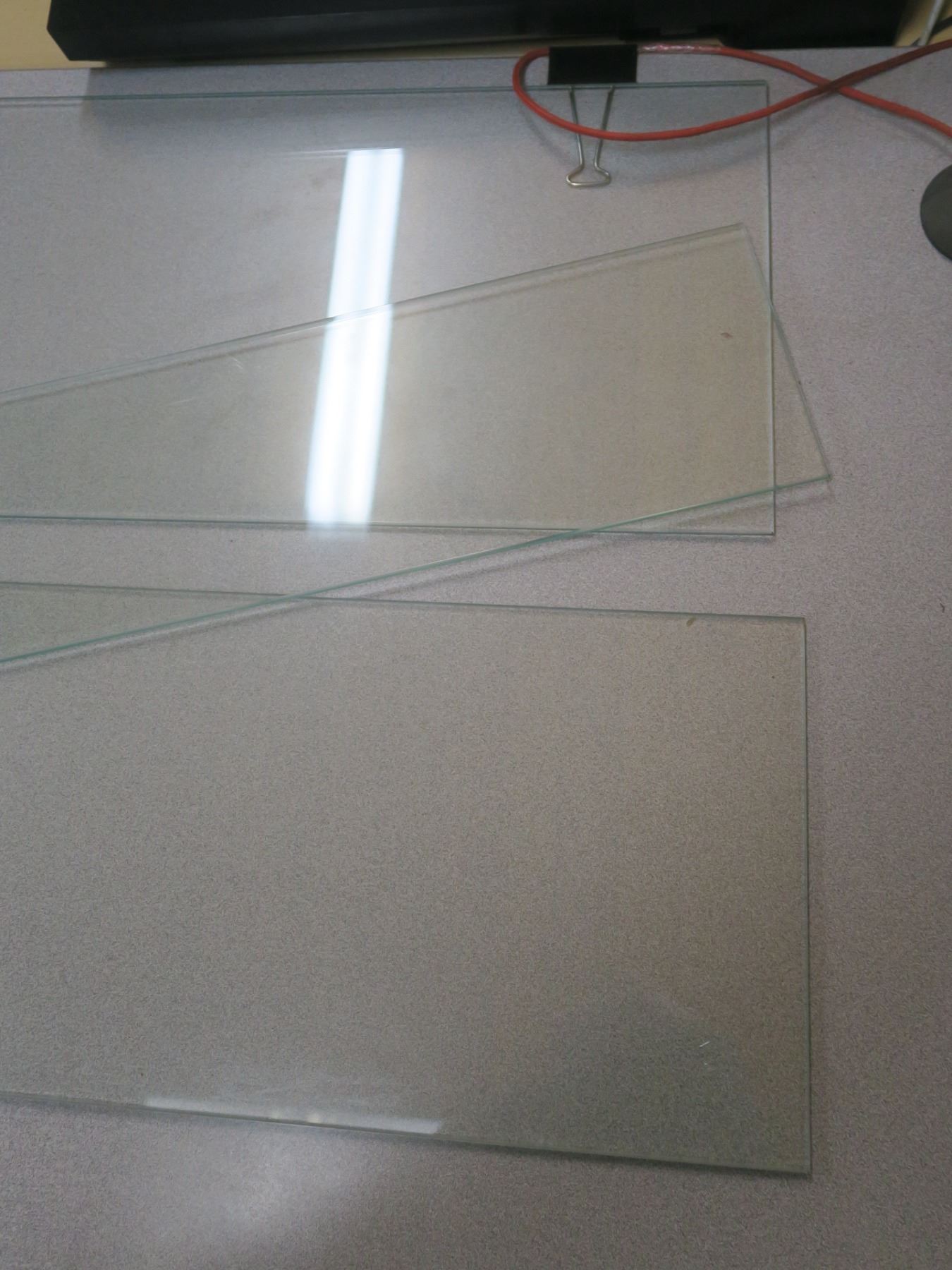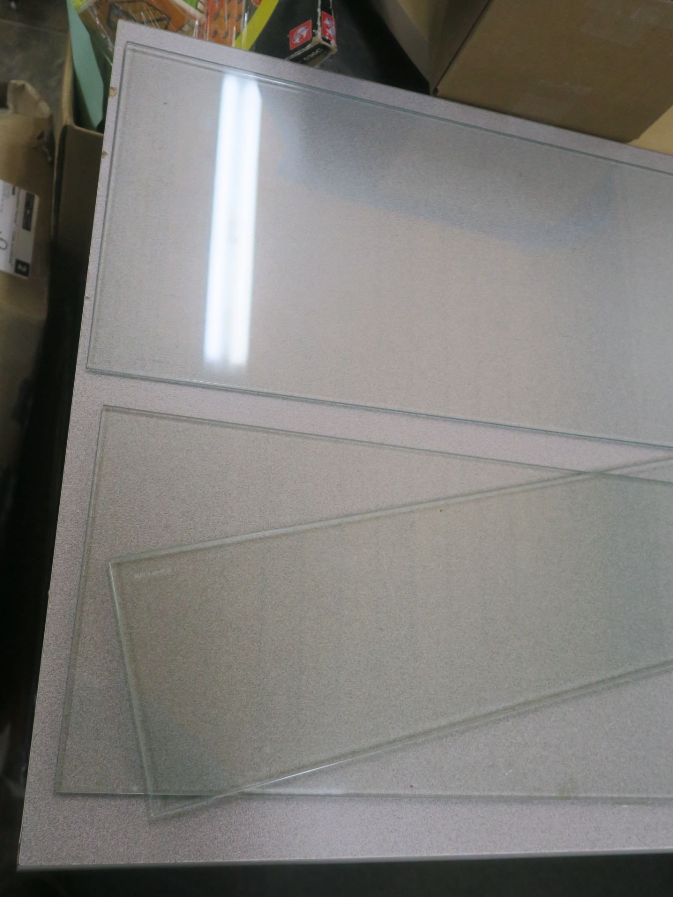 3 glass shelves - all 46.5" long; 11", 9.5" and 6" wide