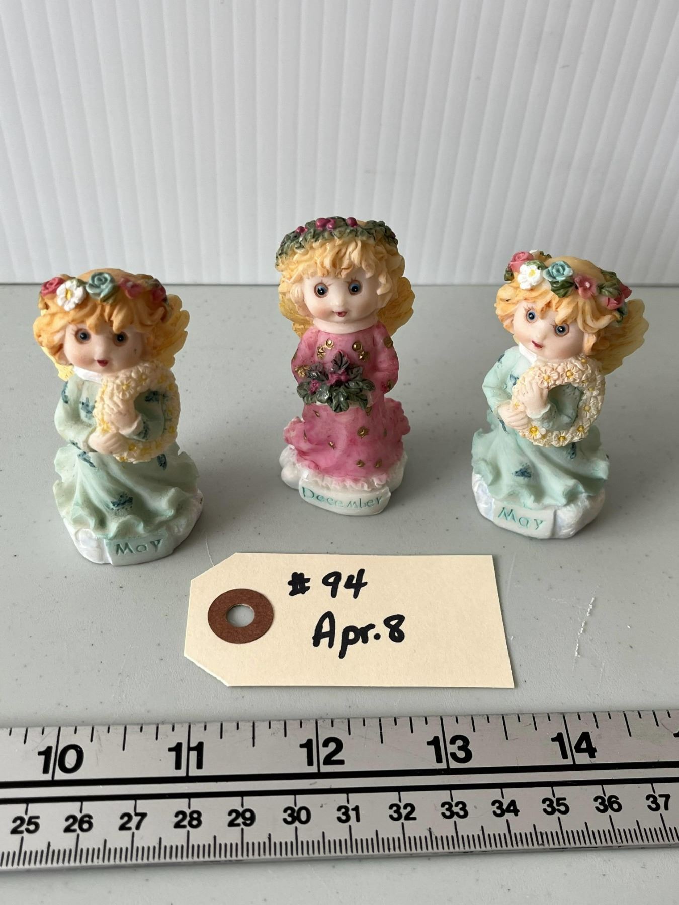 3 inch high birthstone angels ( 2 May, 1 Dec.)