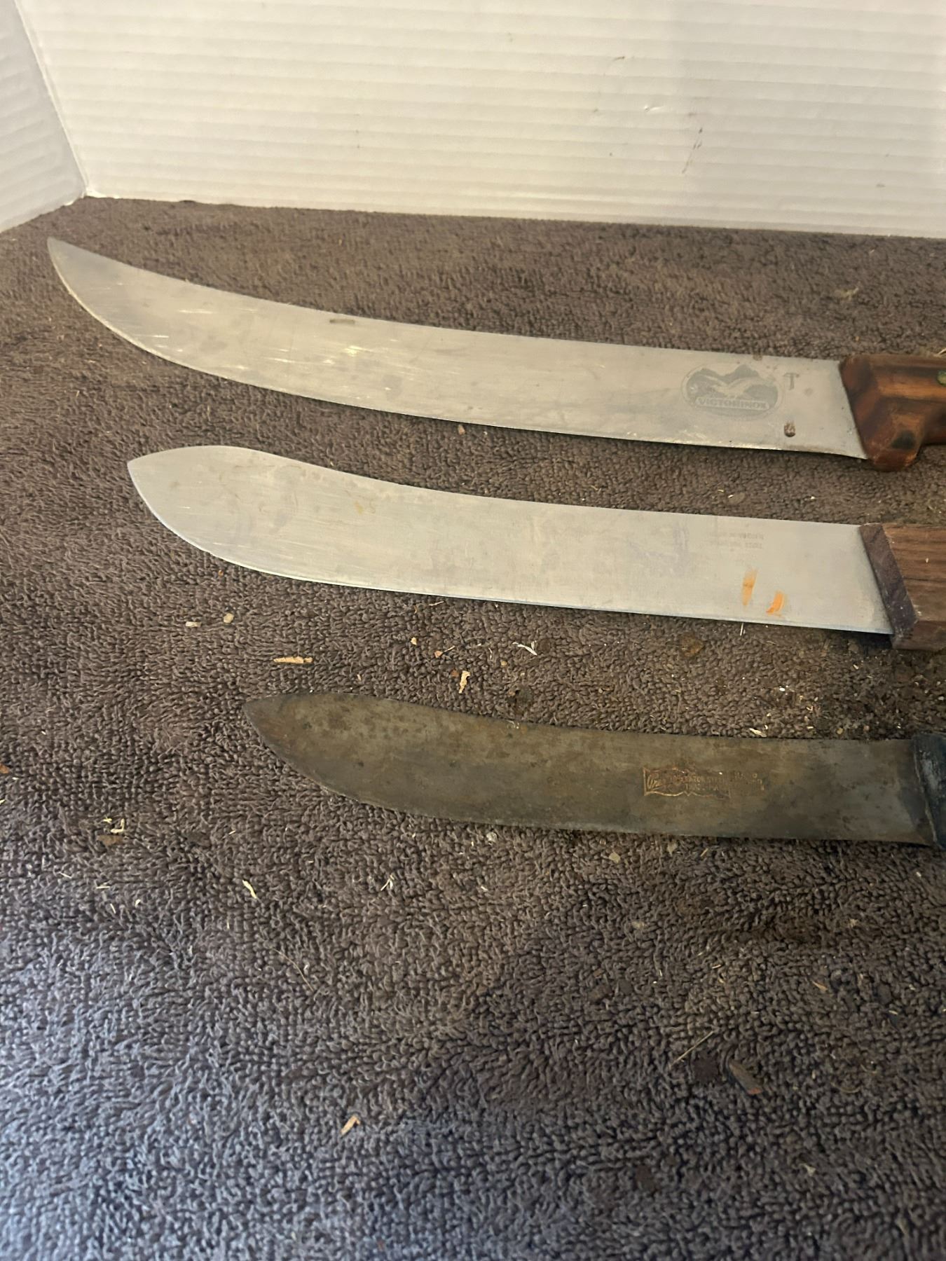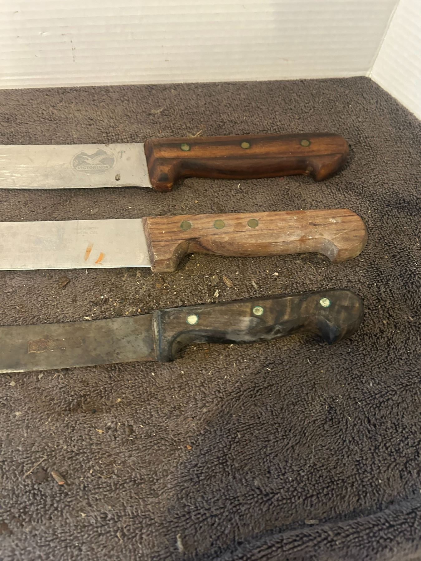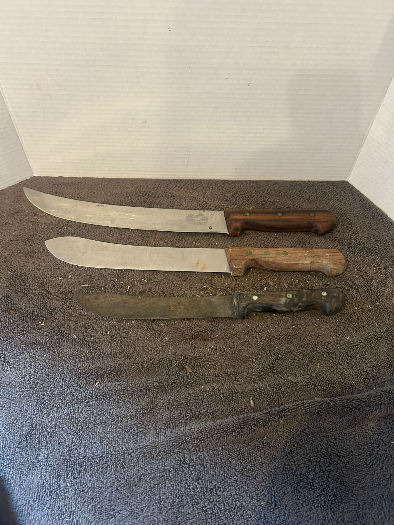3 knives - 8", 9.5", 12" - Germany, Sweden - 1 marked Victorinox