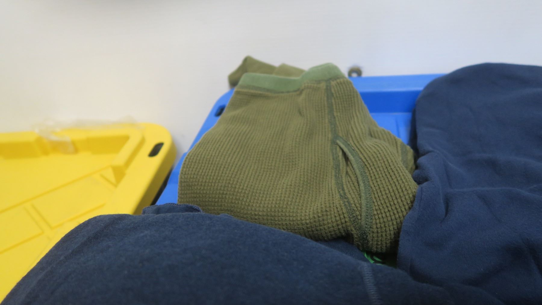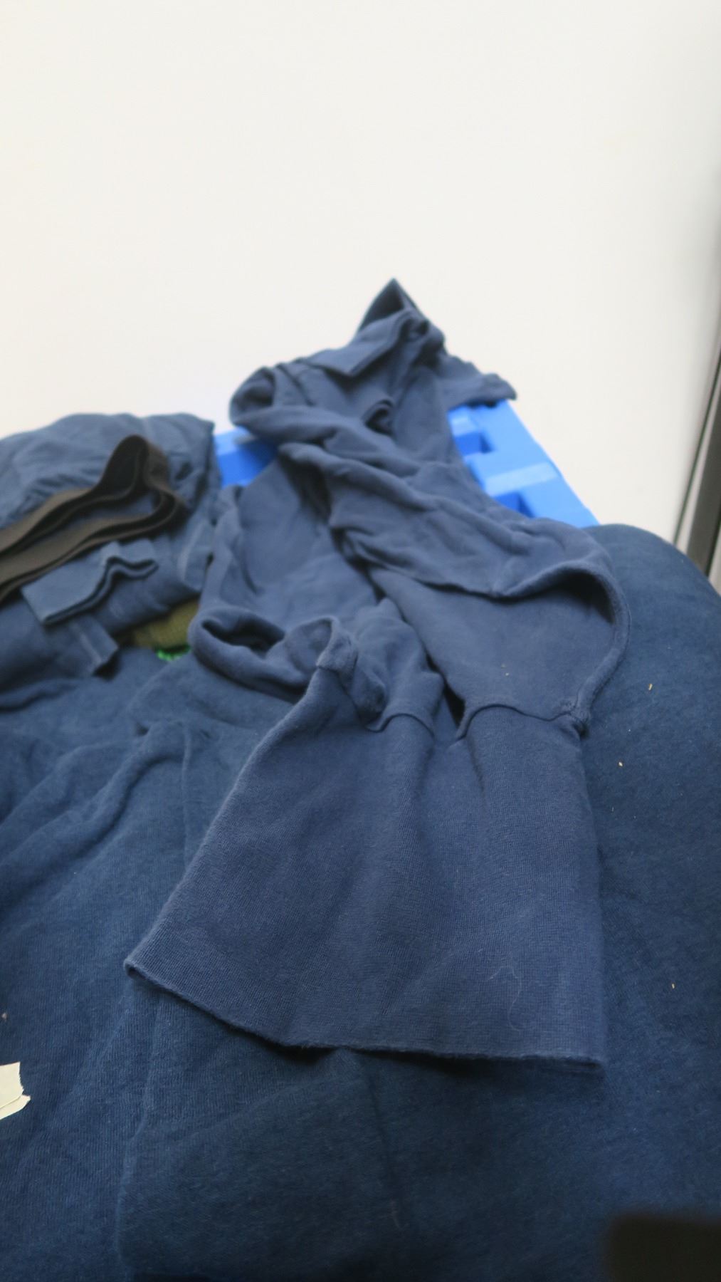 3 military fleece thermo turtle neck blue tops, 2 long john bottoms