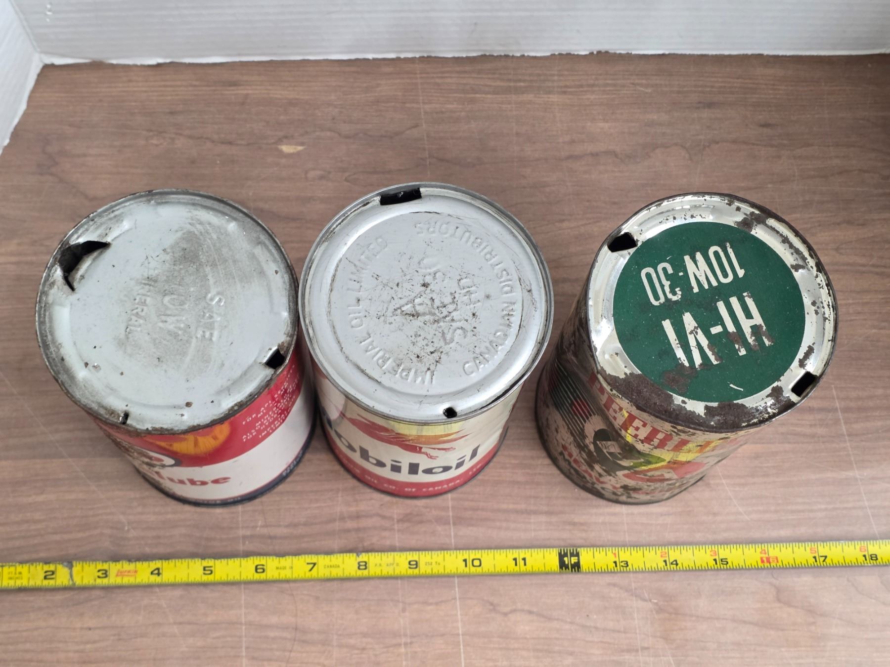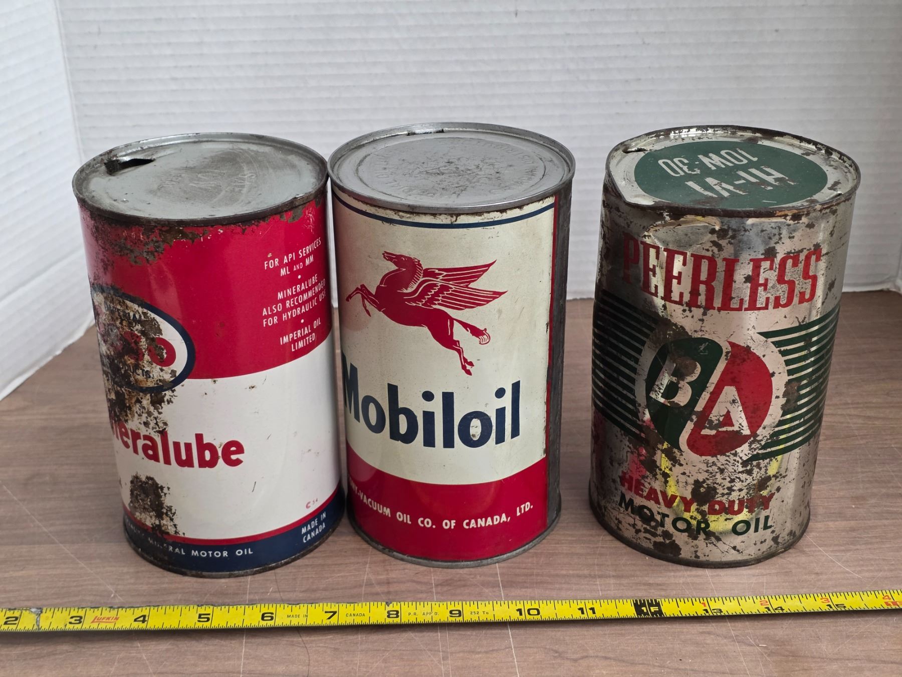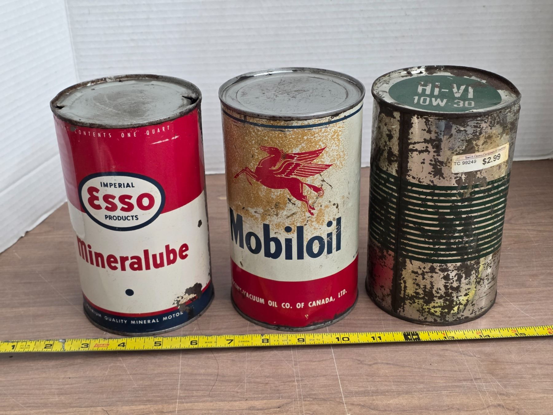 3 oil tins- Esso, Mobiloil, B/A