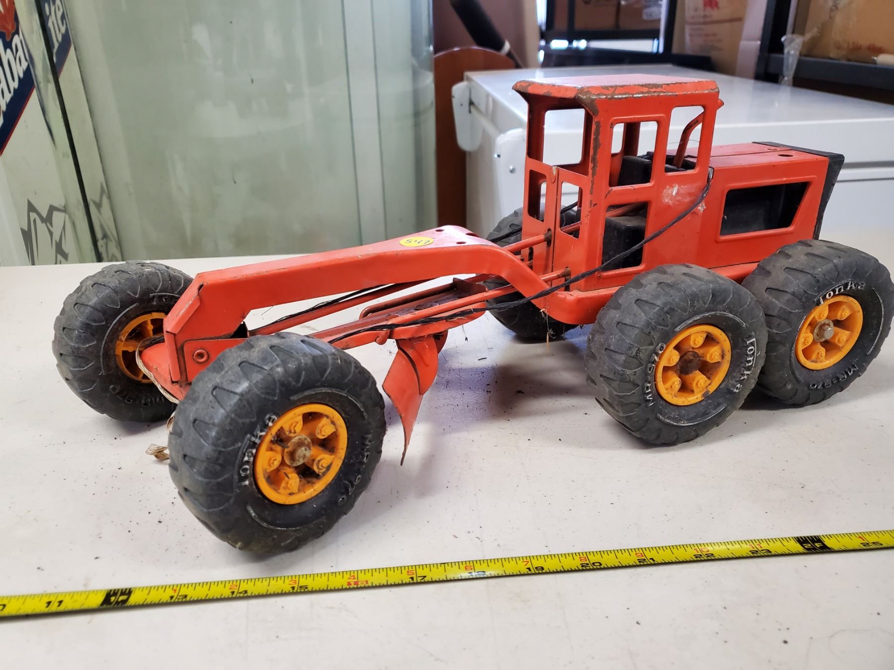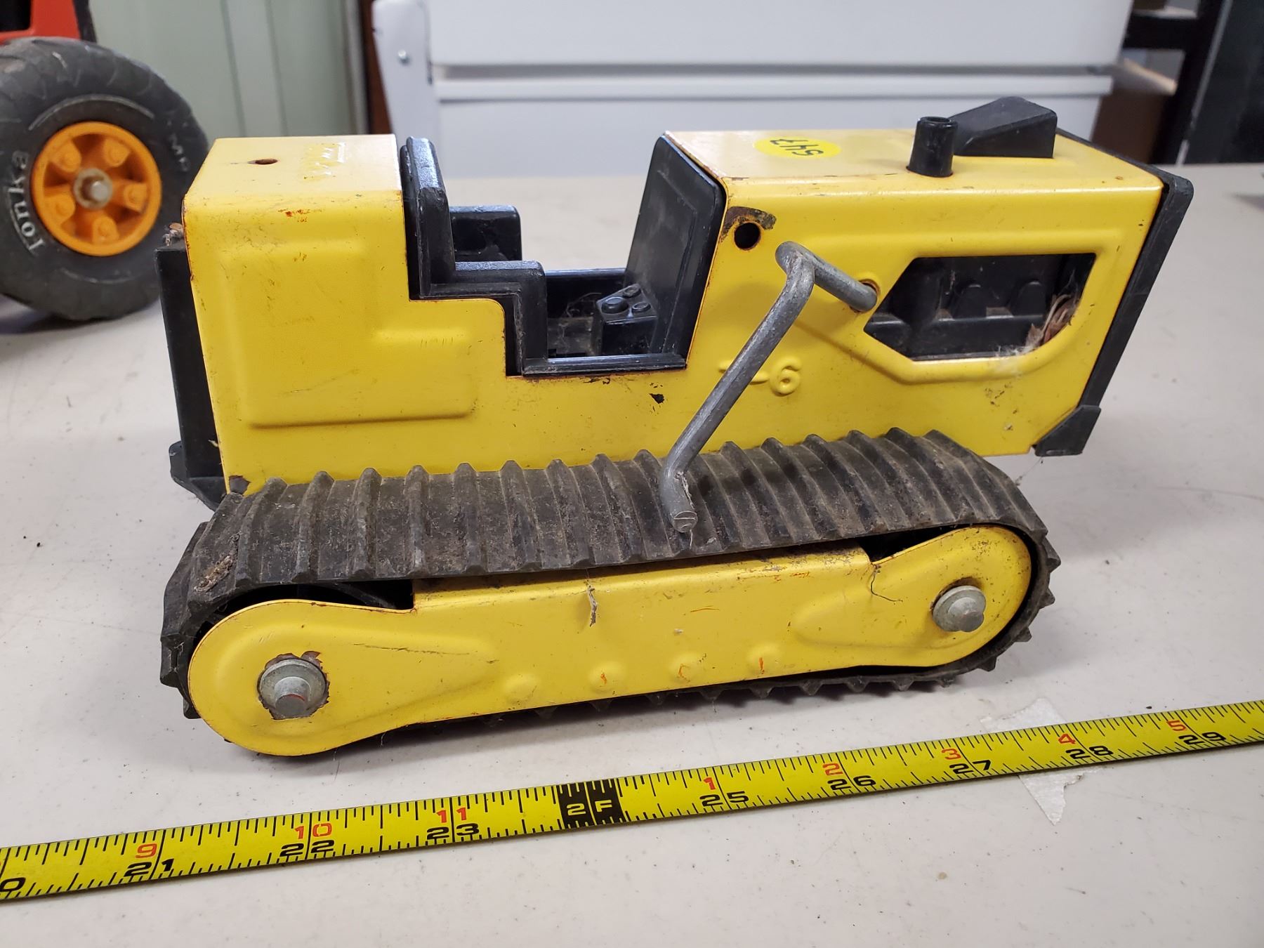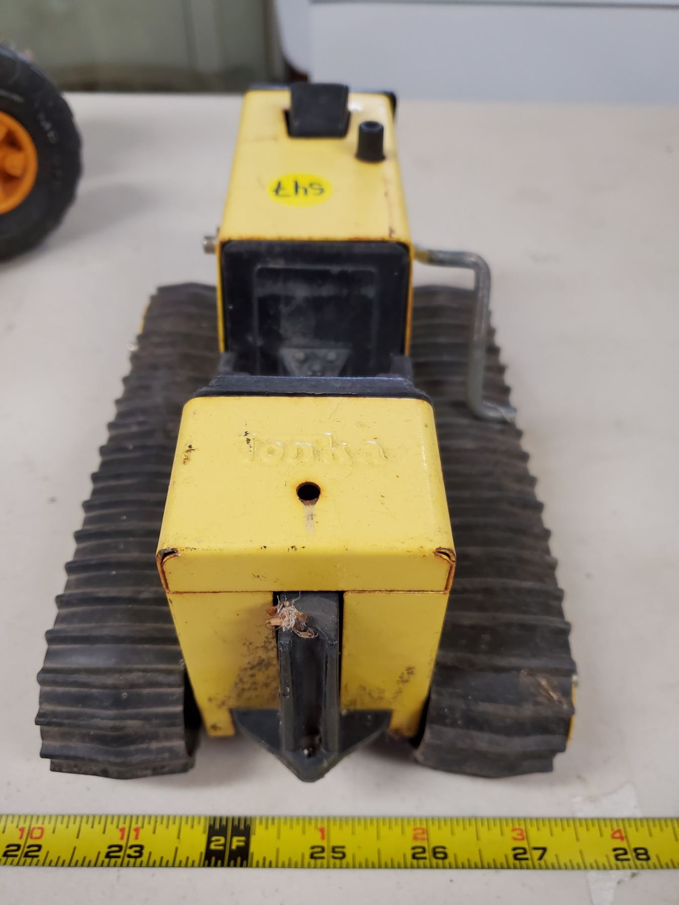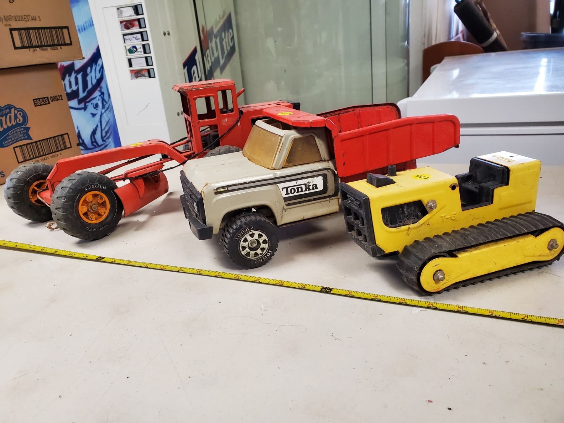 3 old Tonka toys, grader, dump truck & T6 crawler