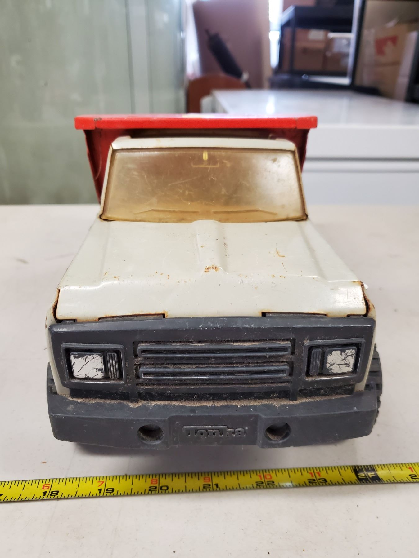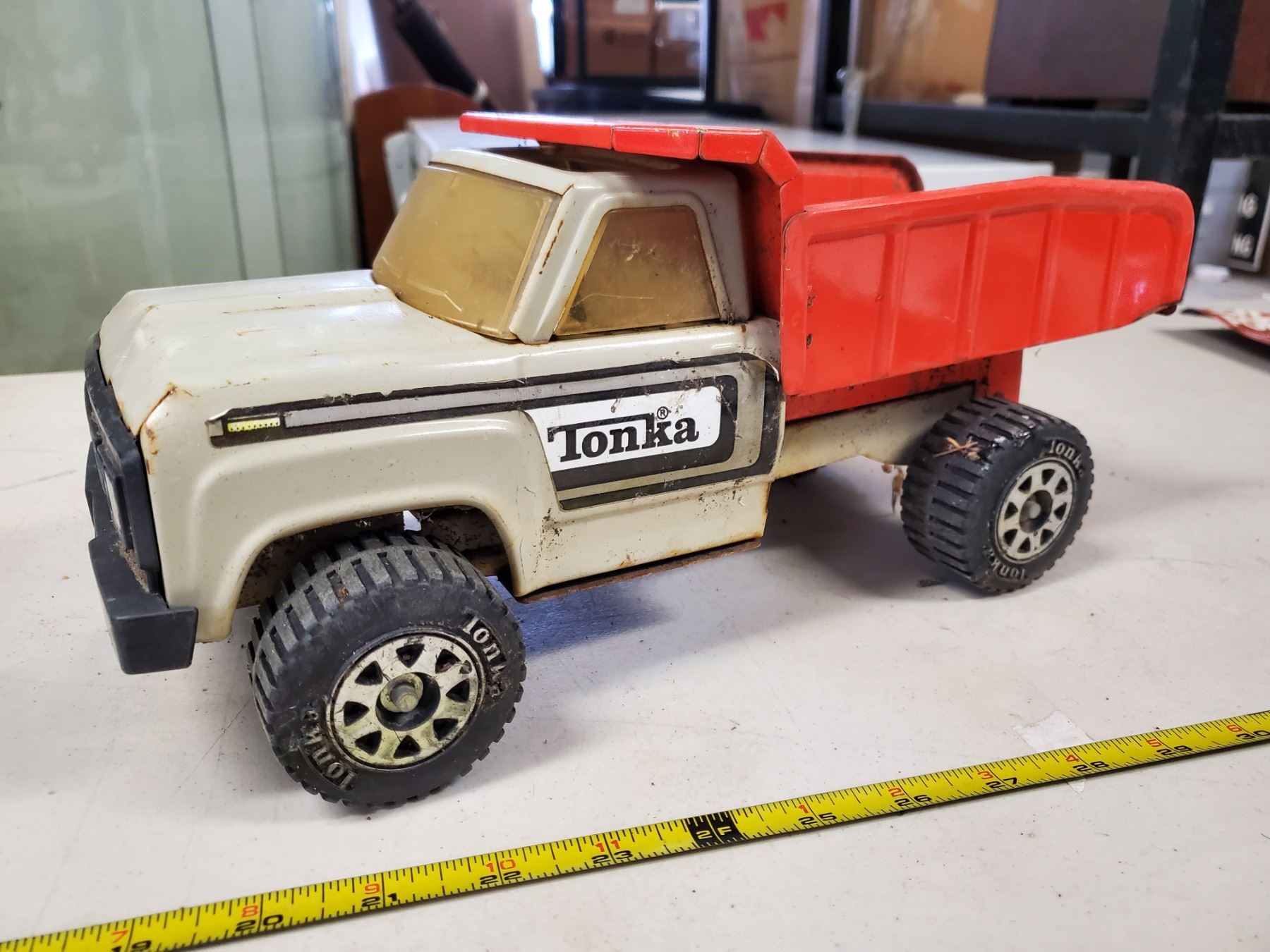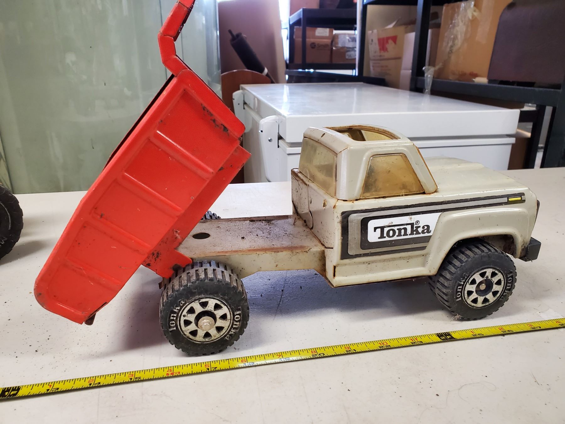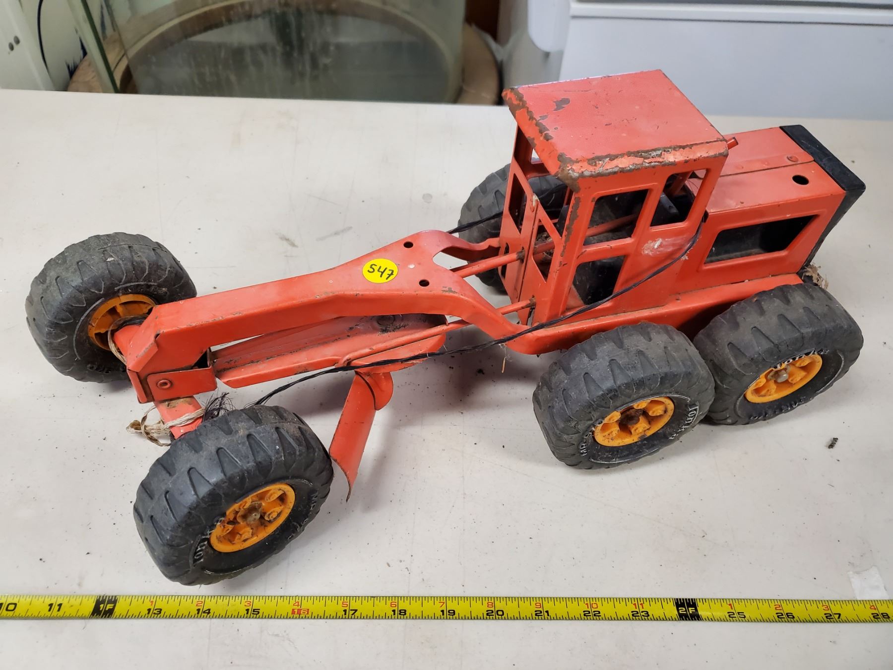 3 old Tonka toys, grader, dump truck & T6 crawler