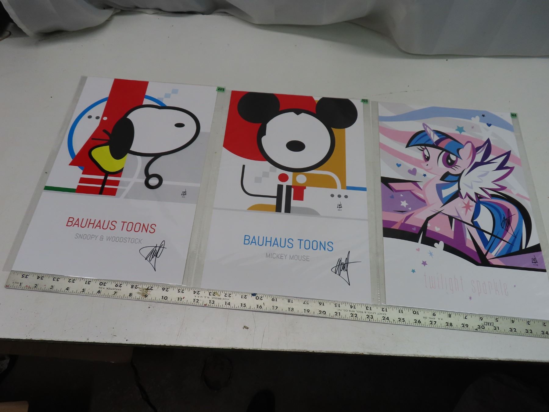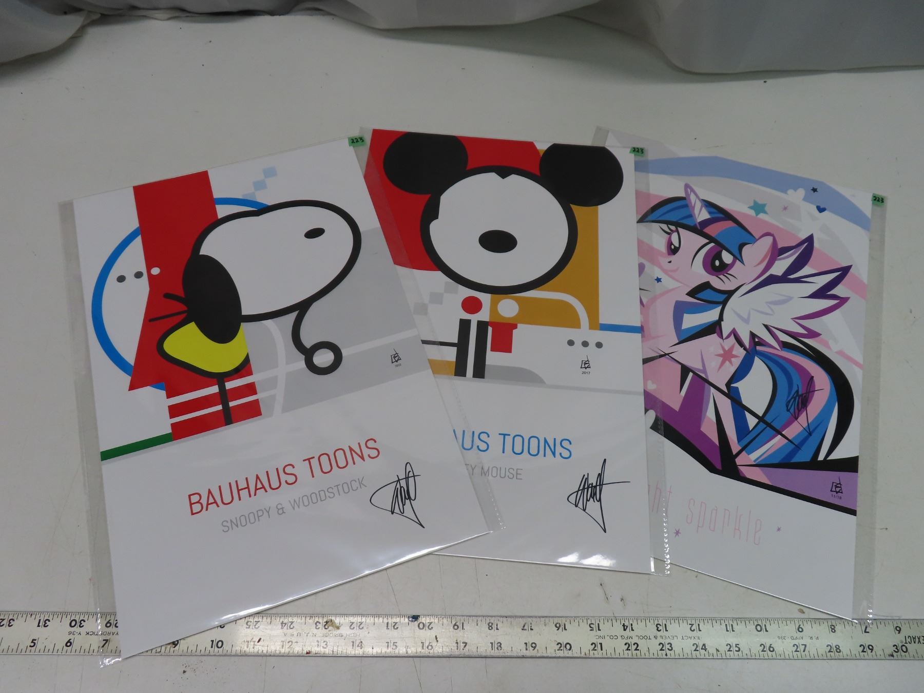 3 premium signed art prints by canadian artist 11"x17"LTD.edition Bauhaus tunes series: snoopy & wood stock, Mickymouse & twilight sparkle, electricimpression.com