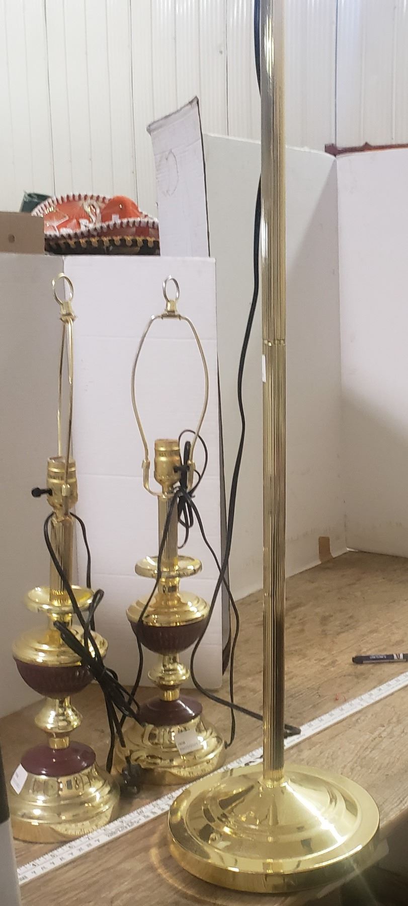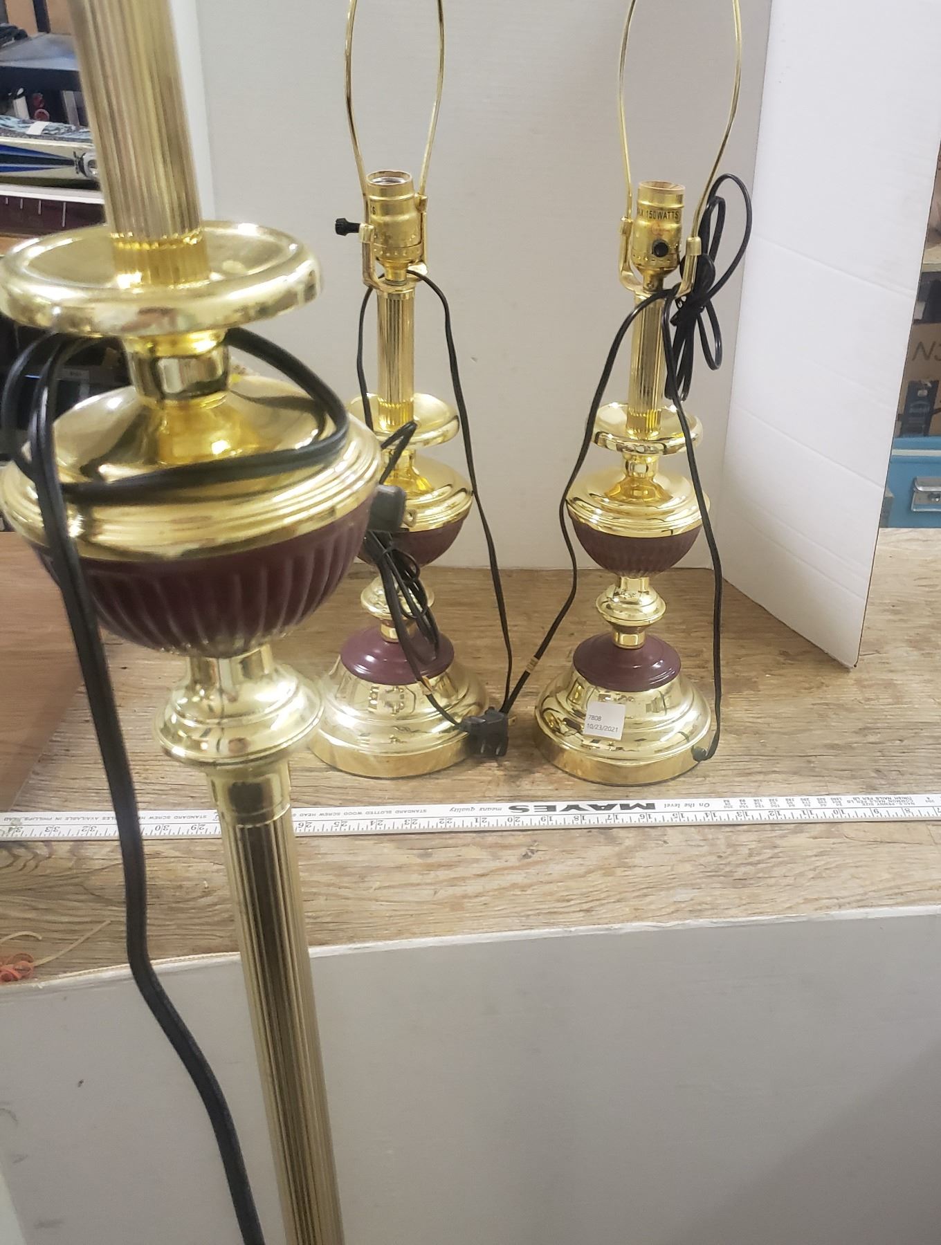 3 retro lamp set (no shades)one tall floor lamp and two table lamps matching