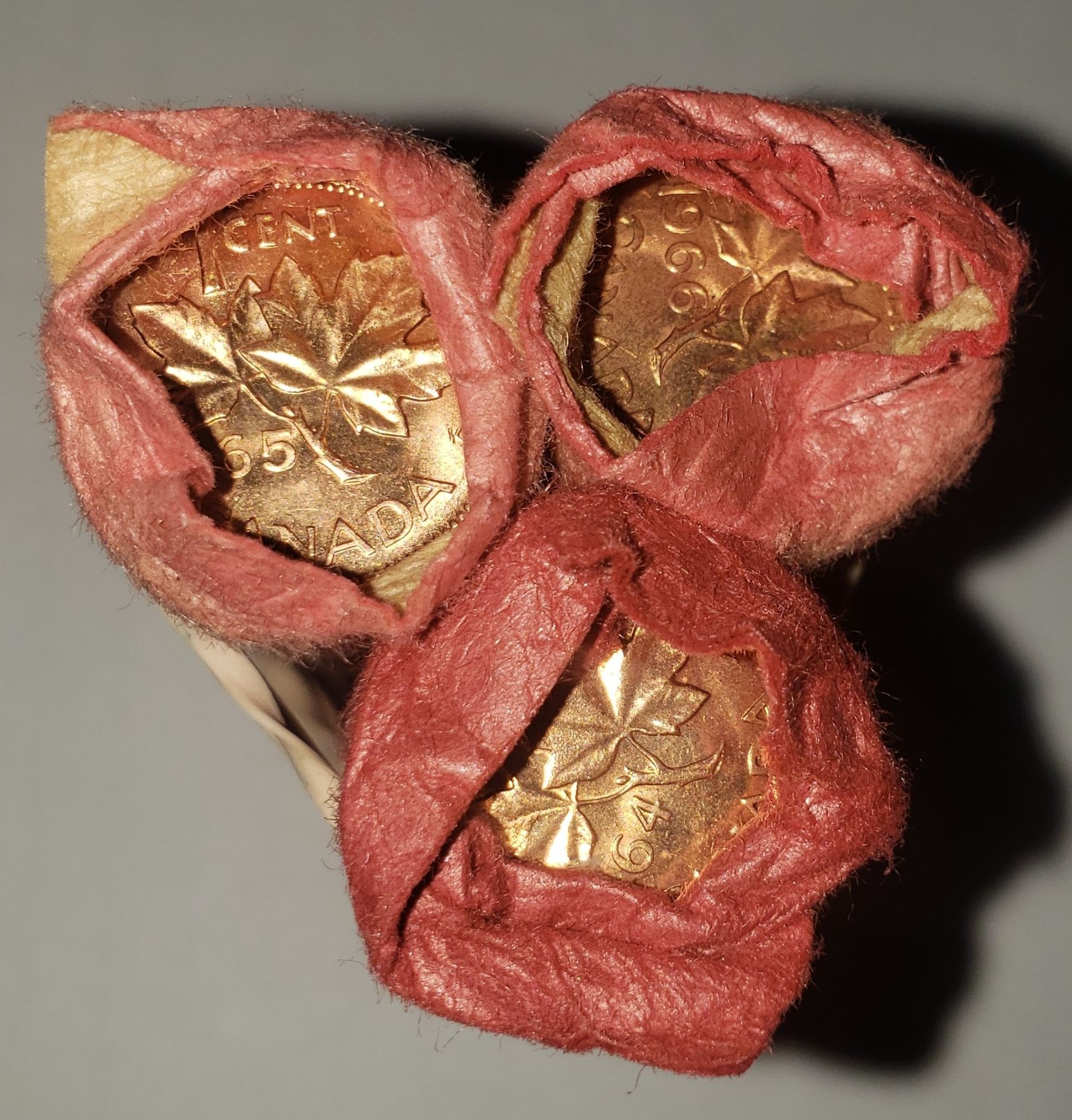 3 rolls of pennies coins 1 cent 1964, 1965, 1966