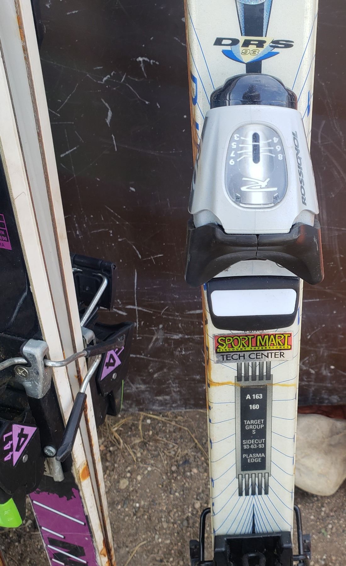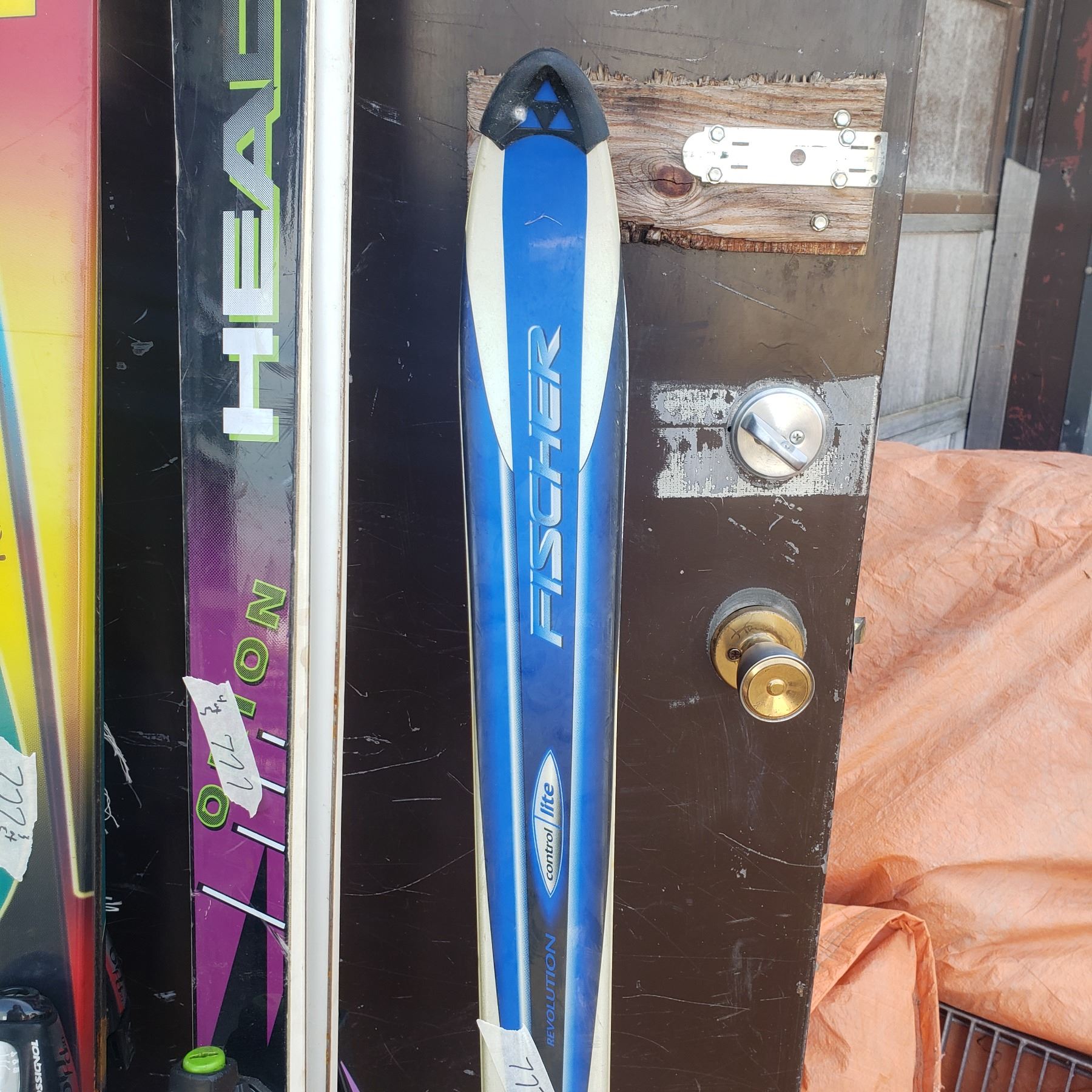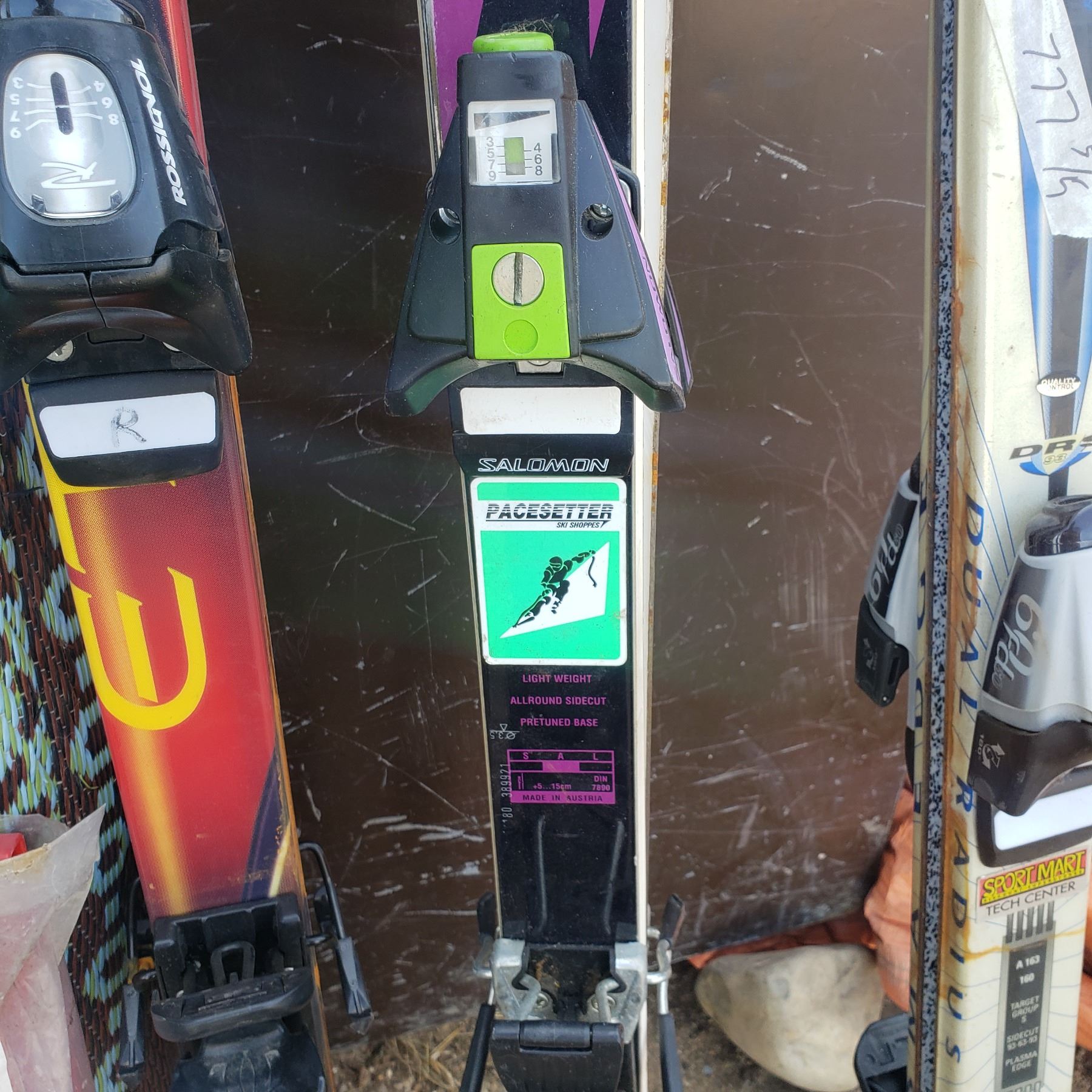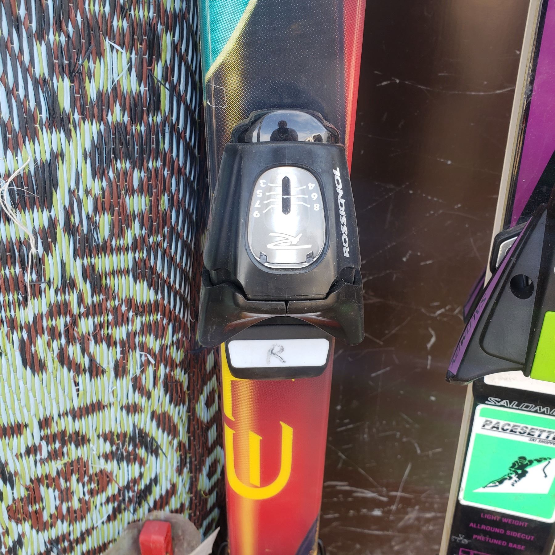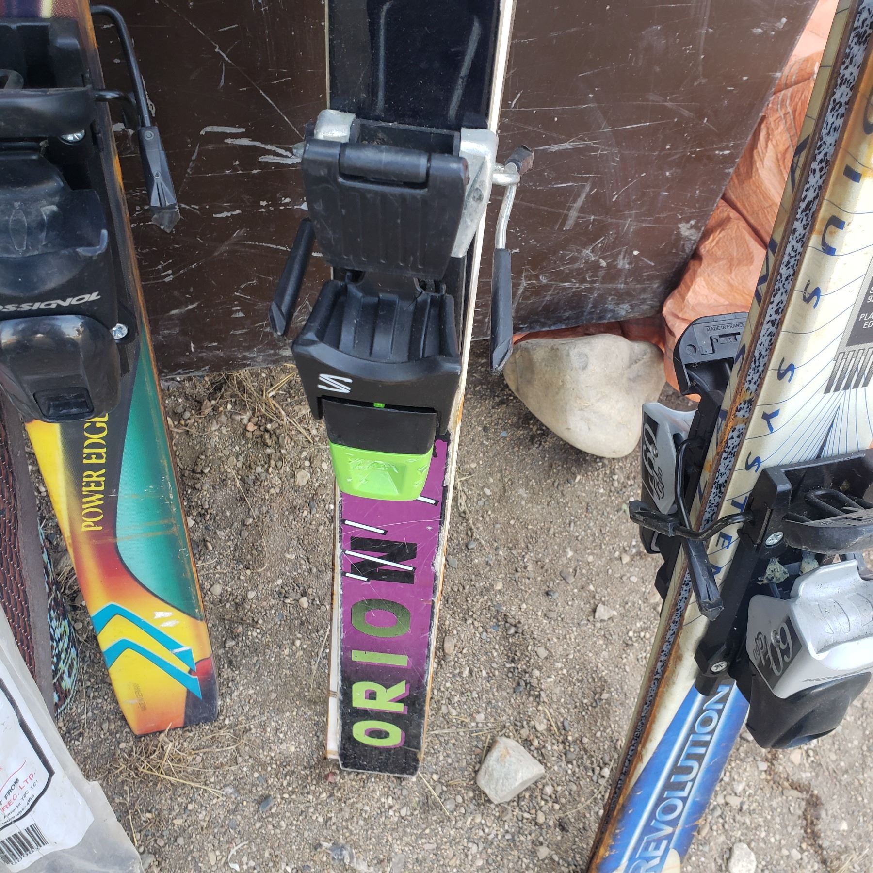 3 sets of skis / outdoor carpet / rocky mountain sandwich toaster