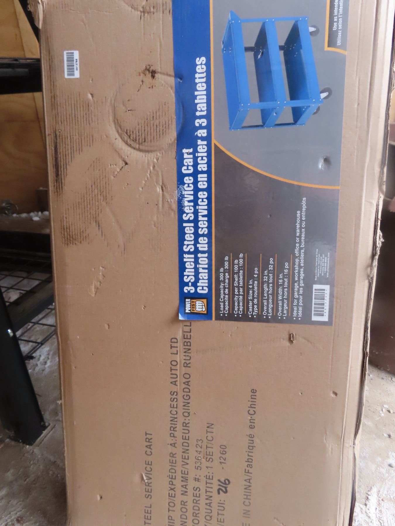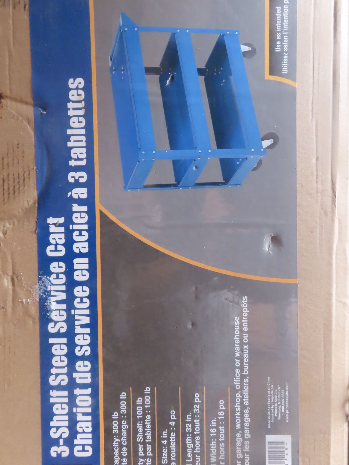 3 shelf steel shop cart - 32"Lx16"W - new in box