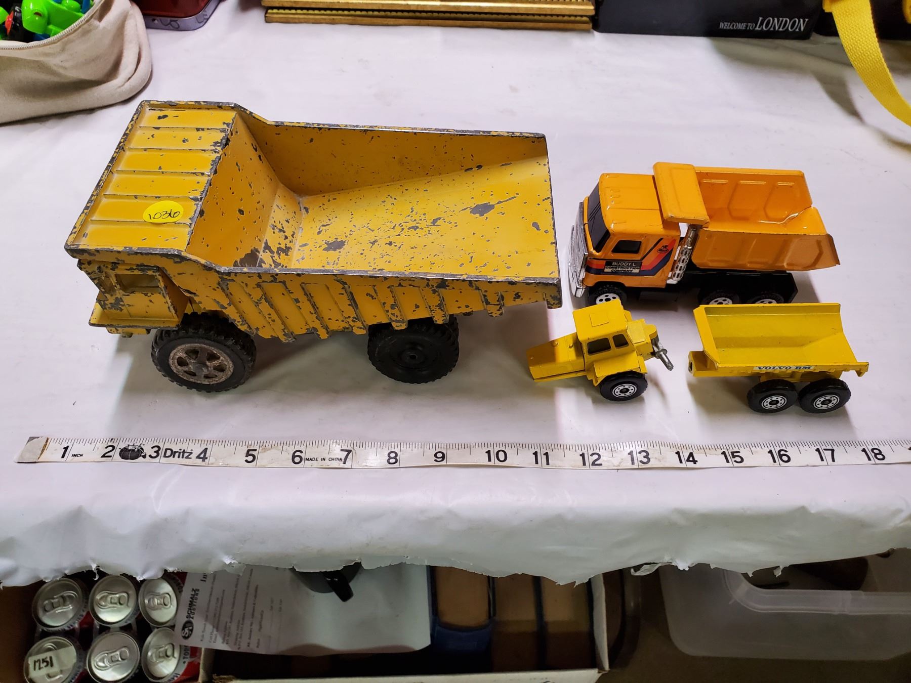 3 toy trucks (1 buddy l)