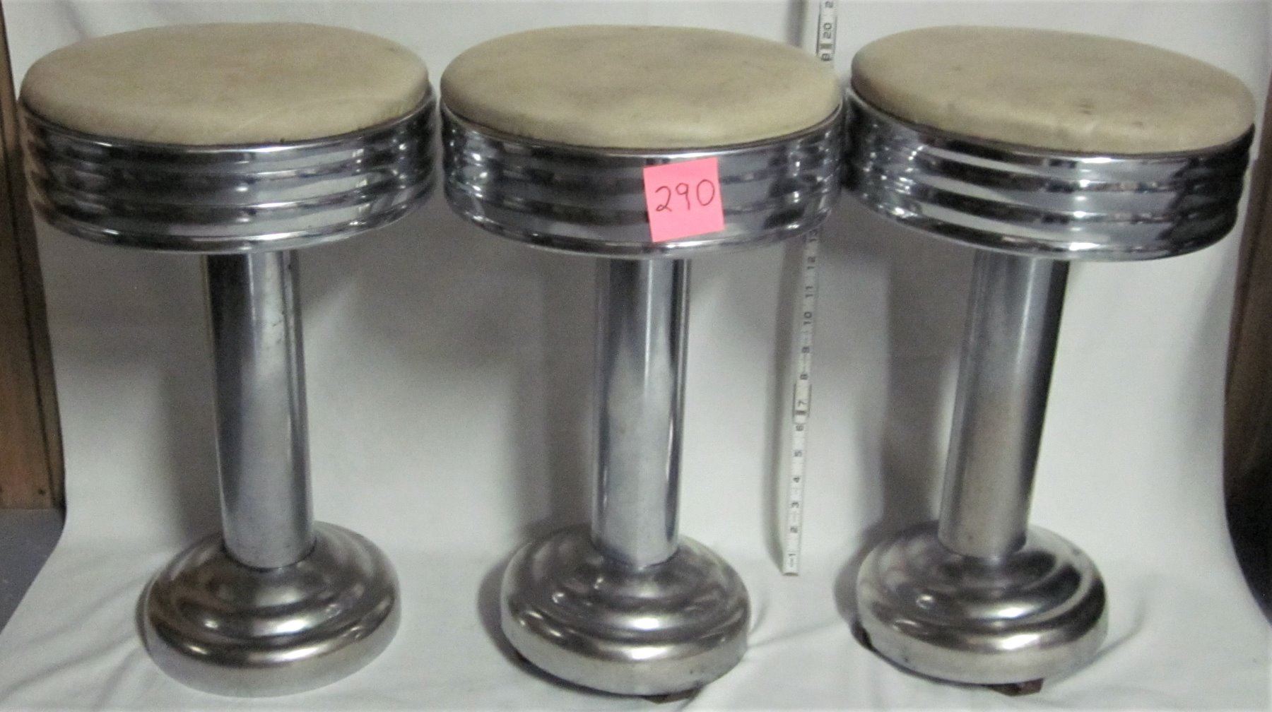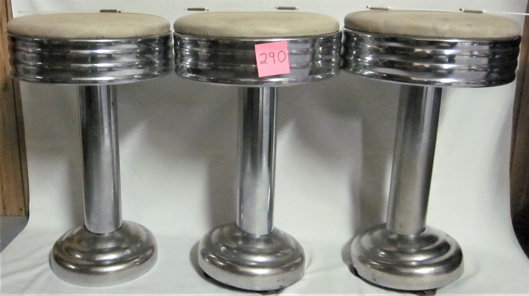 3 vintage 1950's-60's art deco soda fountain Chrome/Nickle swivel stools