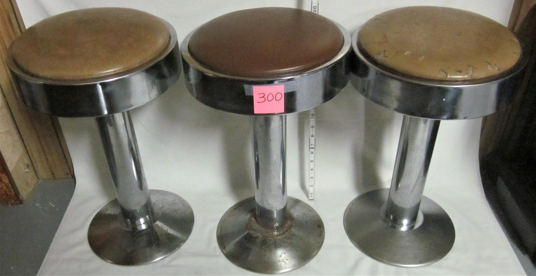 3 vintage 1950's-60's art deco soda fountain Chrome/Nickle swivel stools