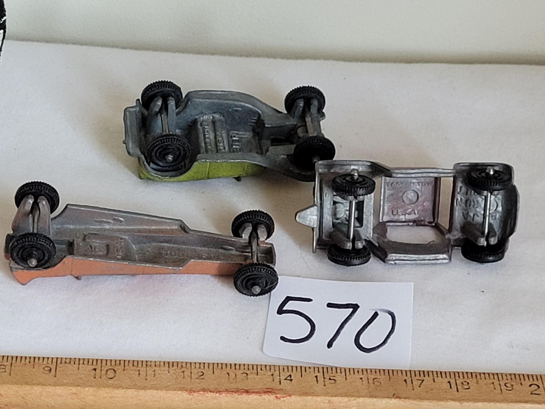 3 vintage Tootsie toy cars.