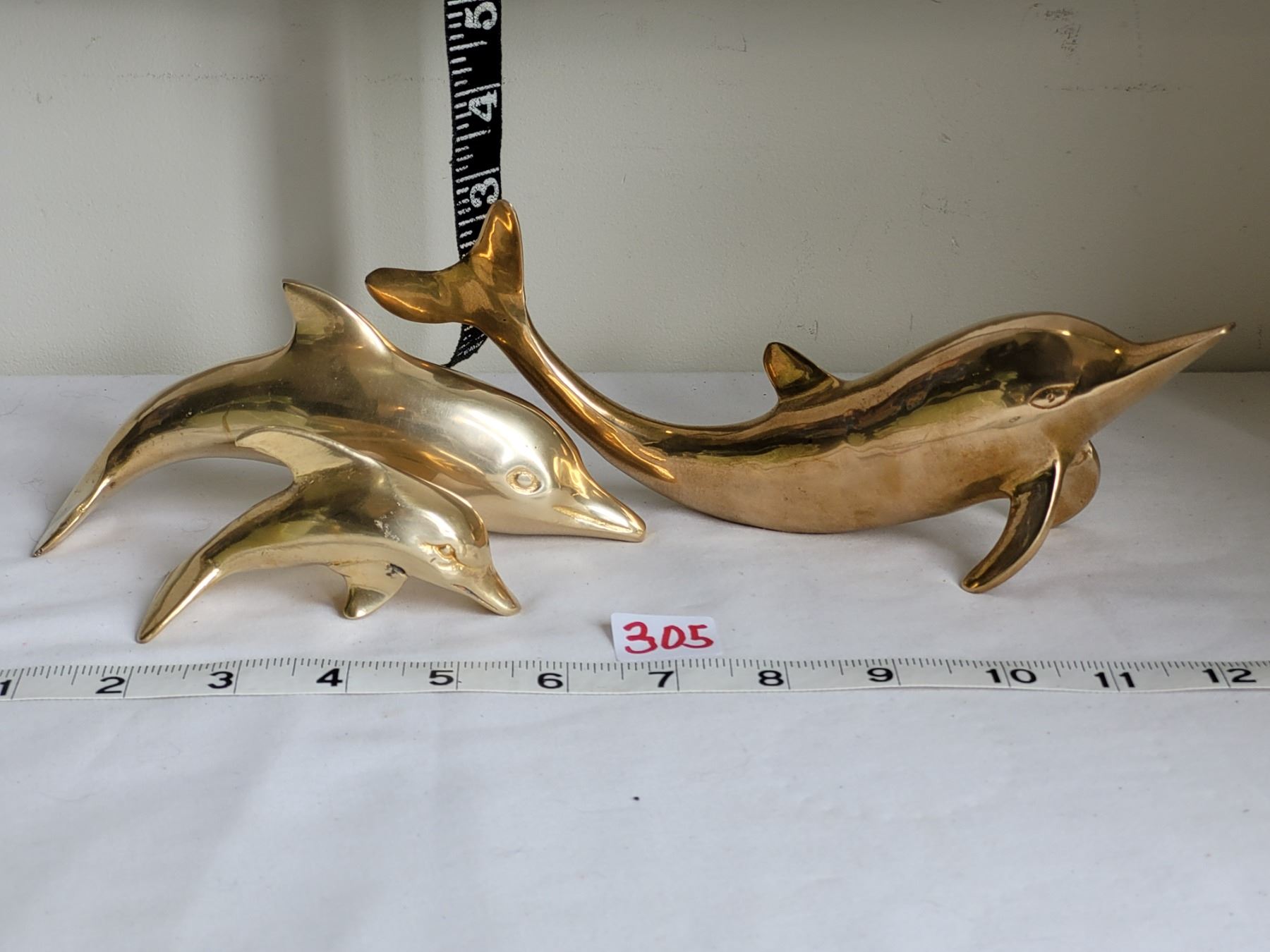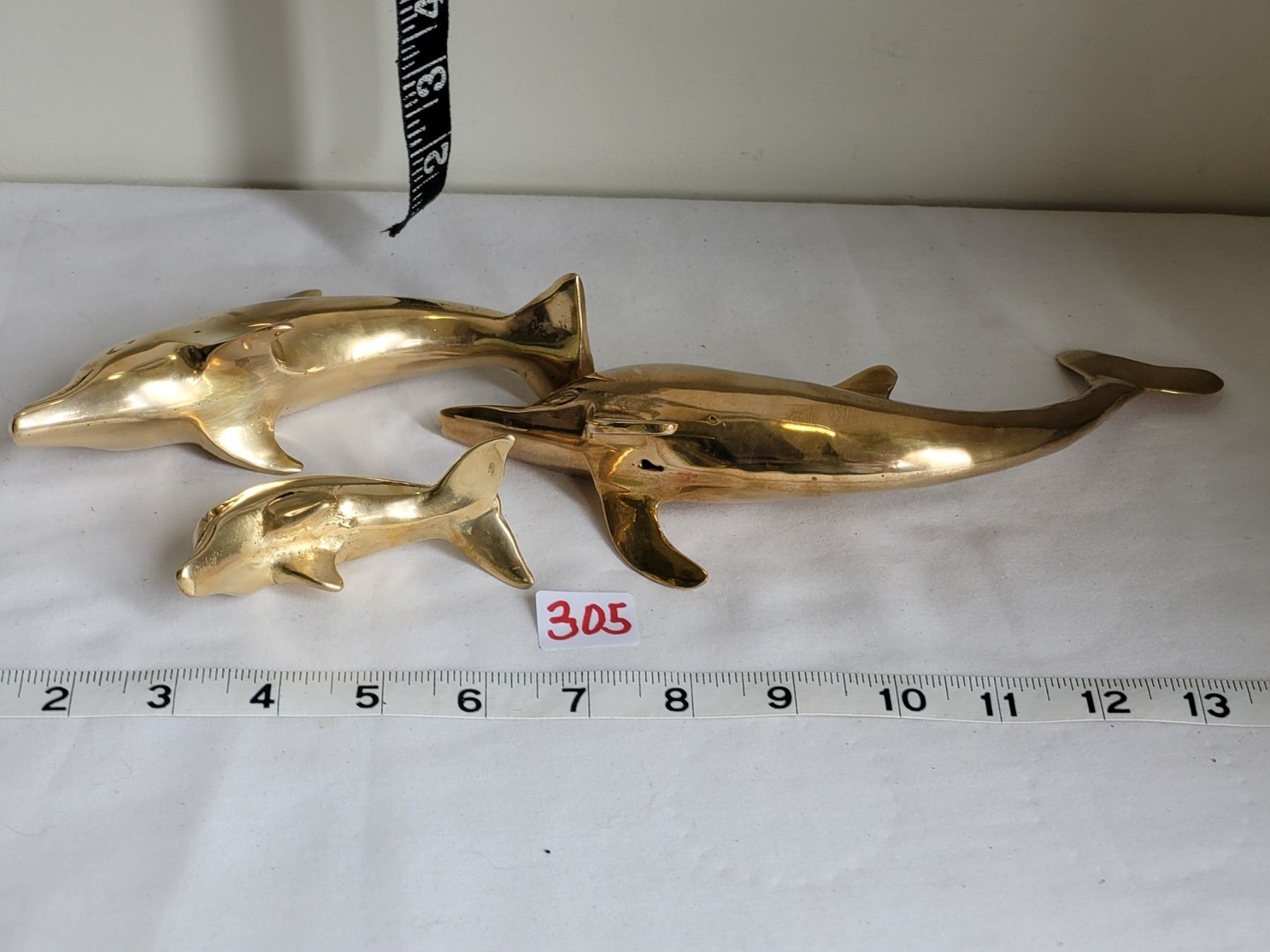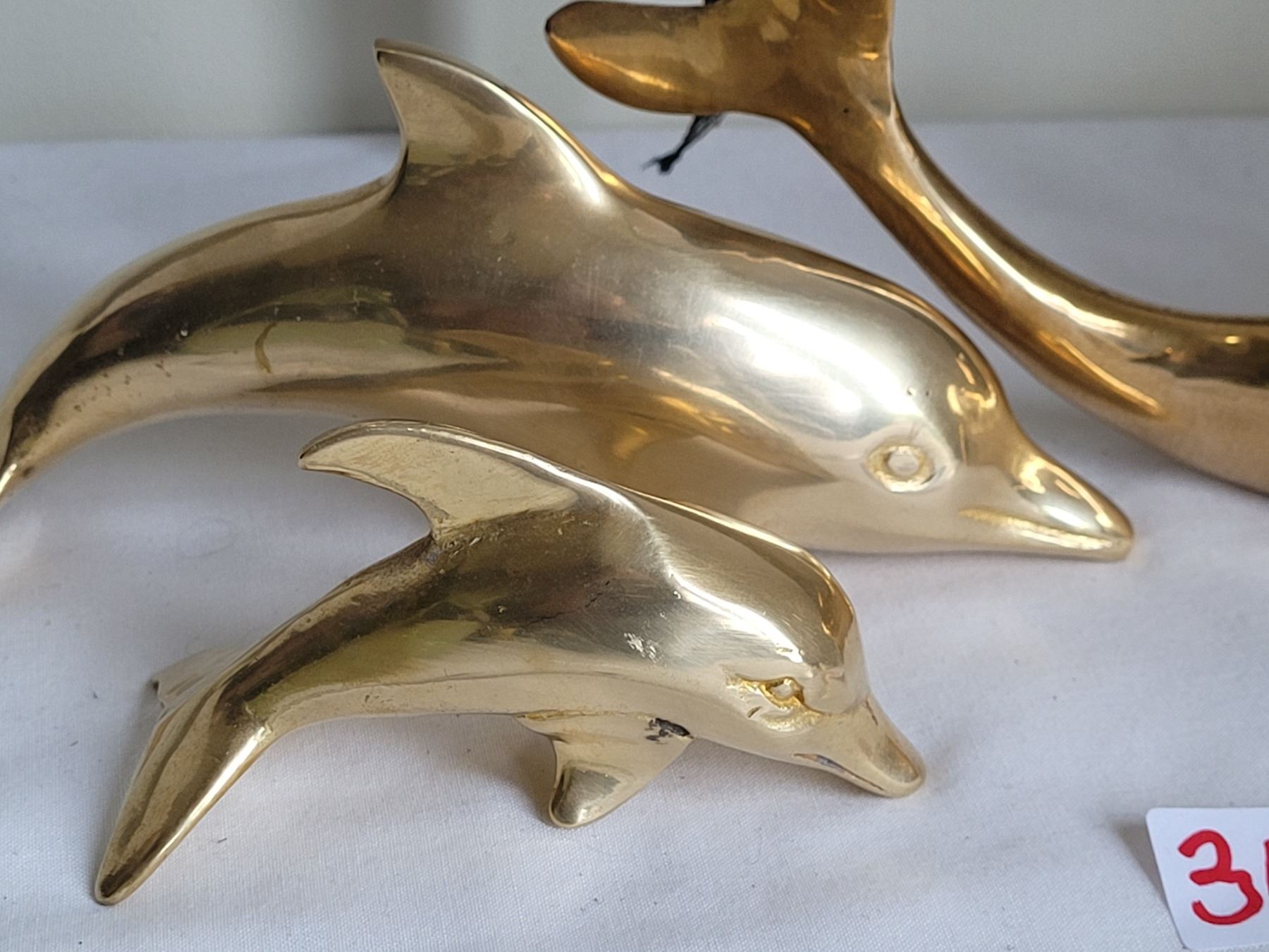 3 vintage solid brass dolphins, made in India.