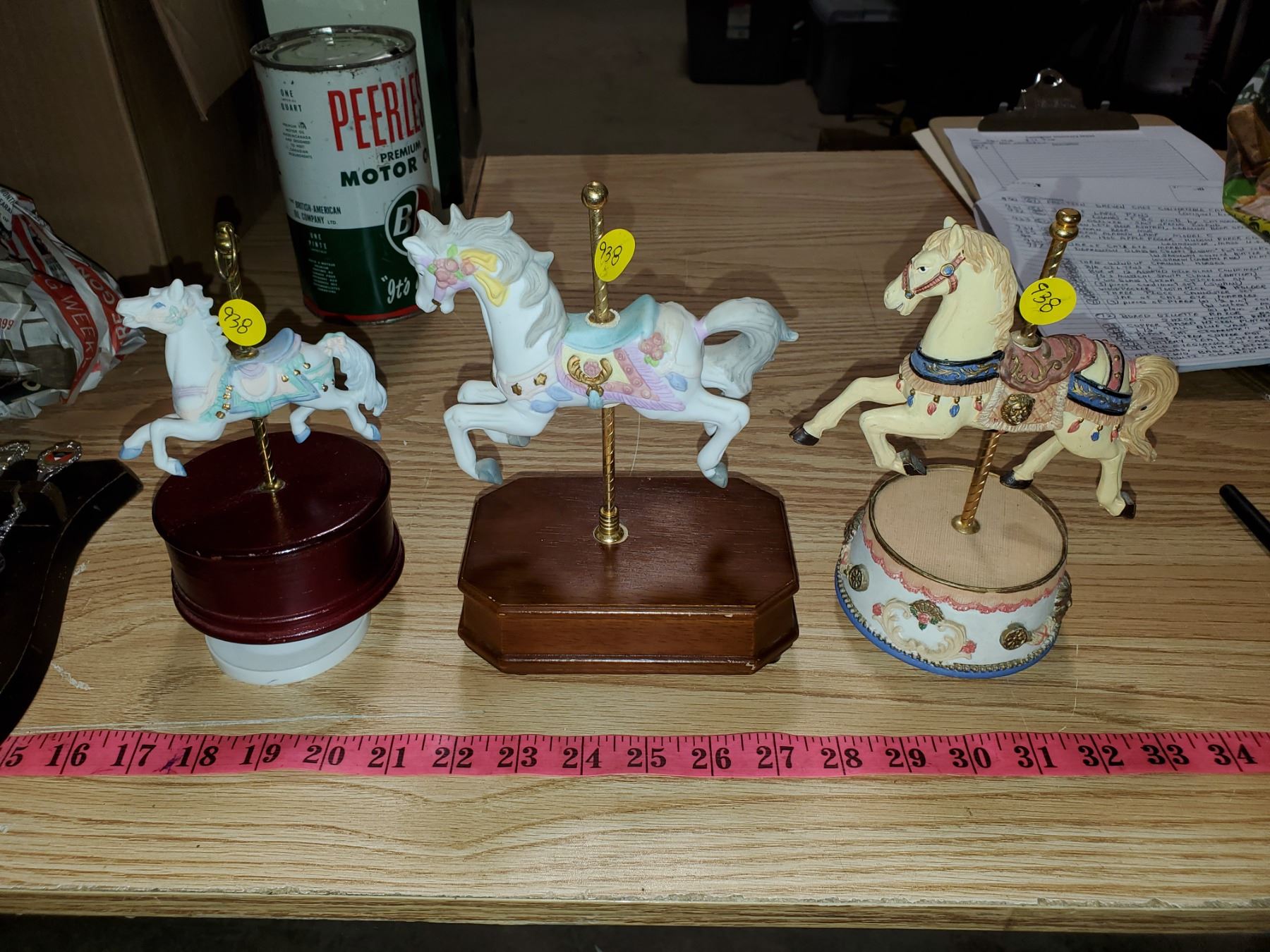 (3) wind-up carousel horses