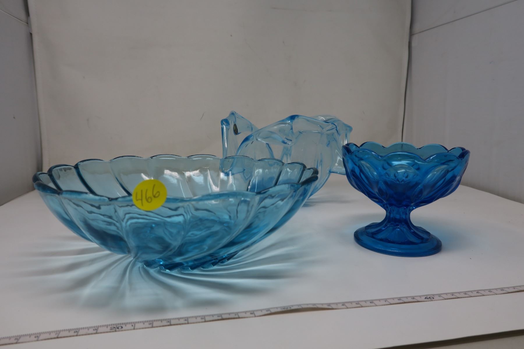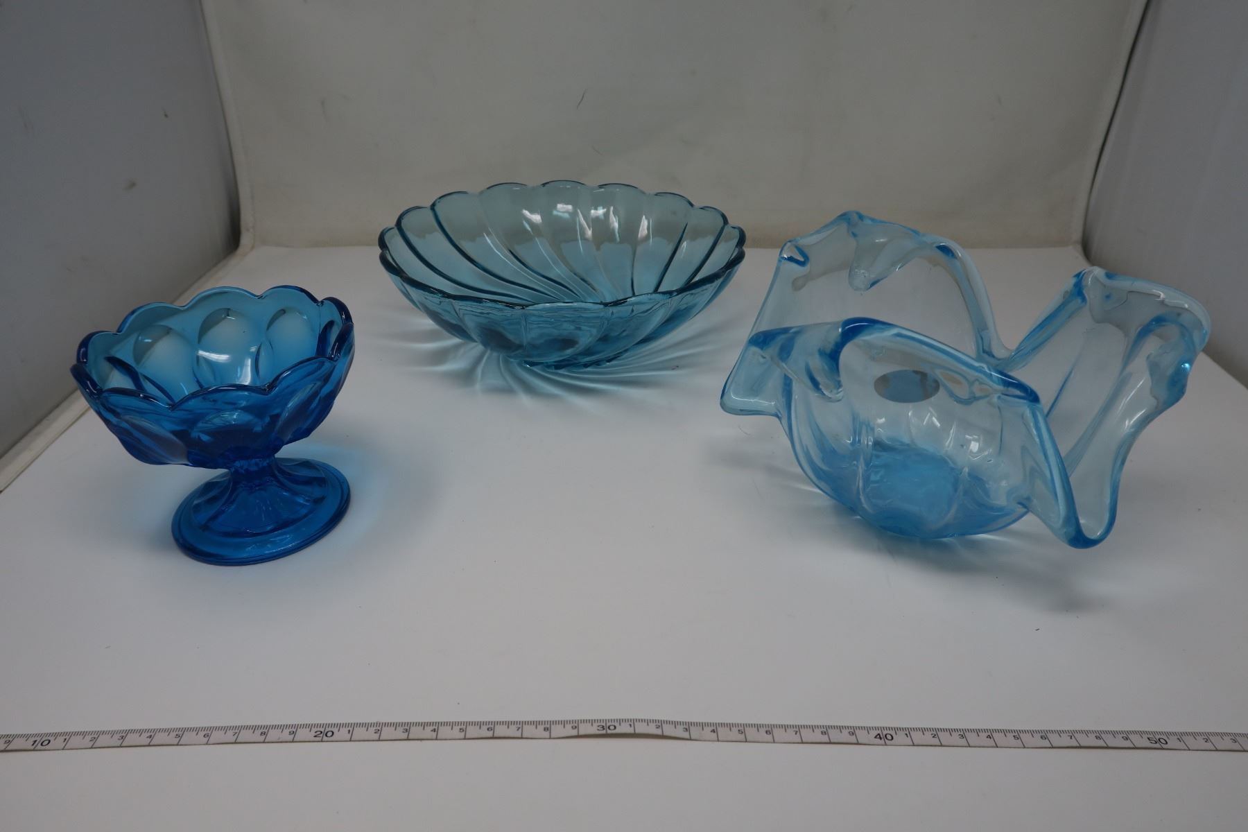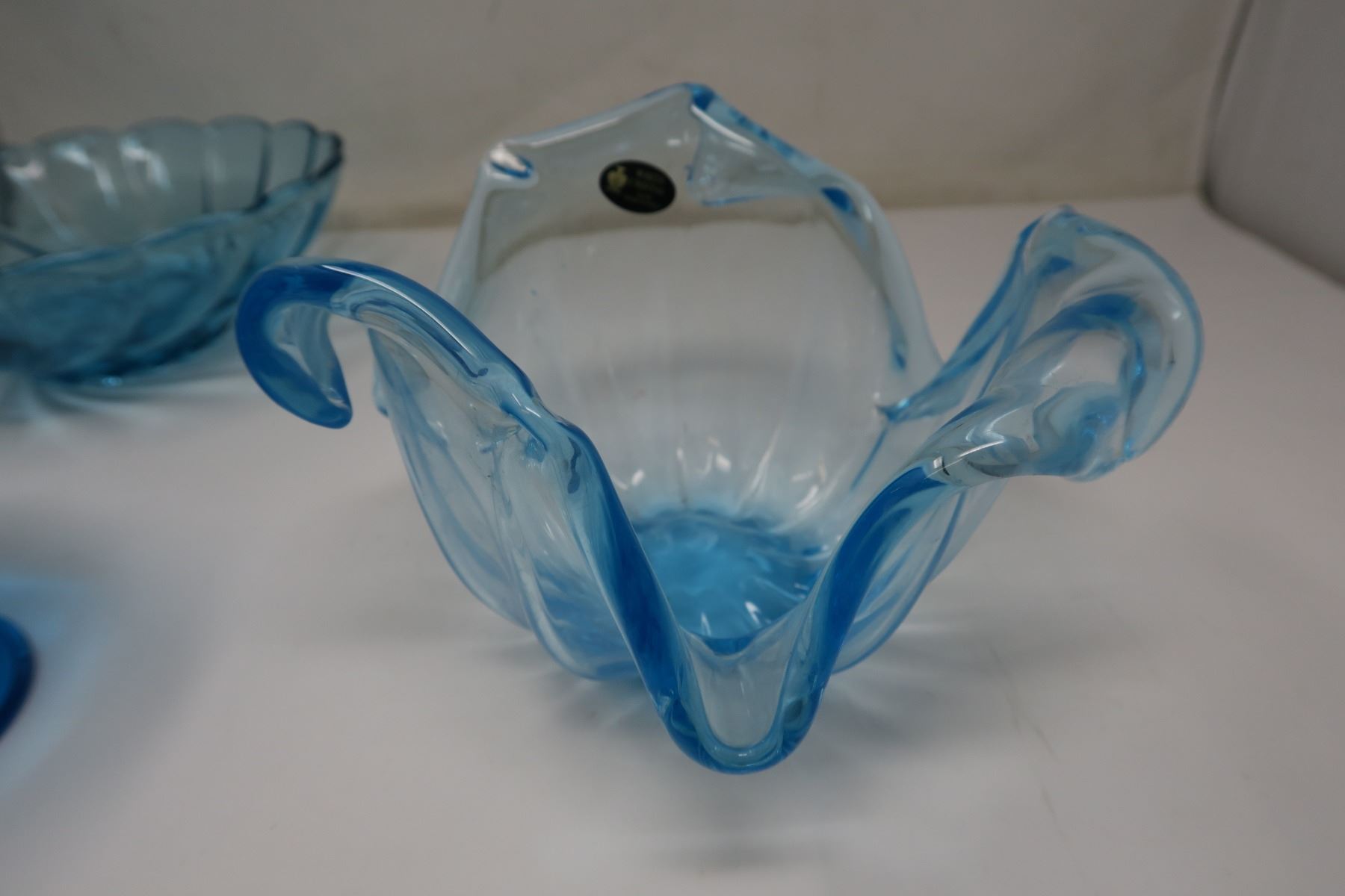 3 x Blue Glass Pieces, 1 Made in Italy, 1 Blu Capri Seashell Serving Dish