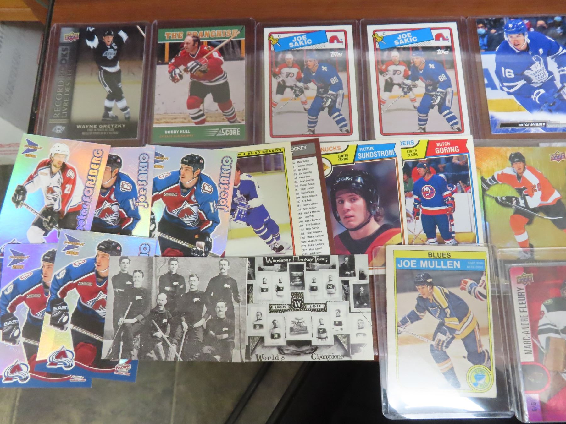 30 Hockey Card Lot, includes Gretzky, Bobby Hull, Joe Sakic, Marner, Matthews, Nugent-Hopkins, Marc