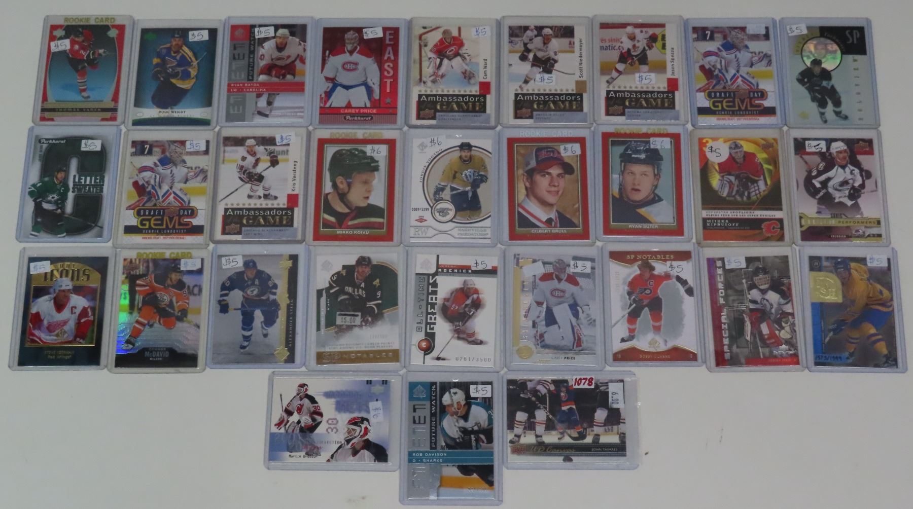 30 assorted UpperDeck hockey cards - in plastic holders