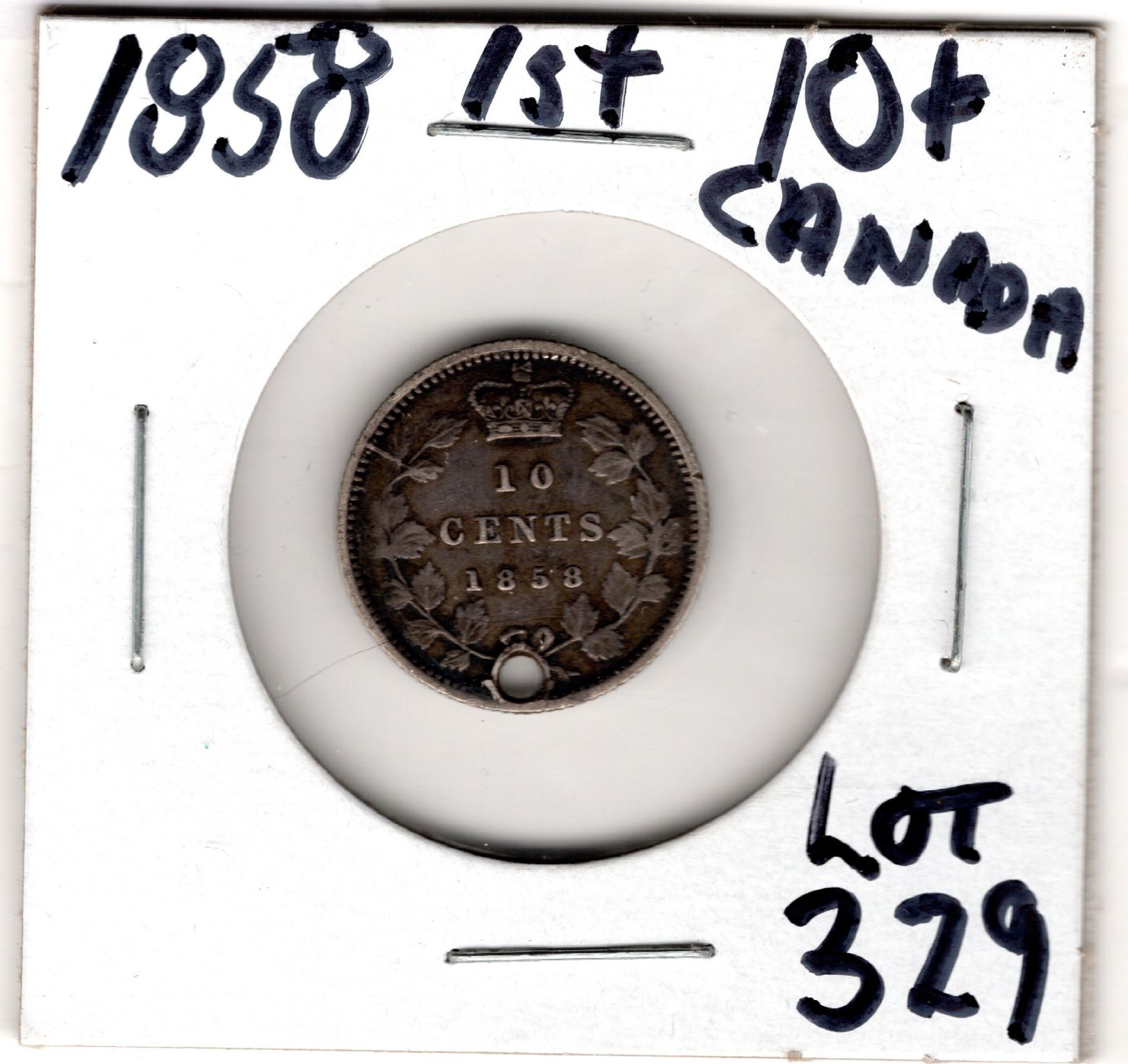 329 1858 10 CENTS WITH HOLE: CANADA”S 1ST TEN CENT PIECE