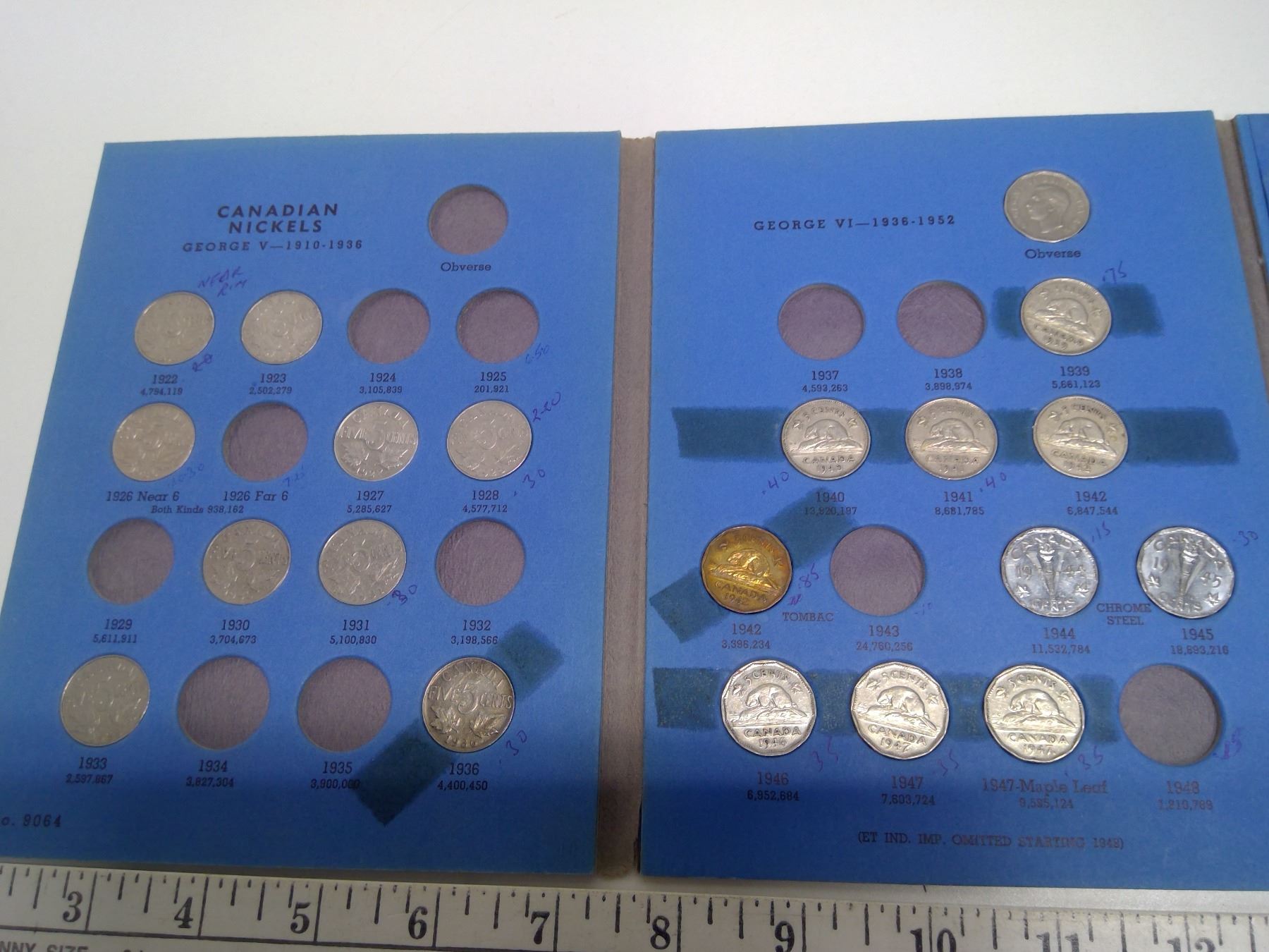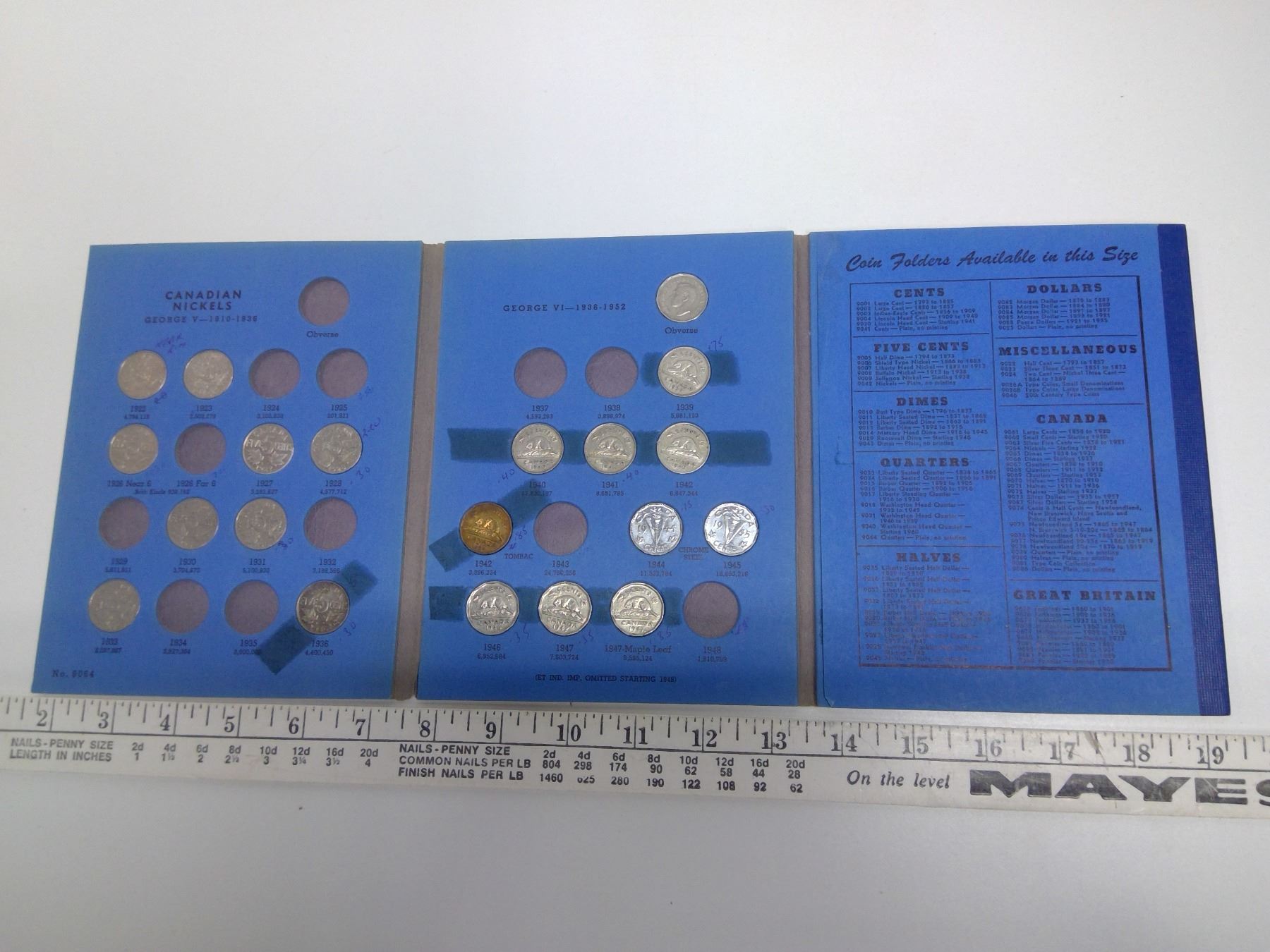 32x 5 Cent Coins Blue Whitman Holder - 1922-1960 (Some Missing)