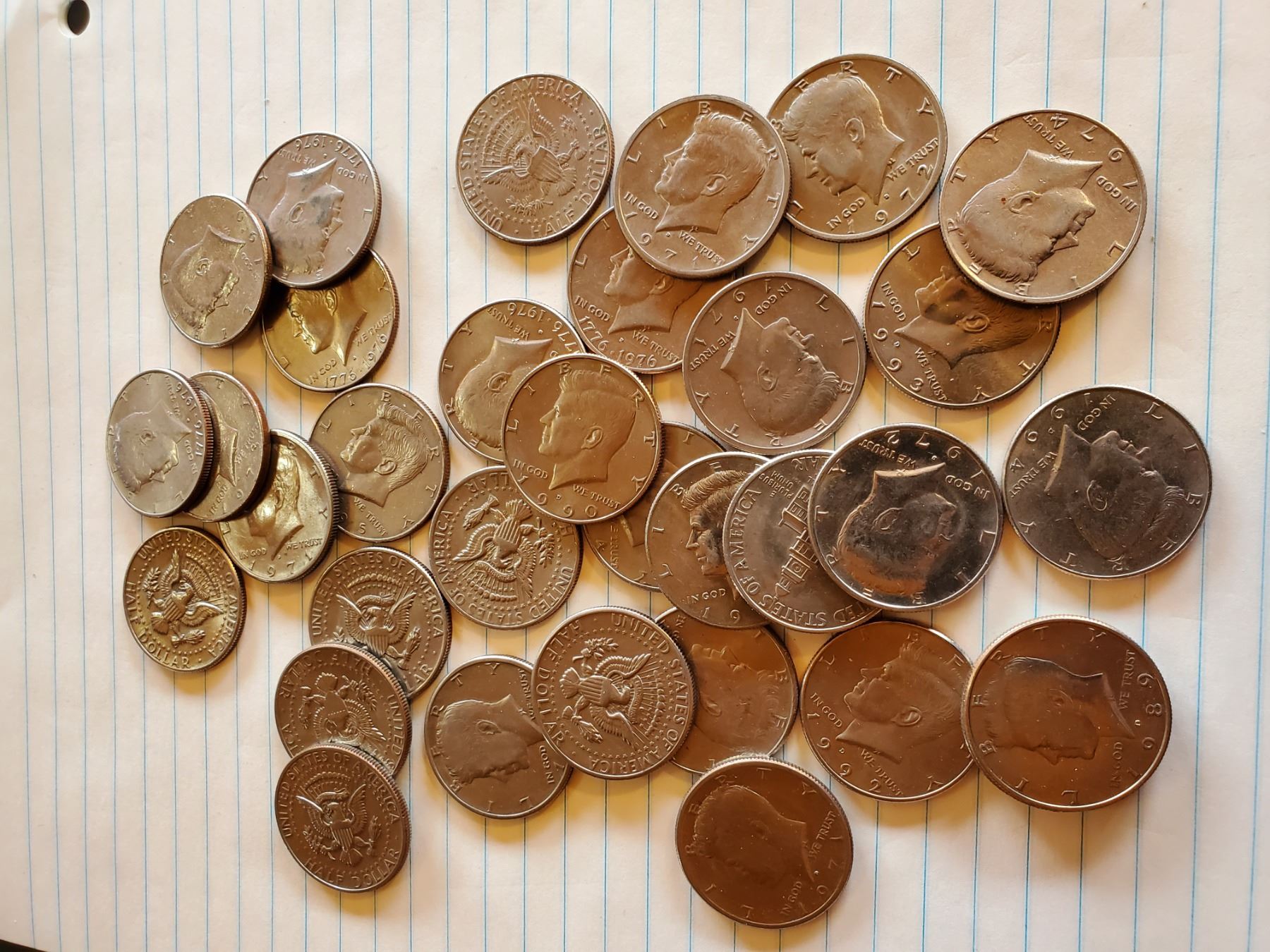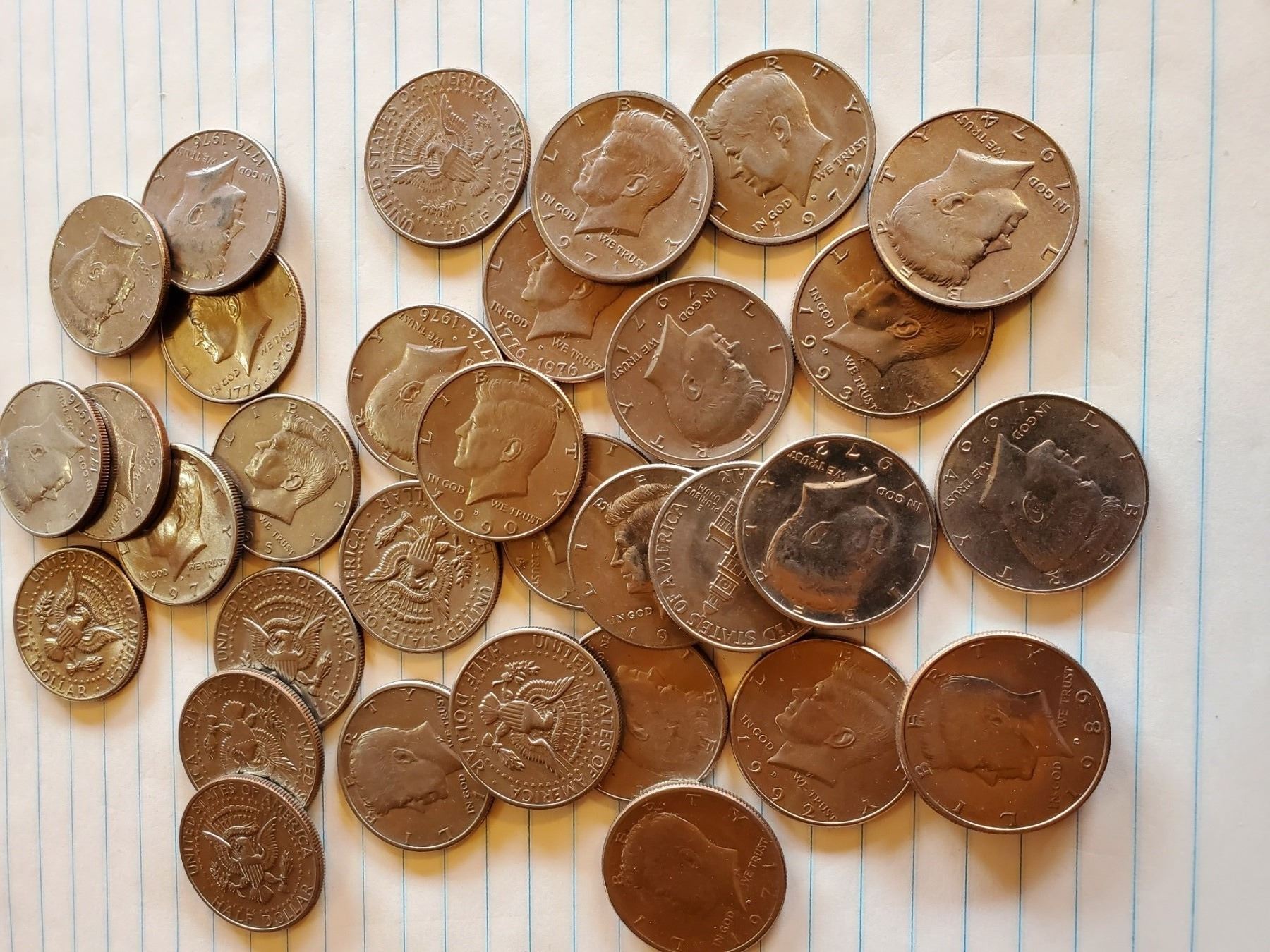 33 Kennedy Half Dollars 1971 to 1995 Random Years - 40% Silver