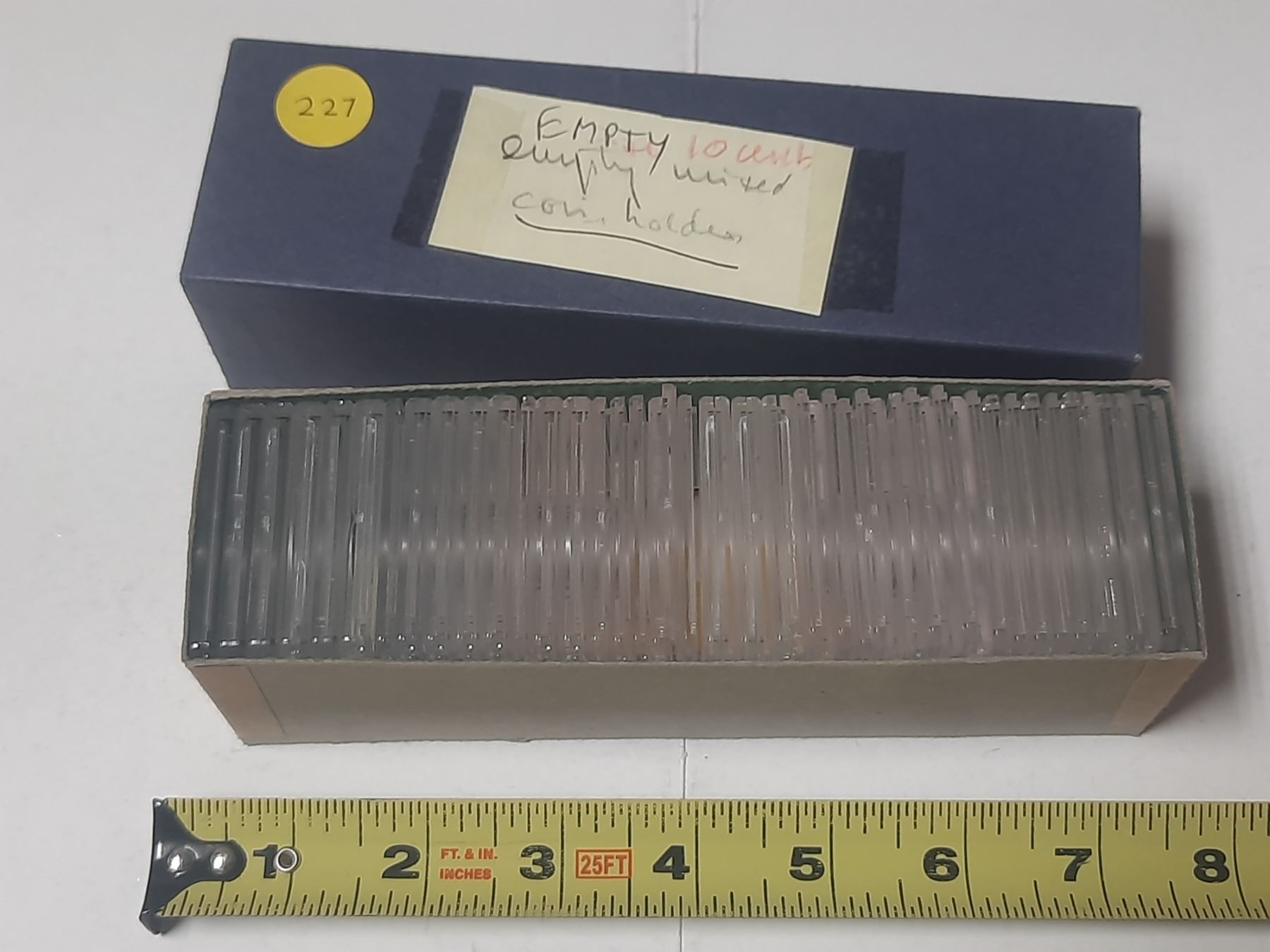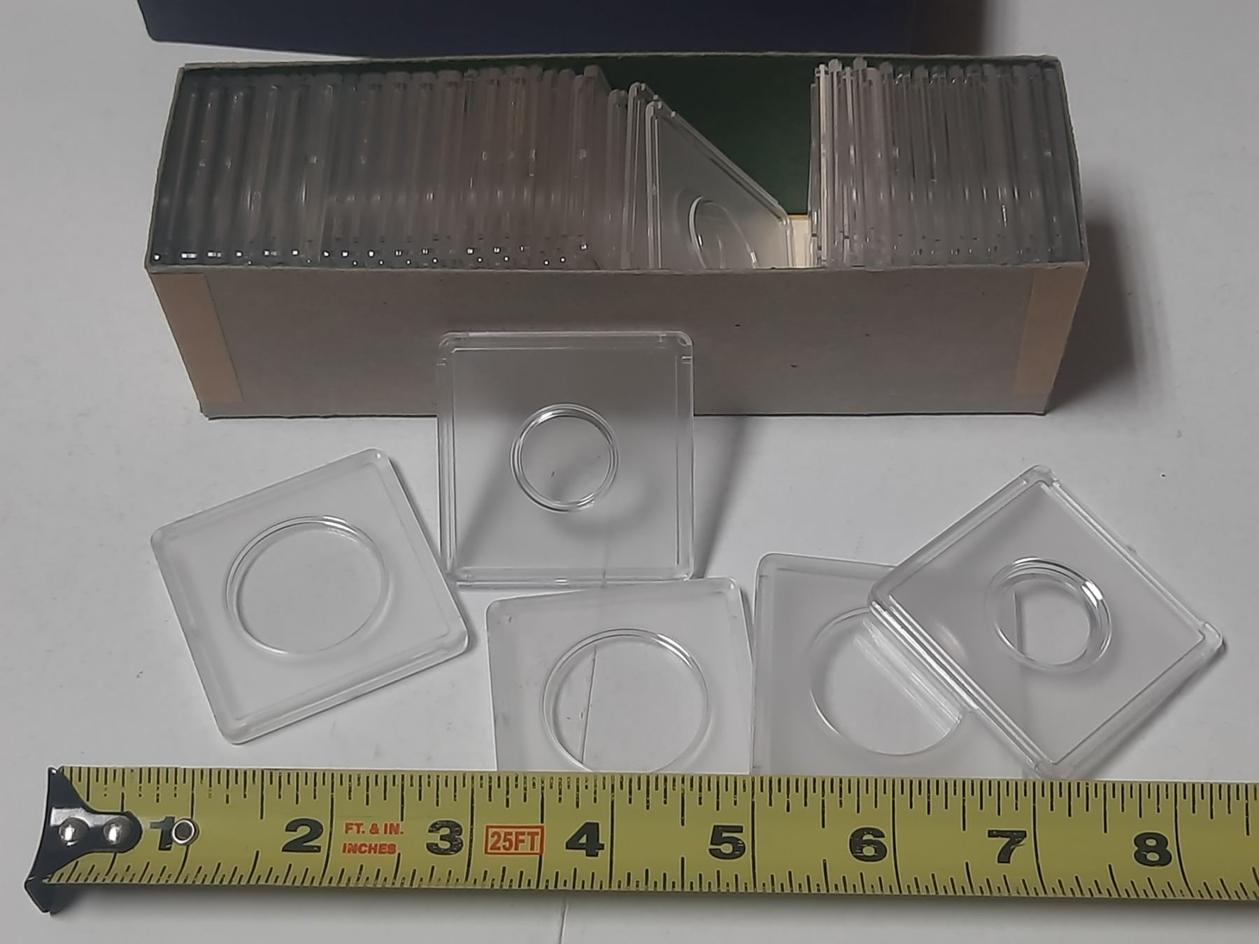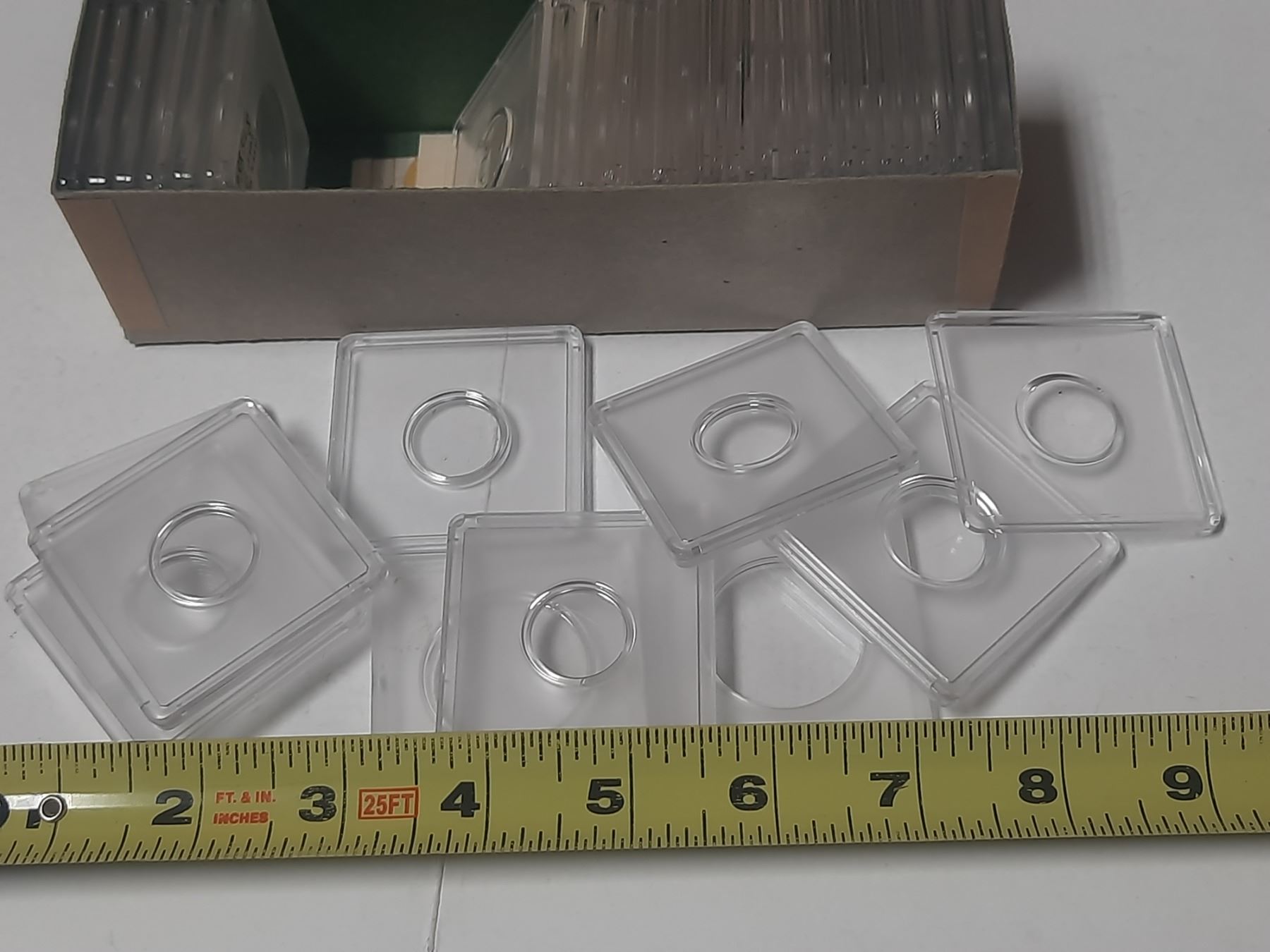 33 empty hard plastic holders for coins.