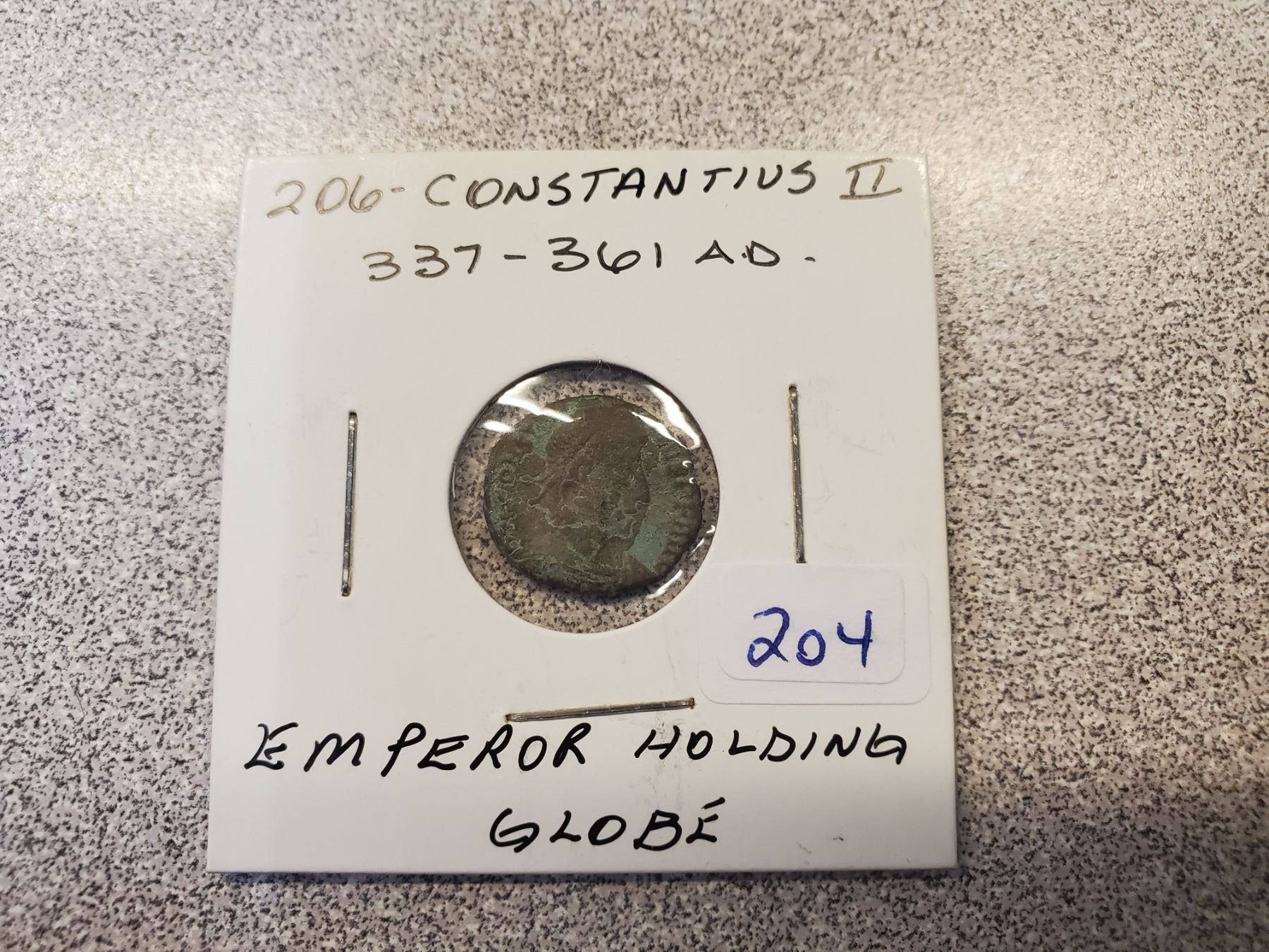 337-361 AD Costaninius II ancient coin (emperor holding globe)