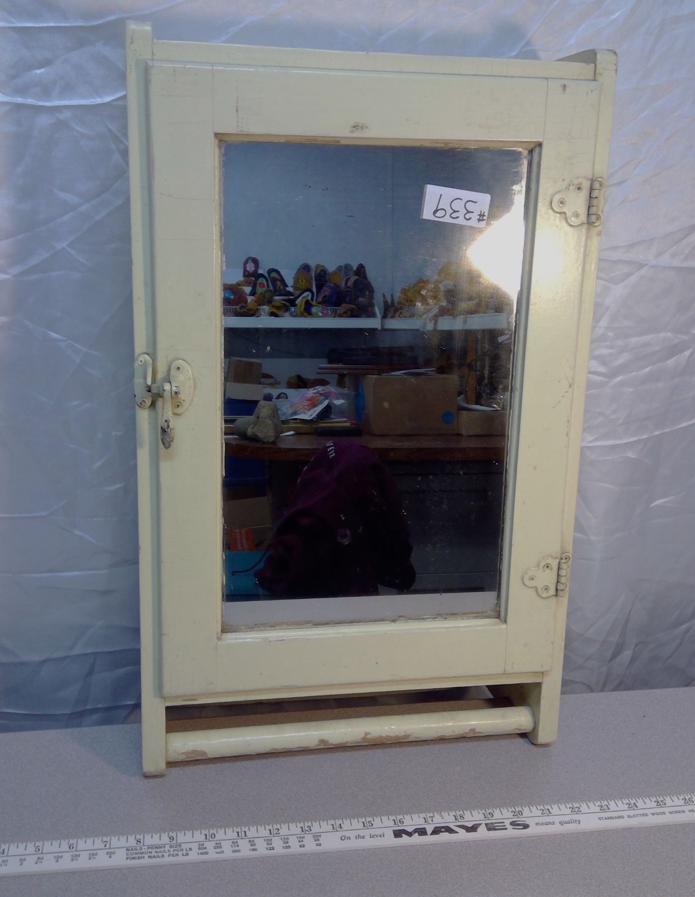 339. Wood medicine cabinet with towel rack