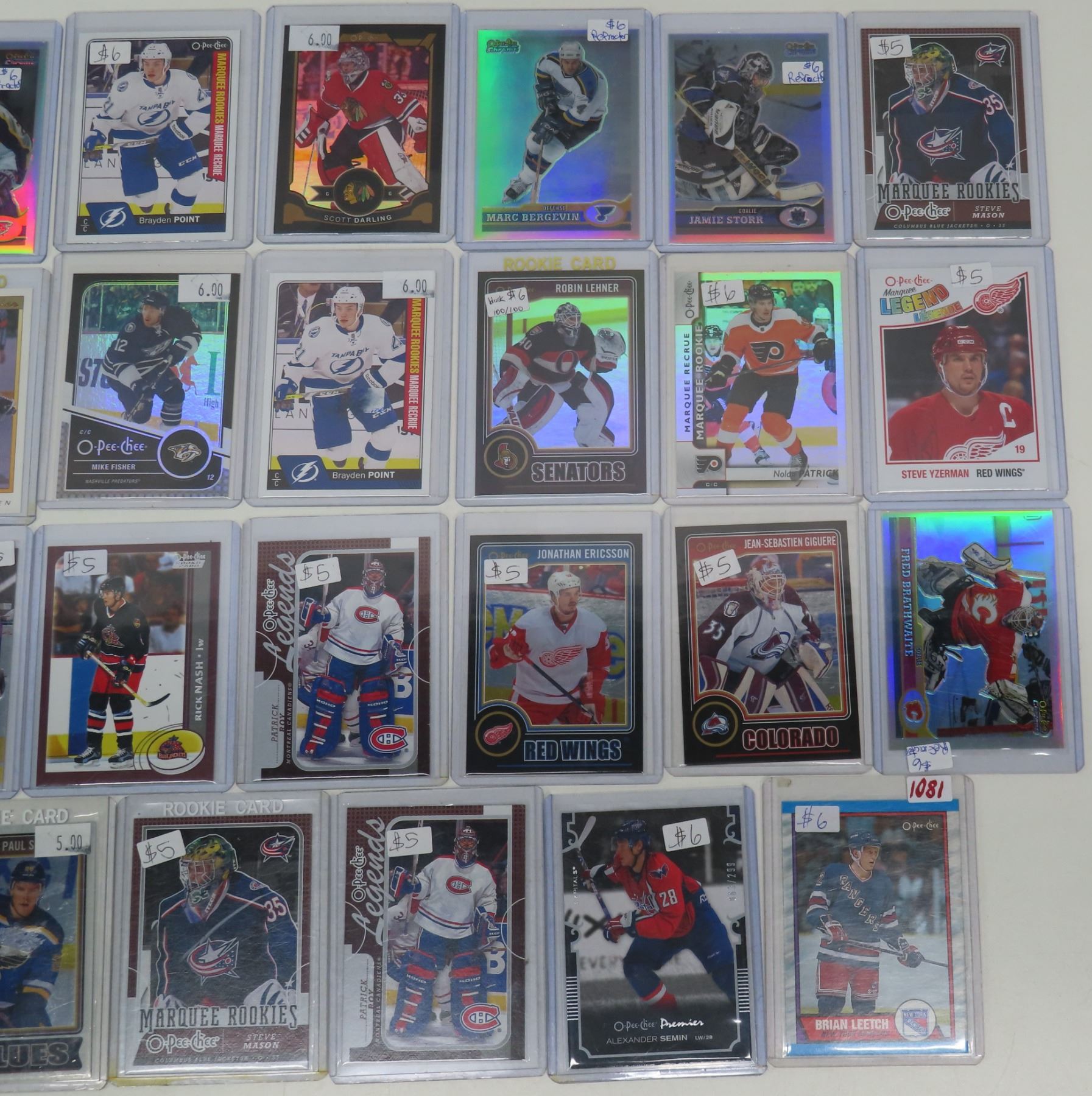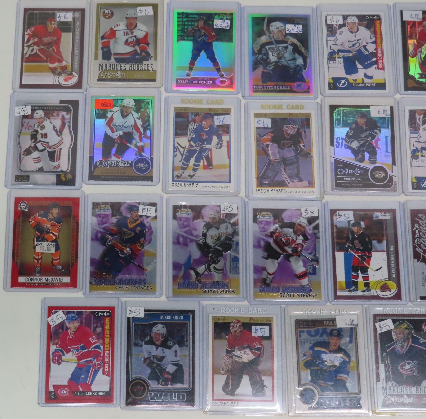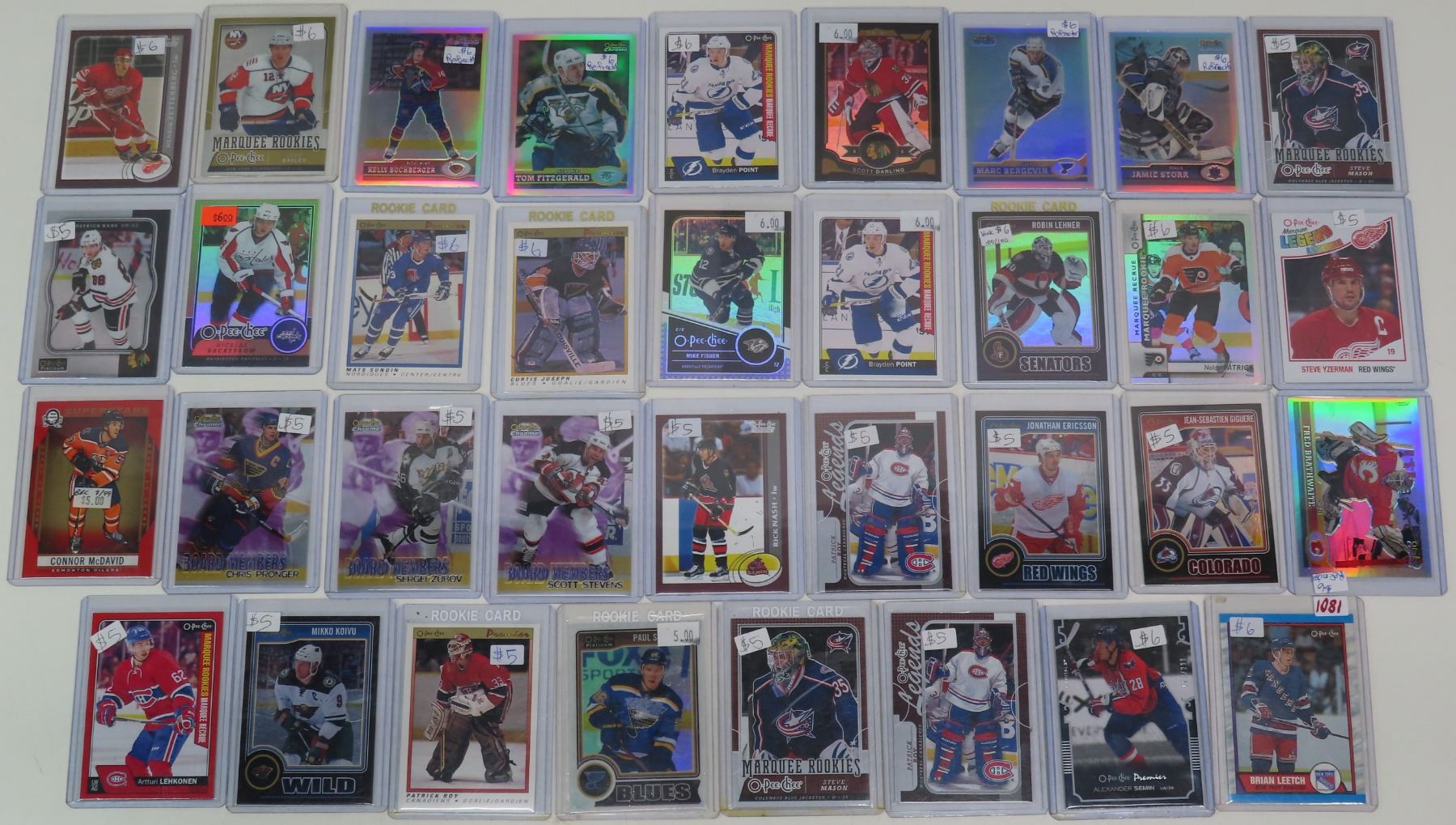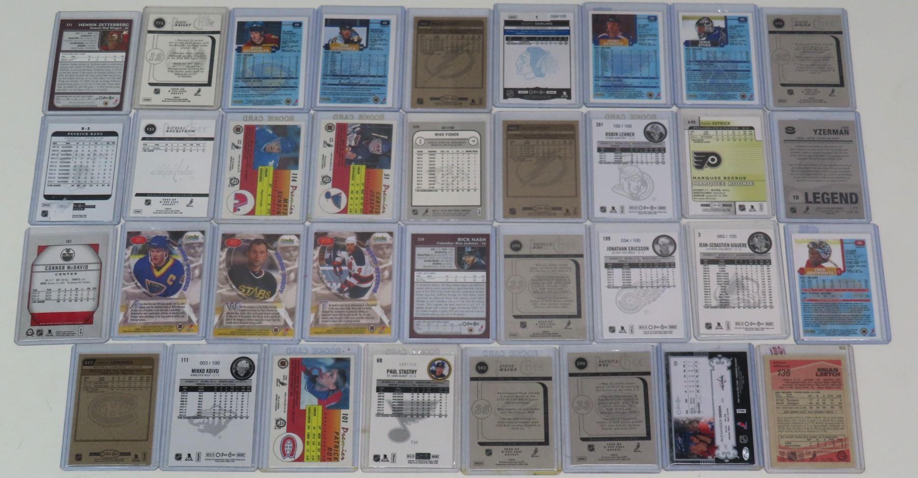 35 assorted O-Pee-Chee hockey cards - in plastic holders (Includes 3 Board Members cards, 1 1987-89 card, & 3 1989-1990 cards)