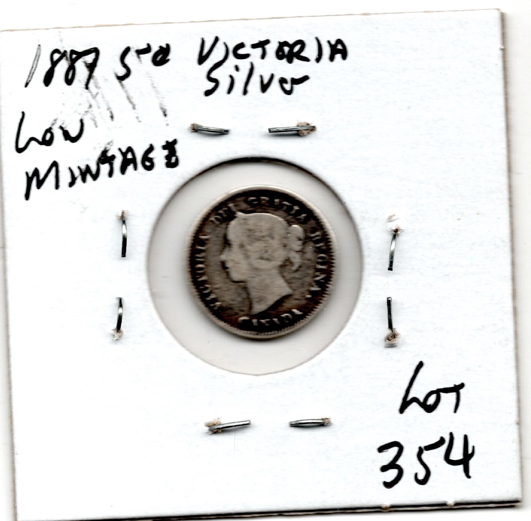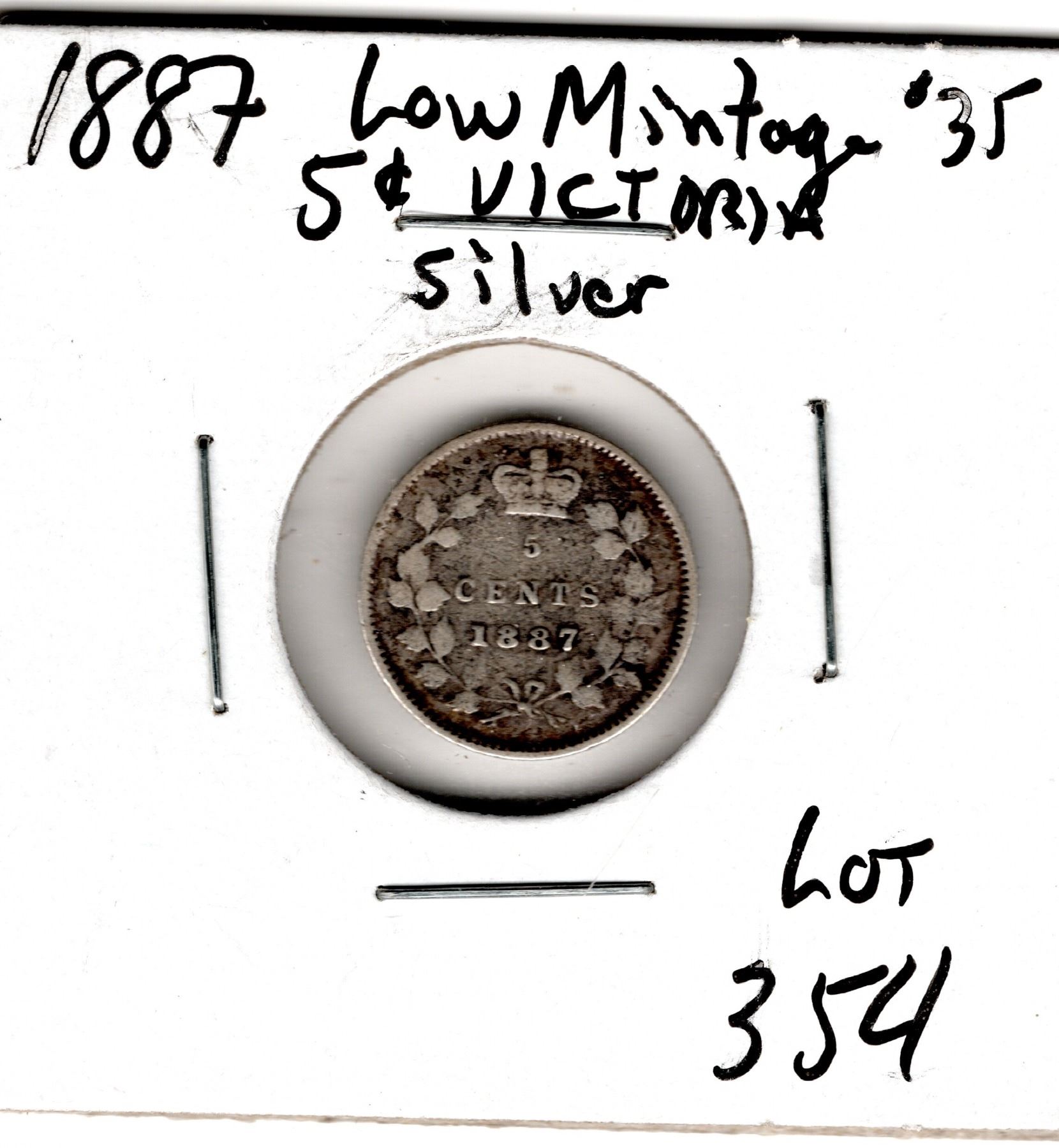 354. SCARCE LOW MINTAGE 1887 FIVE CENT SILVER VICTORIA