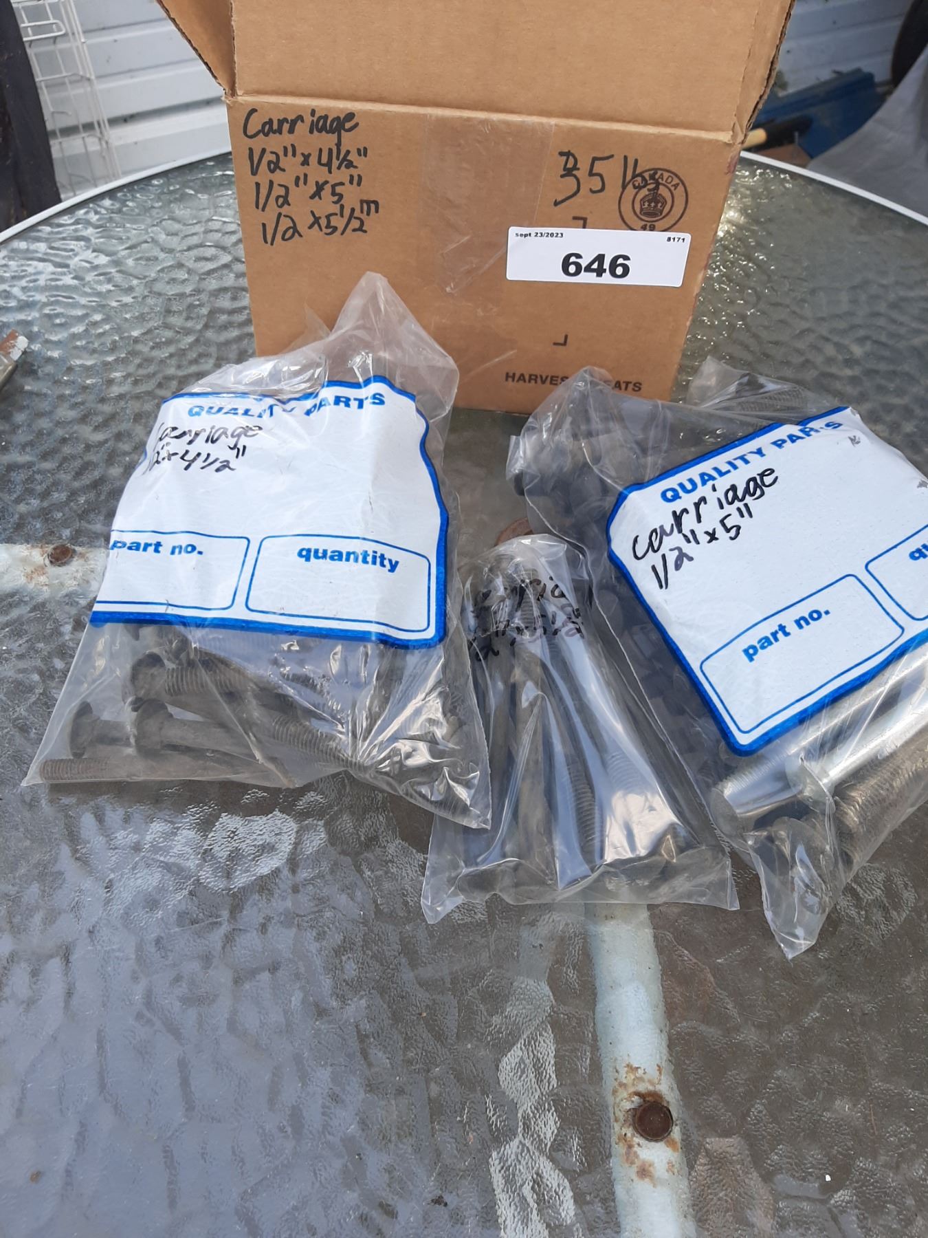 35lb box of carriage bolts 1/2" x 4 1/2" 5" 5 1/2"
